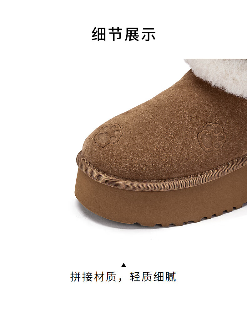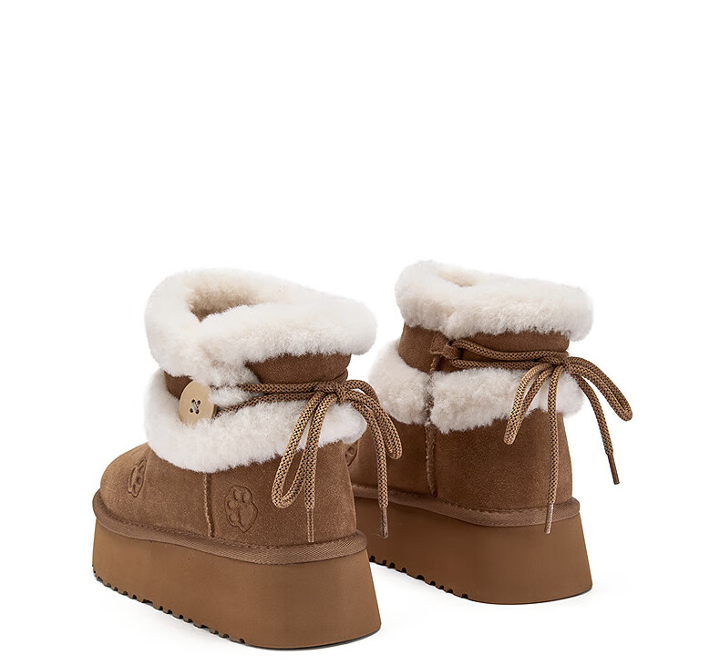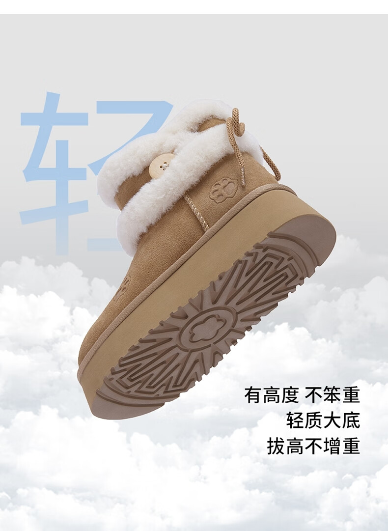 百丽(Belle)小领巾高帮勃肯鞋女新款棉鞋雪地短靴子D3G1DAD5 棕色-绒里 38 (240mm)
