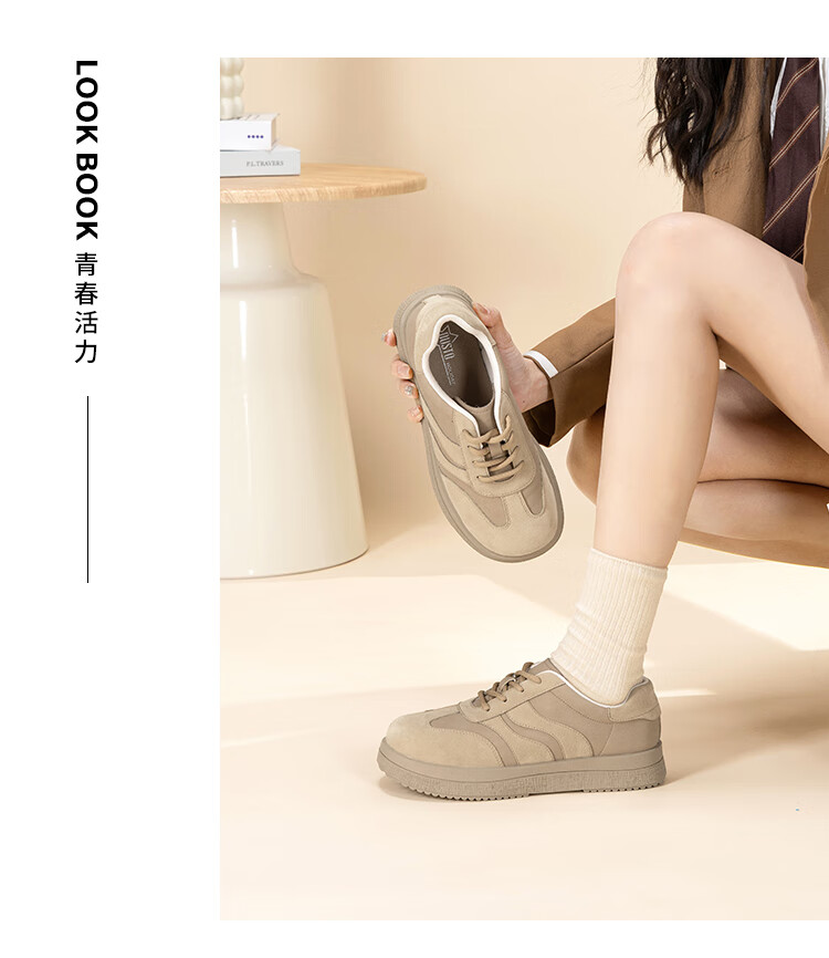 达芙妮(DAPHNE)厚底小白鞋女2022春季新款女鞋小香风松糕底饼干鞋休闲板鞋JL 米色【温柔米白】 37