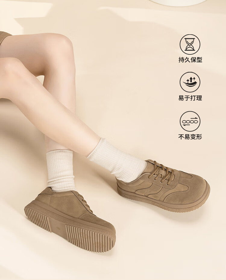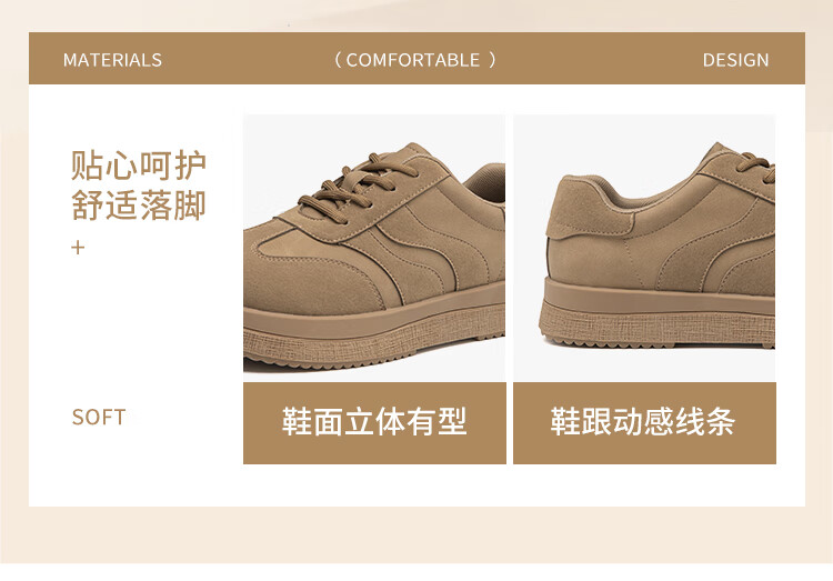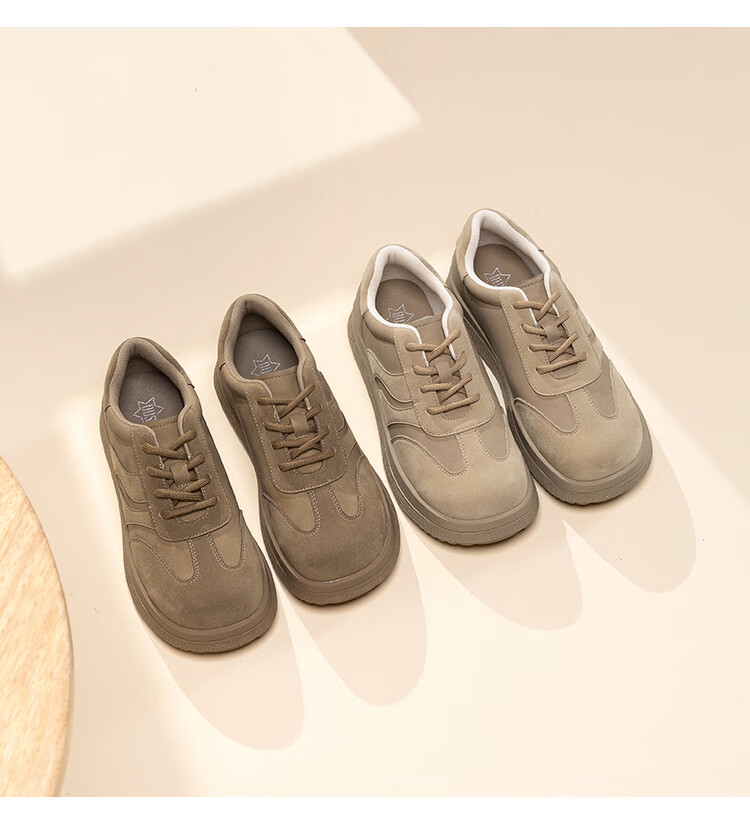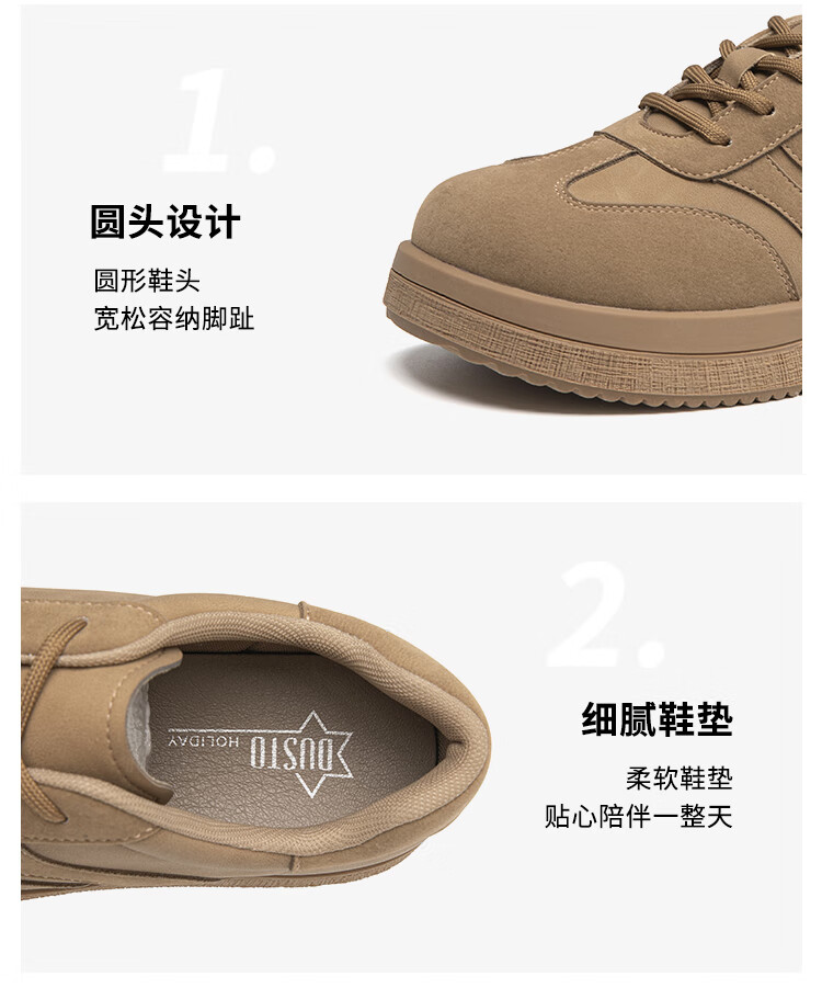 大东(dusto)阿甘鞋2025秋季新款复古休闲鞋外穿舒适厚底增高防滑女鞋0625 卡其色 35