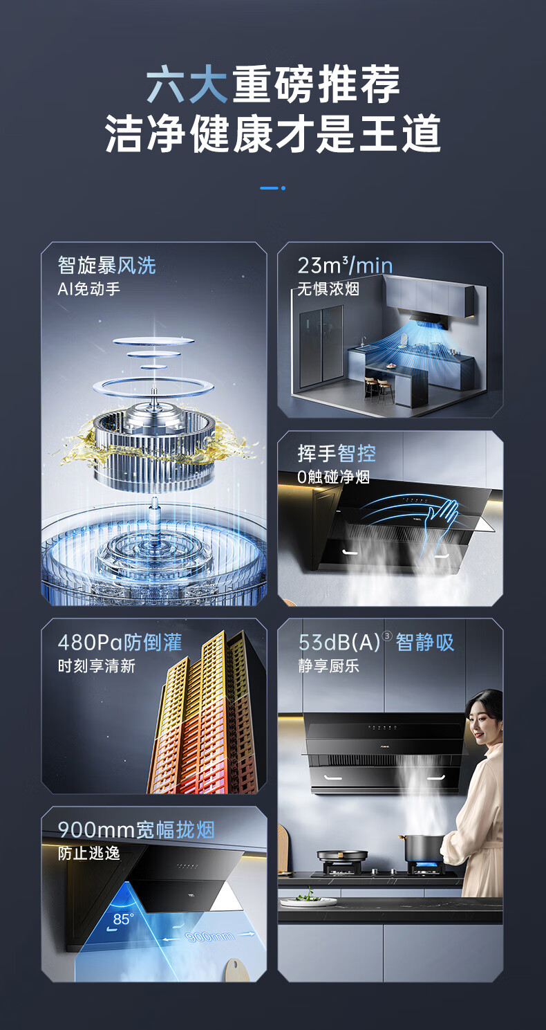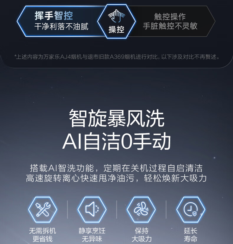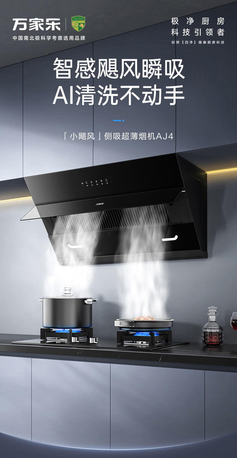 万家乐【小飓风AJ4】 侧吸式挥手智控自清洗抽油烟机 23立方爆炒大吸力家用吸油烟机免拆洗可搭配燃气灶