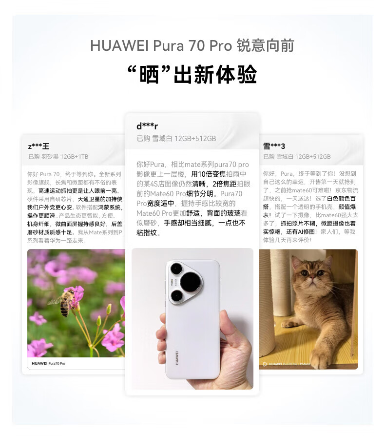 HUAWEI Pura 70 Pro 华为手机p70pro超高速风驰闪拍 超聚光微距长焦 北斗卫星图片消息 华为鸿蒙智能手机 羽砂黑 12GB+512GB