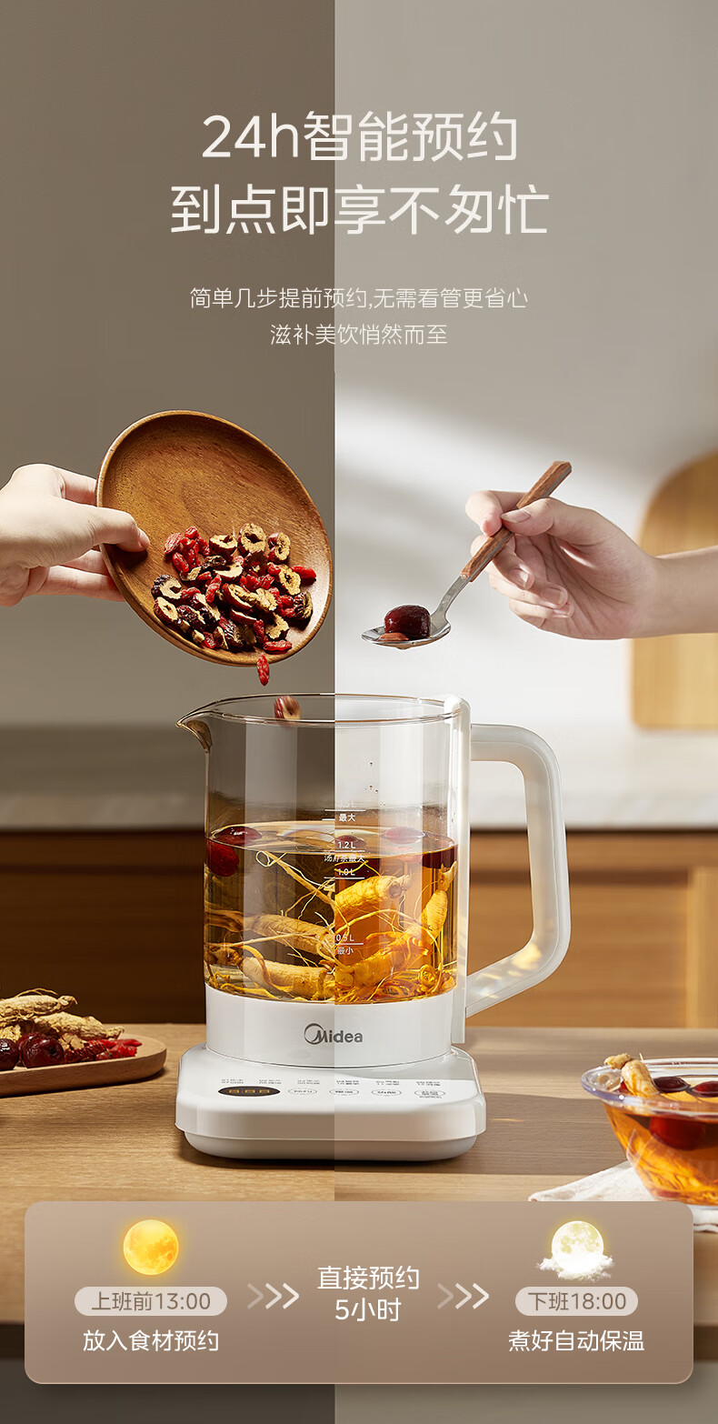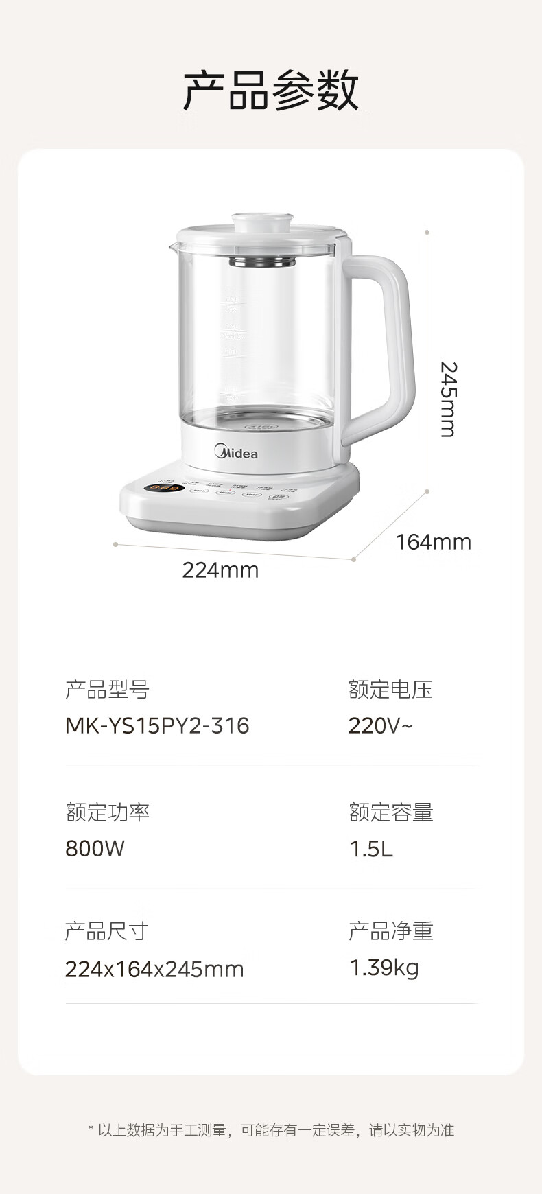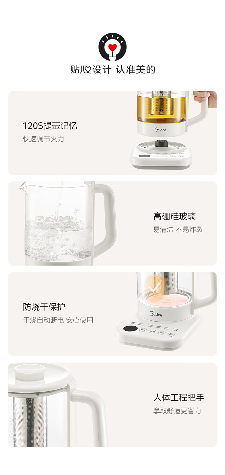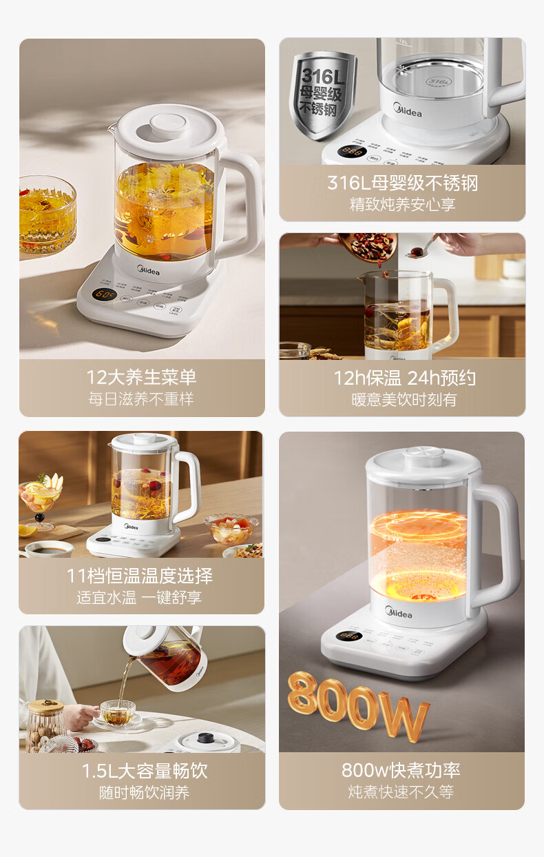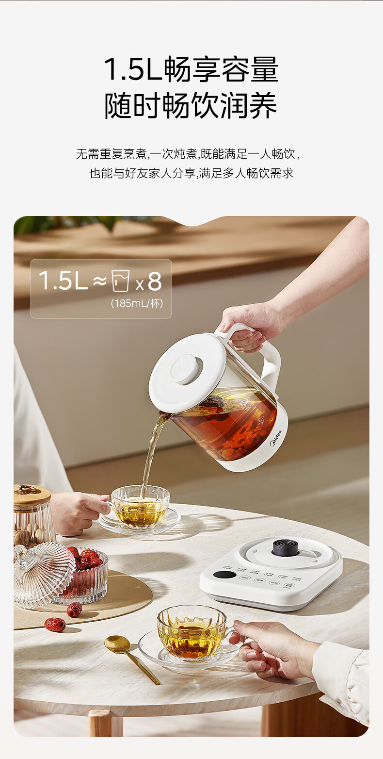 美的(Midea)养生壶 1.5L全自动大口径煮茶壶 24小时预约电热水壶预约保温烧水壶花茶壶多档恒温煮茶器 【316L材质】YS15P-Y2 1.5L