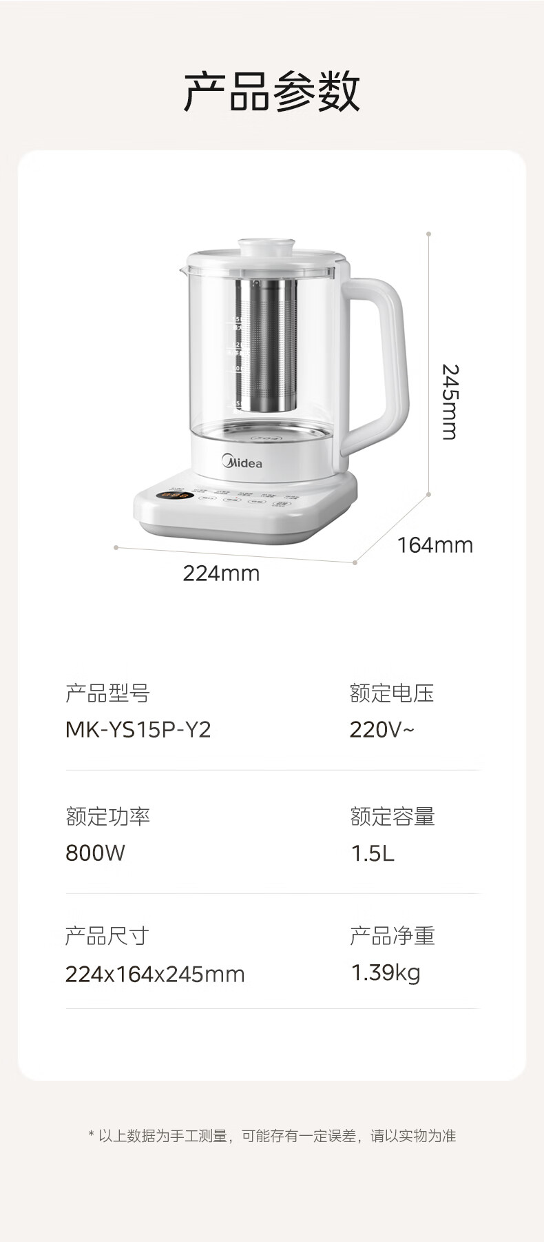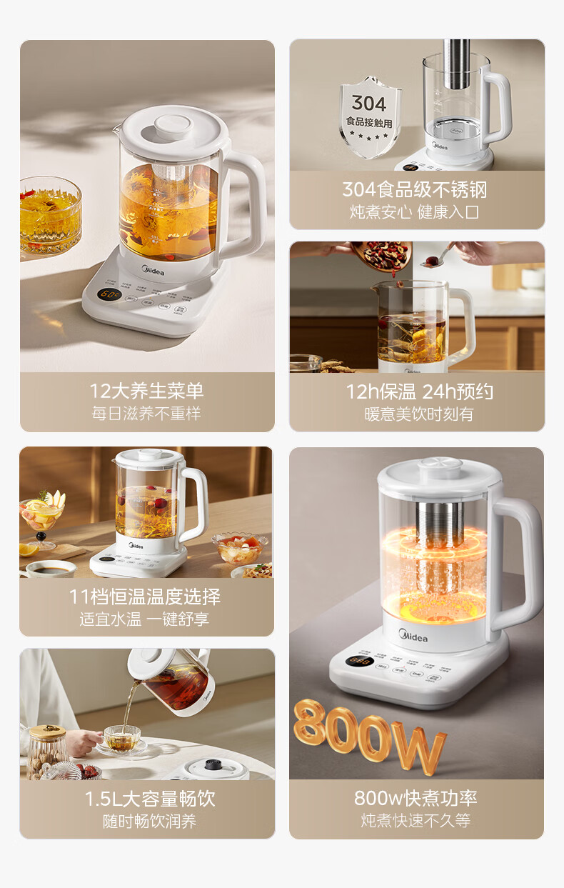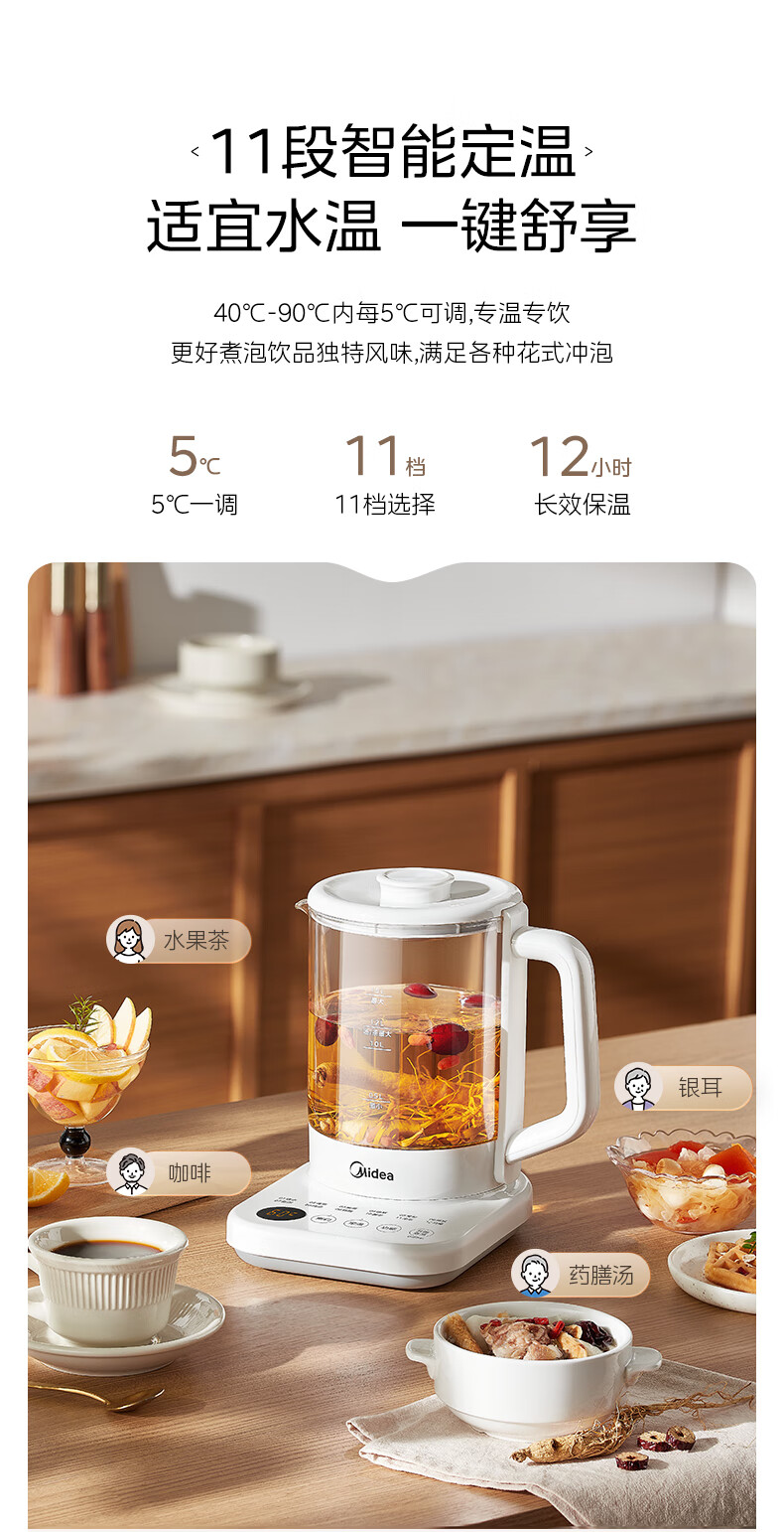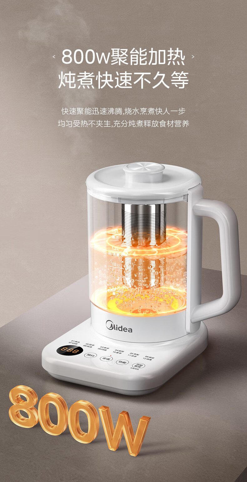 美的(Midea)养生壶 1.5L全自动大口径煮茶壶 24小时预约电热水壶预约保温烧水壶花茶壶多档恒温煮茶器 【316L材质】YS15P-Y2 1.5L