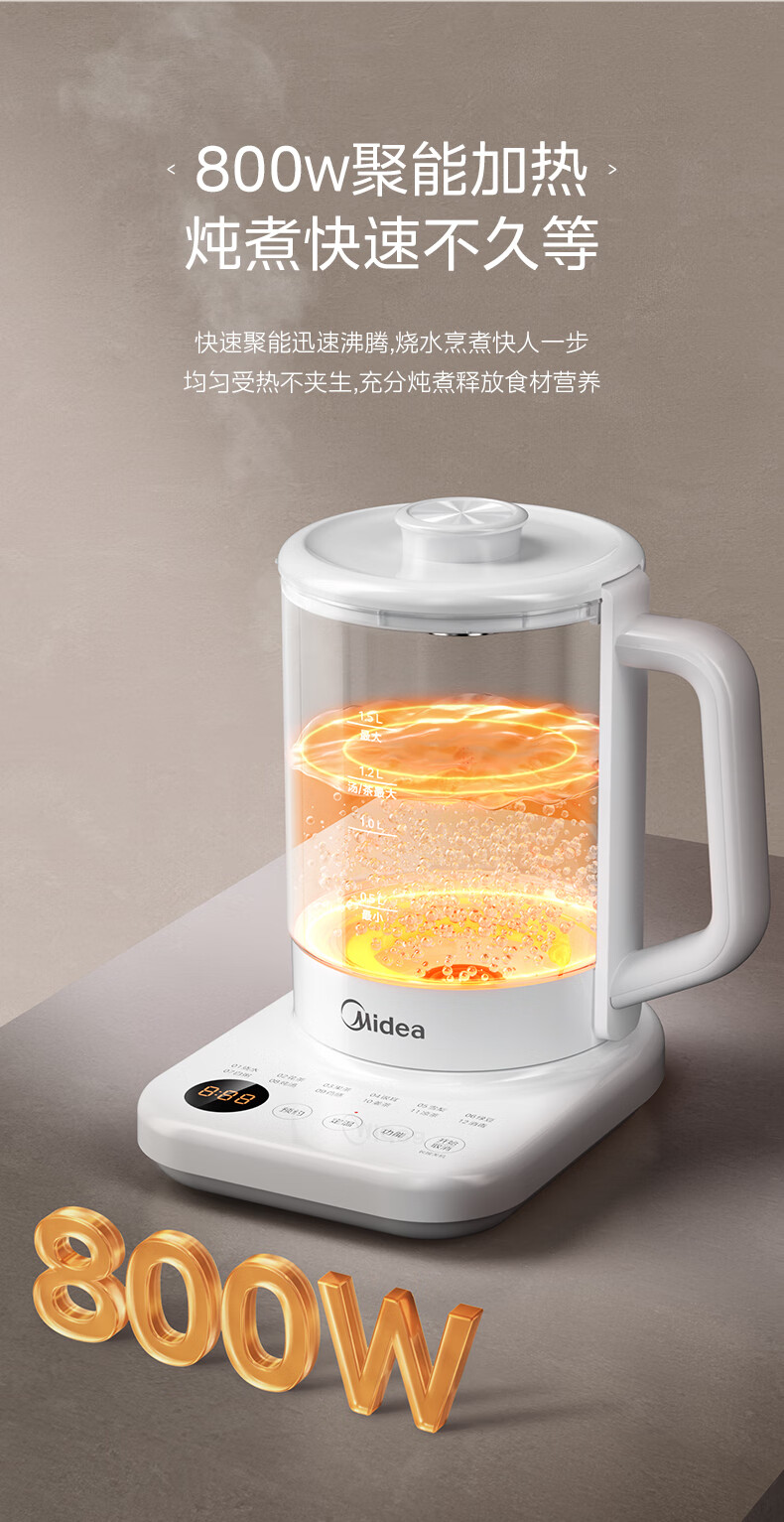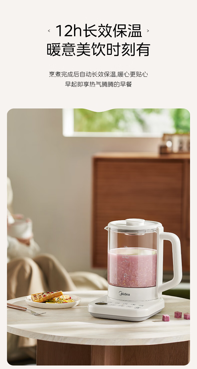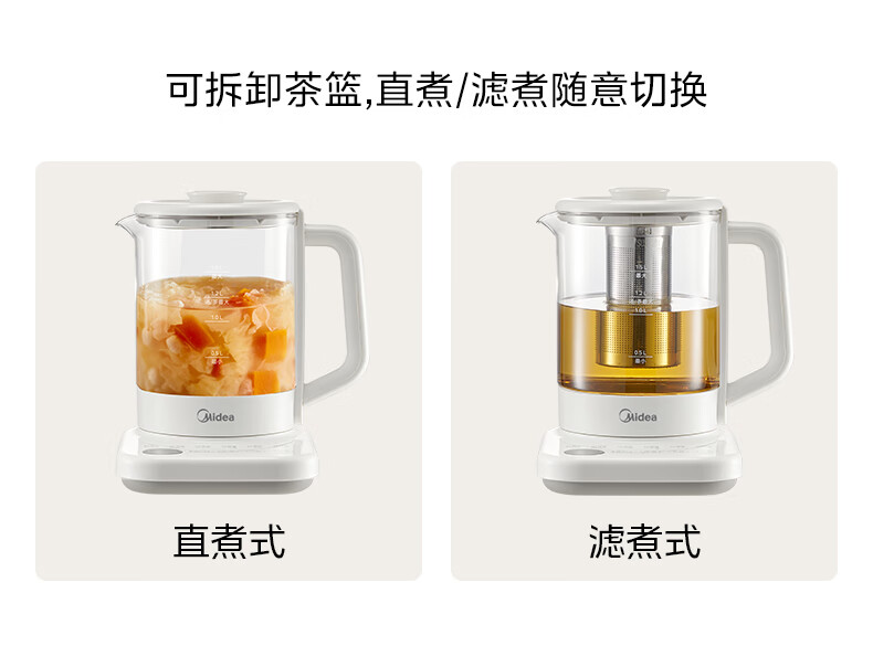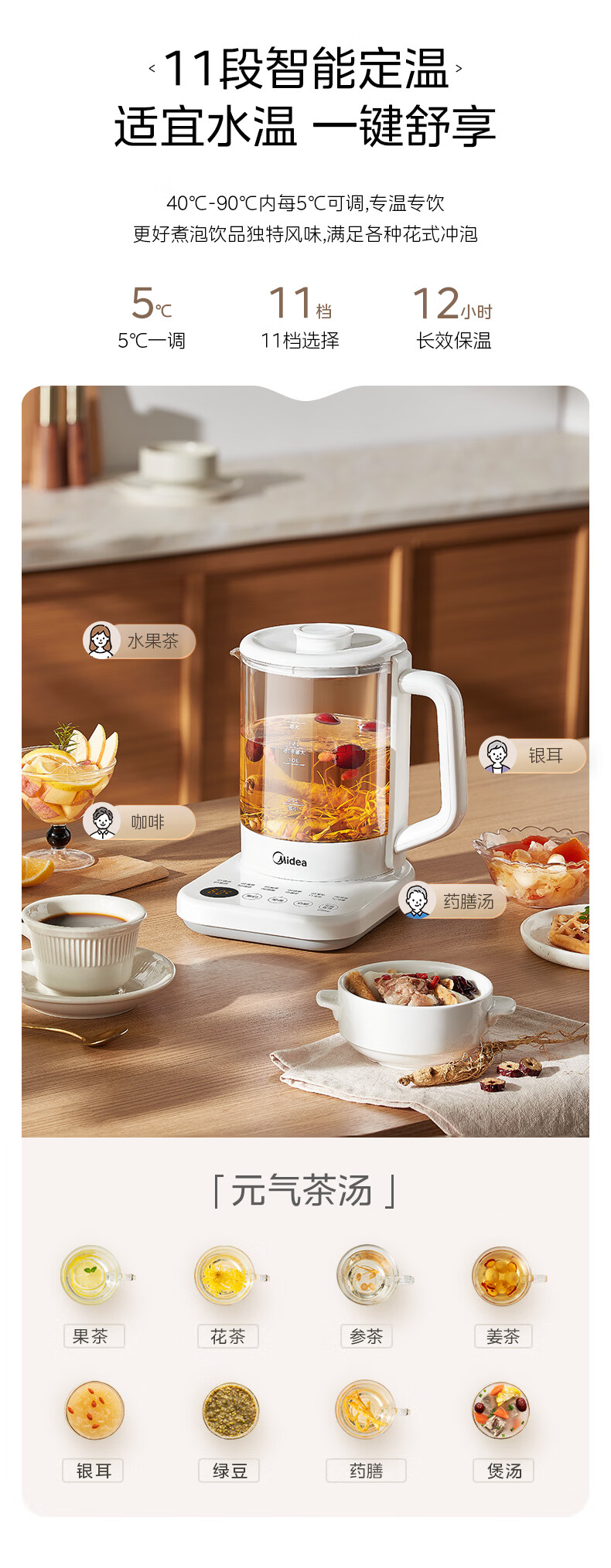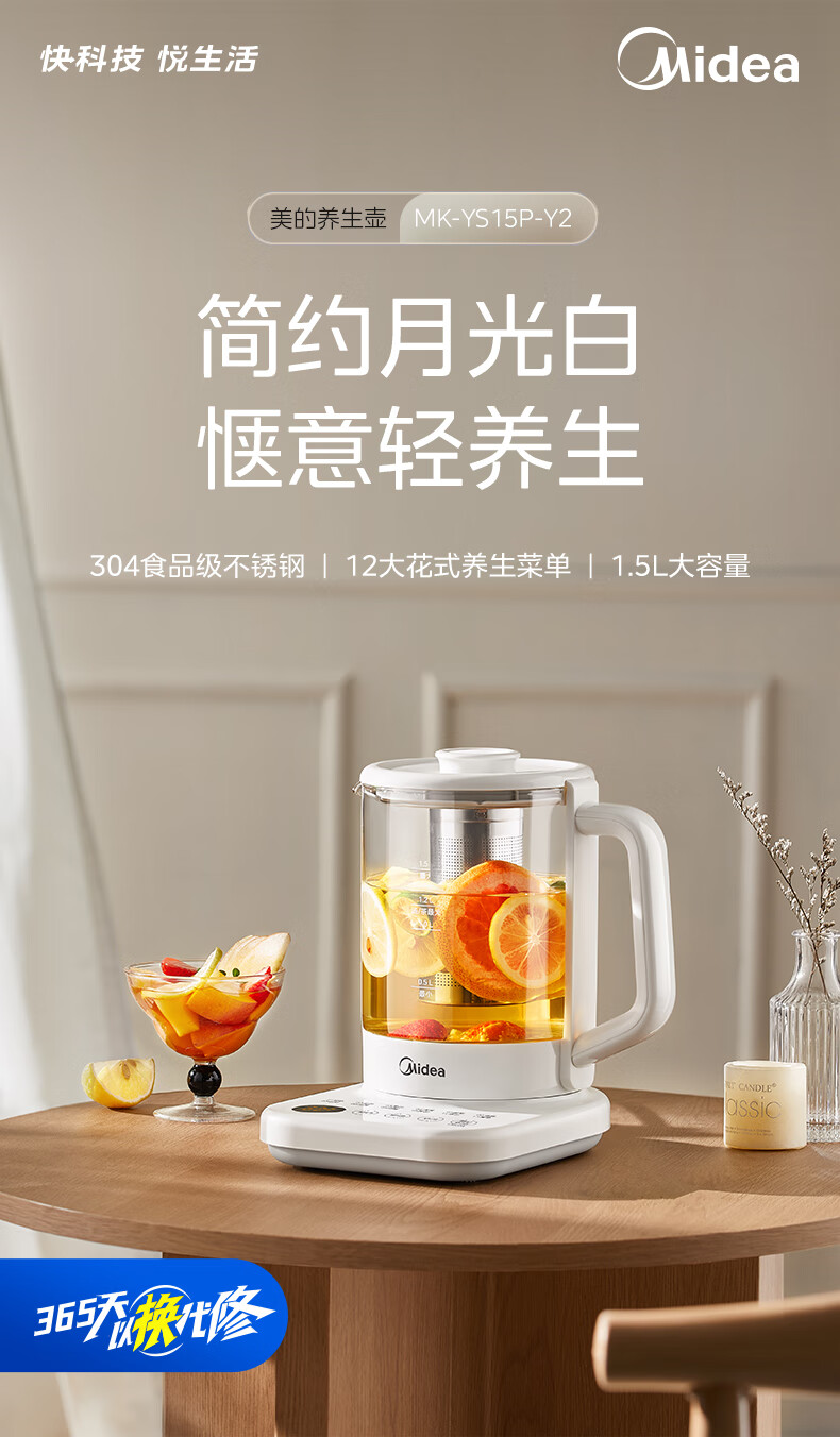 美的(Midea)养生壶 1.5L全自动大口径煮茶壶 24小时预约电热水壶预约保温烧水壶花茶壶多档恒温煮茶器 【316L材质】YS15P-Y2 1.5L
