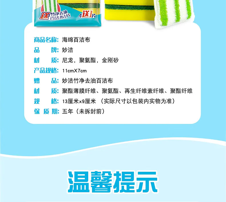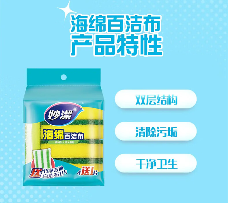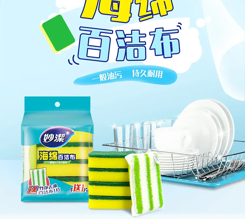 妙洁海绵百洁布 5片装 超值装 厨房家用抹布神器 洗碗清洁