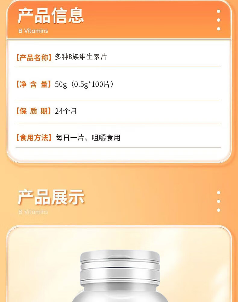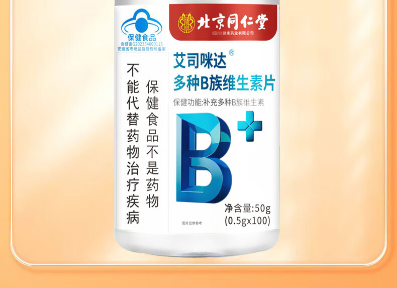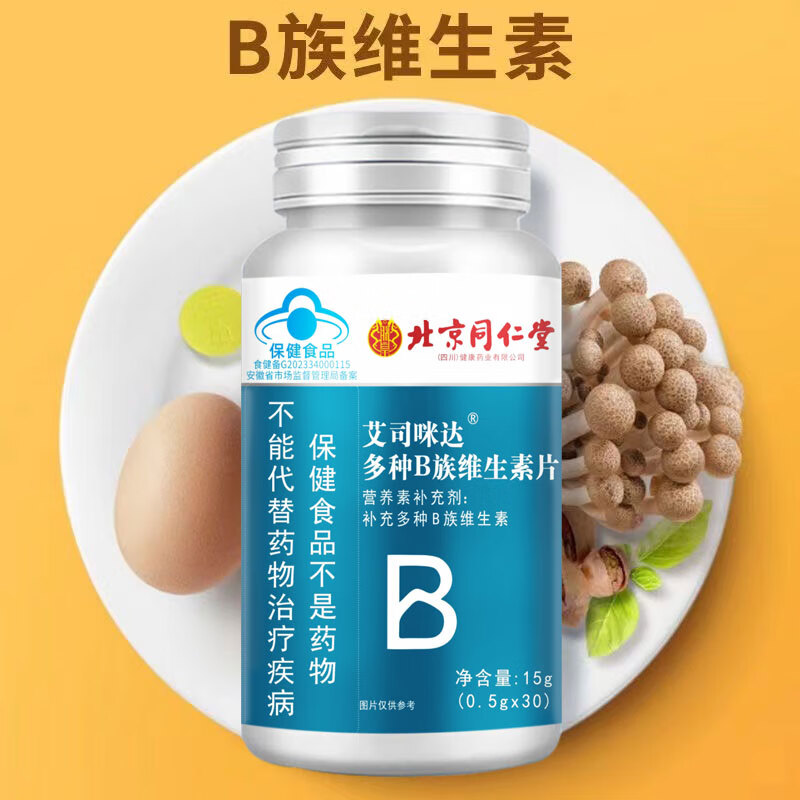 朕皇北京同仁堂多种B族维生素片 蓝帽认证 100片补充B族维生素 多种B族维生素片*3瓶