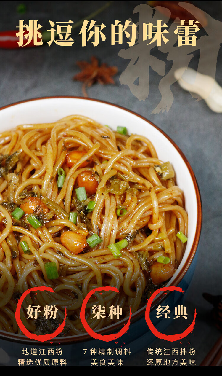 南昌拌粉内含7种调料包早餐方便速食夜宵拌面江西特产米粉丝米线 185g*2袋(内含7种配料)