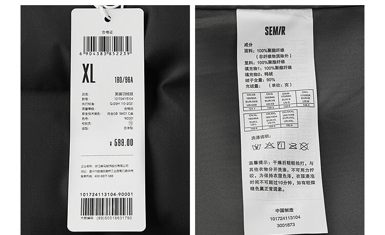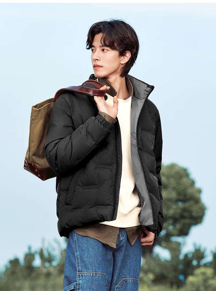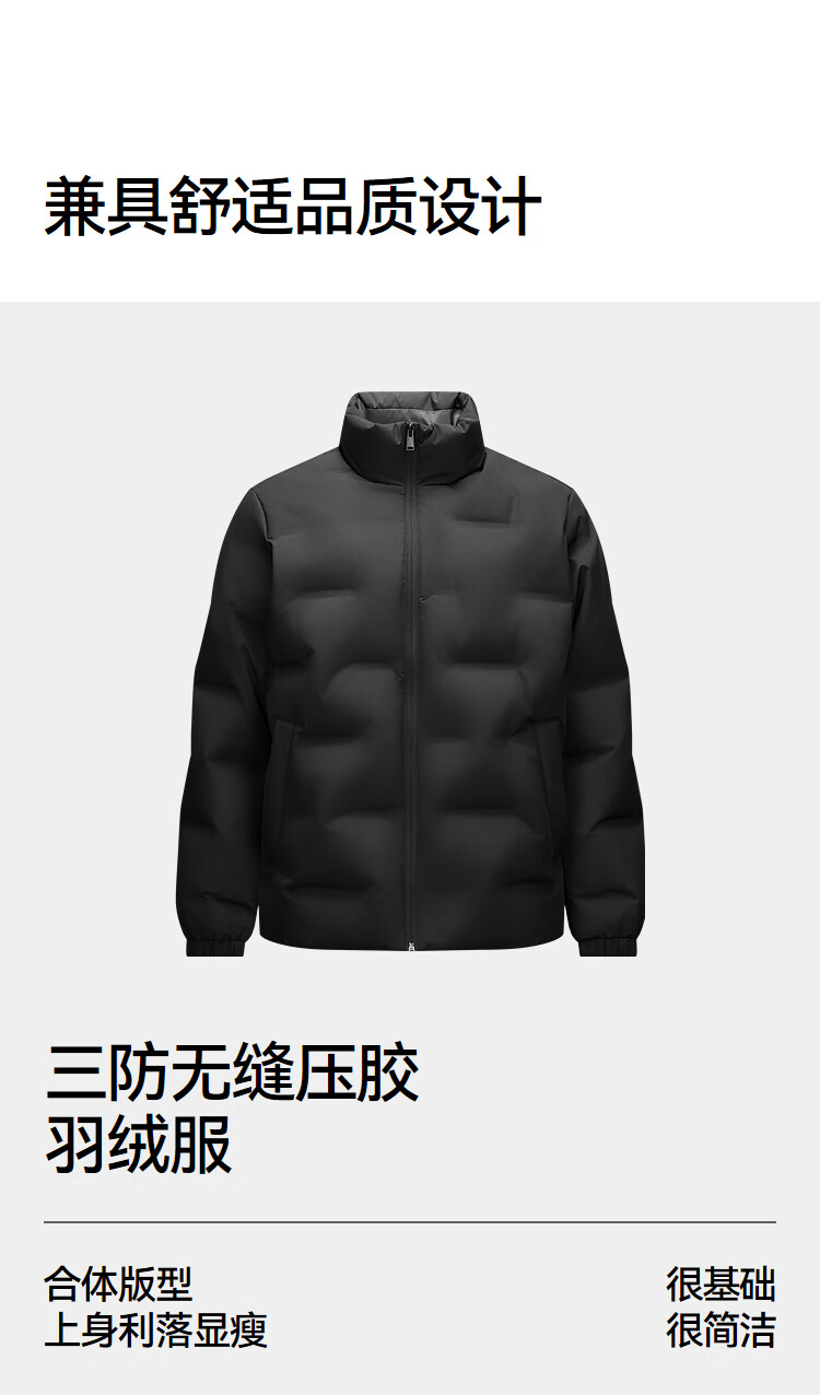 森马(Semir)羽绒服男无缝压胶三防外套冬季保暖立领上衣纯色简约101724113104