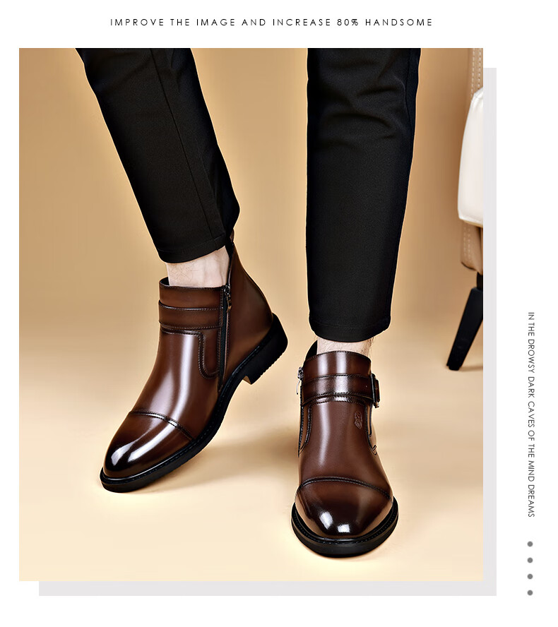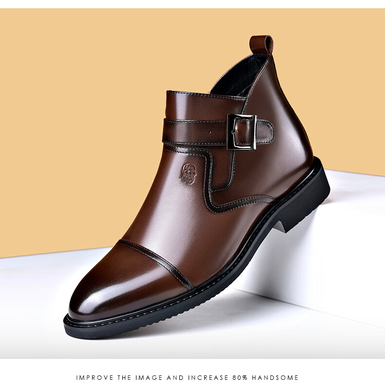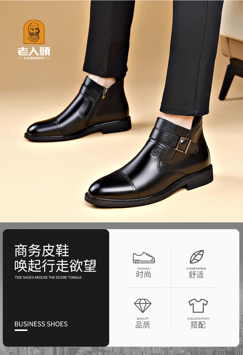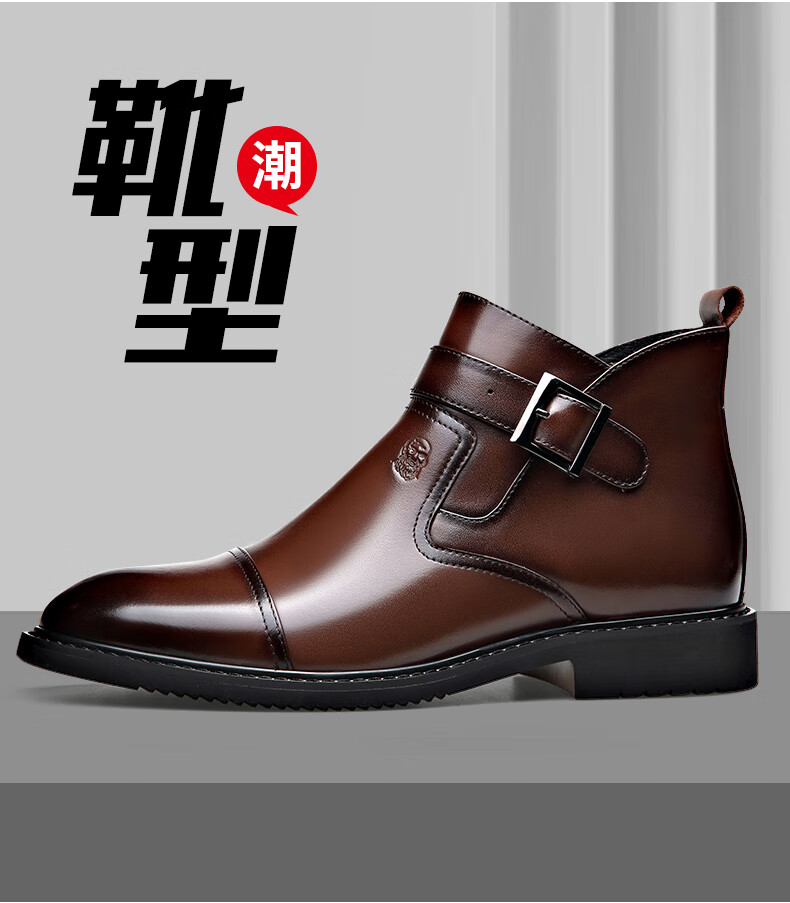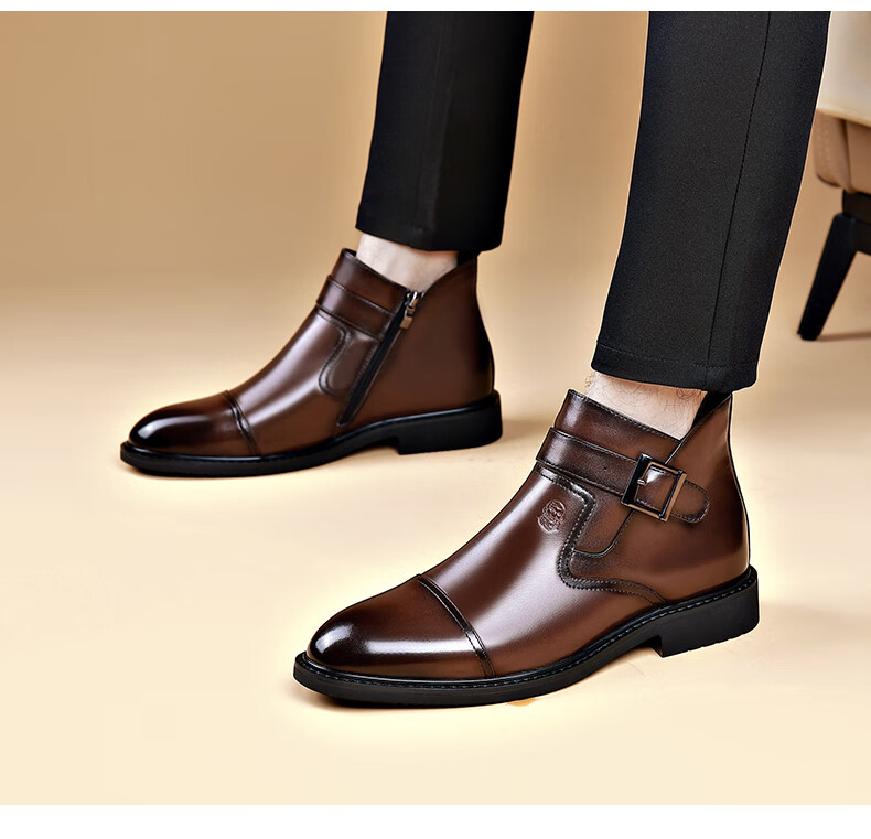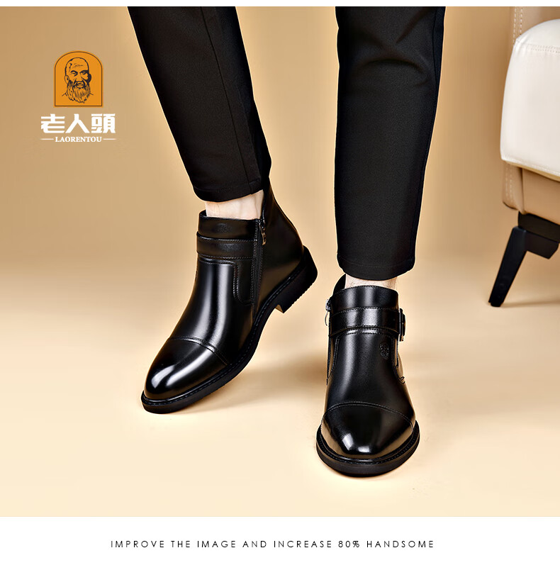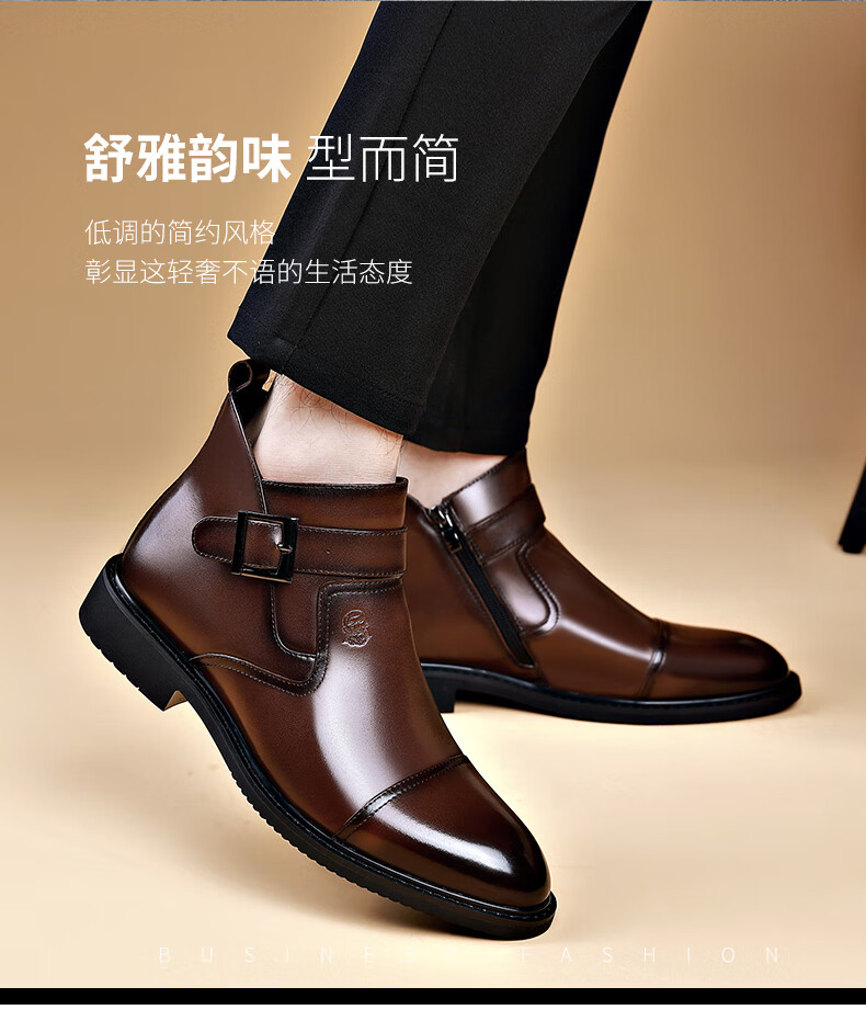 老人头正品高档皮鞋男高帮切尔西靴冬季新款2025头层牛皮商务正装休闲靴 棕色加绒款 【羊毛内里】 44 (270mm) 【标准皮鞋码】