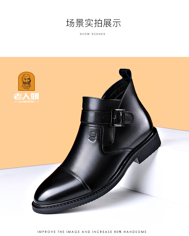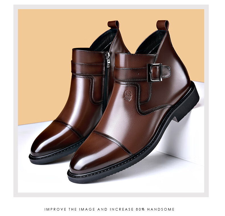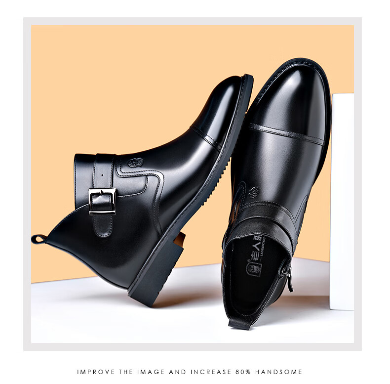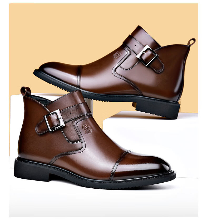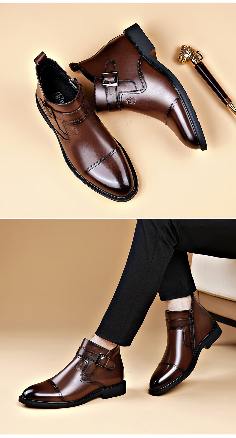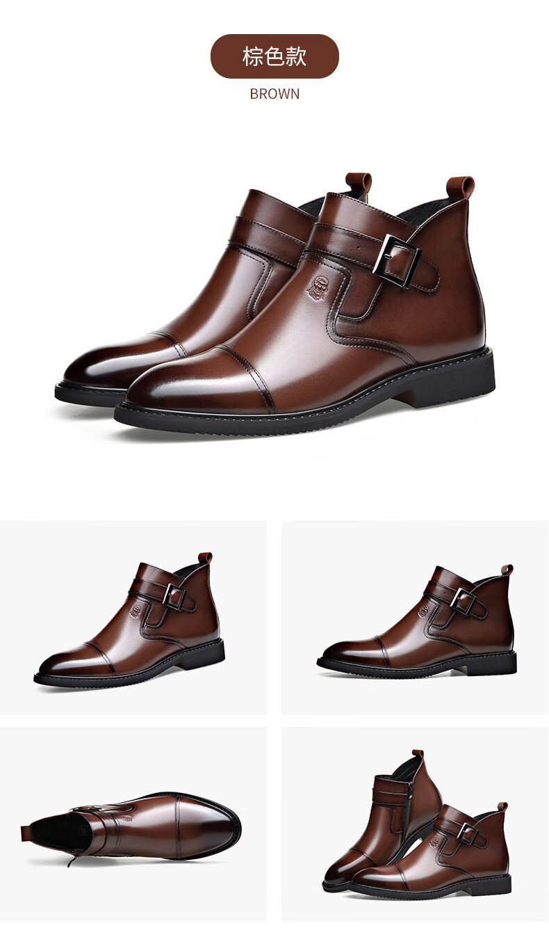 老人头正品高档皮鞋男高帮切尔西靴冬季新款2025头层牛皮商务正装休闲靴 棕色加绒款 【羊毛内里】 44 (270mm) 【标准皮鞋码】