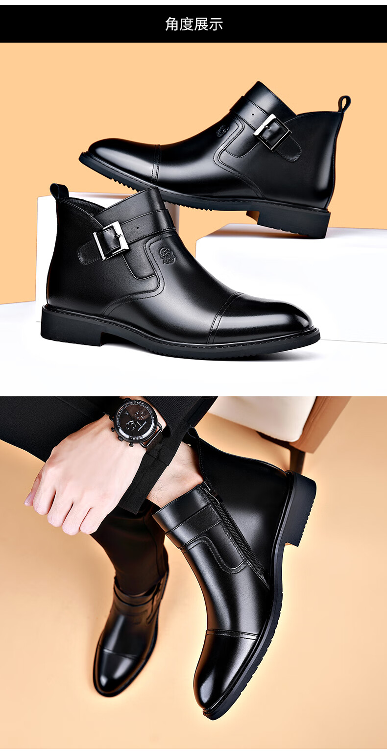 15分钟男靴马丁靴男冬季加绒男士羊毛皮靴商务休闲保暖棉靴子男 E2517