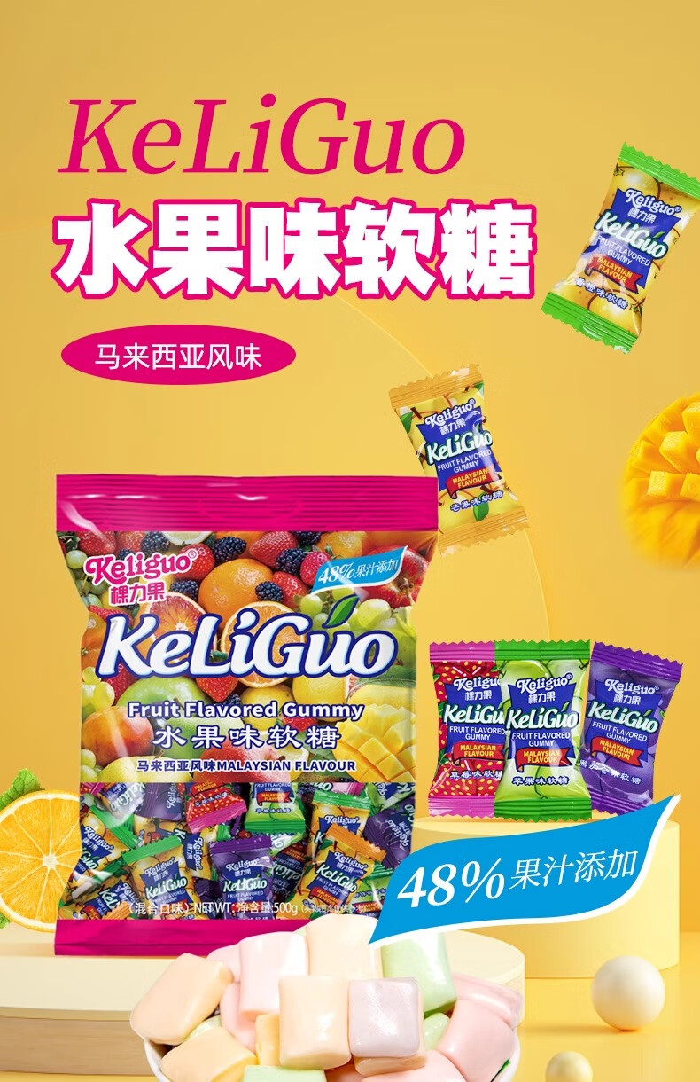 棵力果 水果软糖马来西亚风味 500g约130颗 结婚喜糖 儿童招待糖