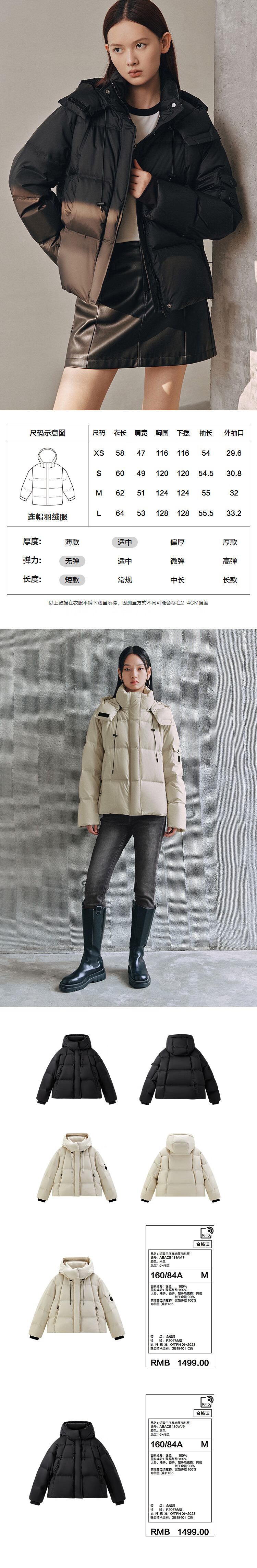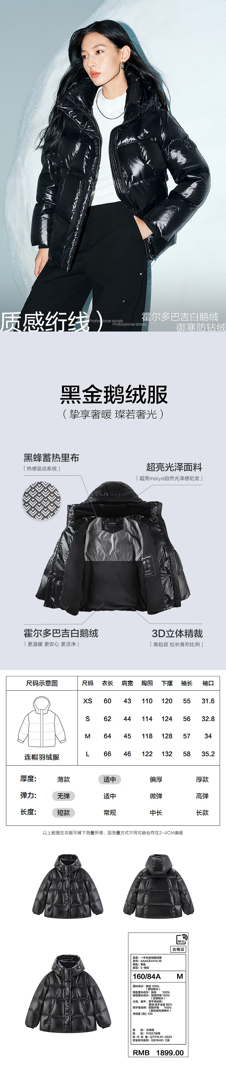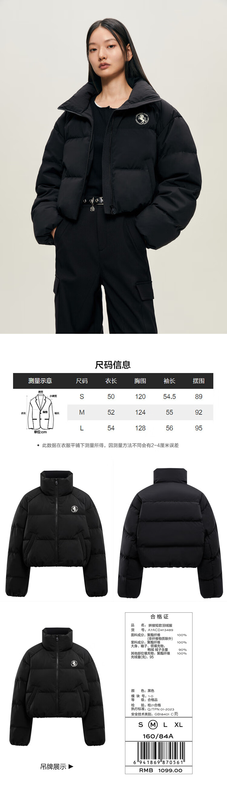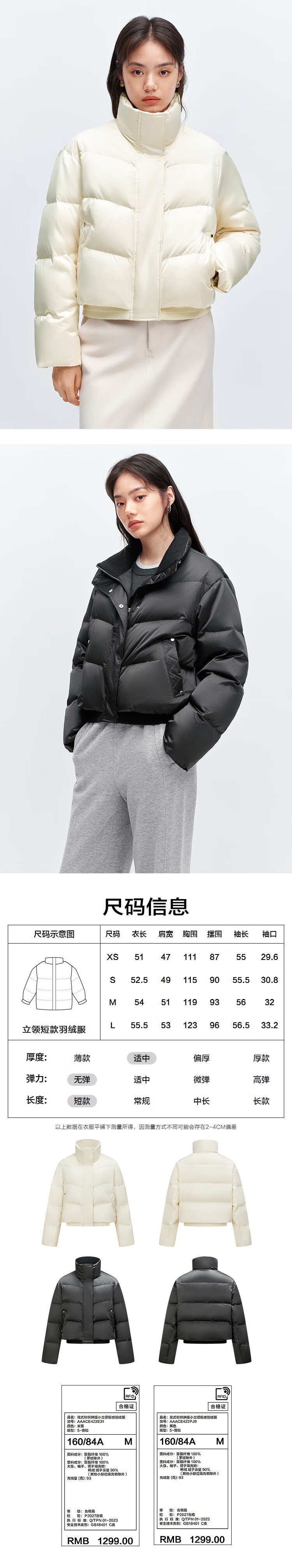 太平鸟女装轻羽绒合集反季清仓白鸭绒羽绒服简约时尚短款中长款 黑色拼接短款羽绒服 S