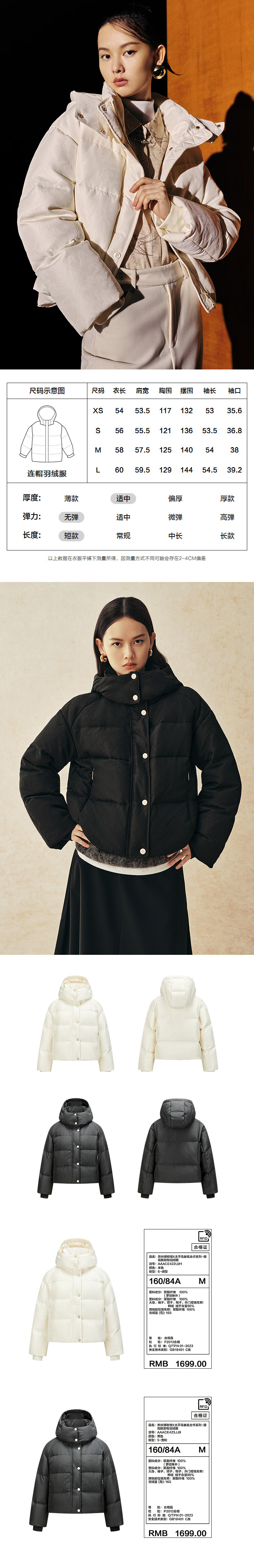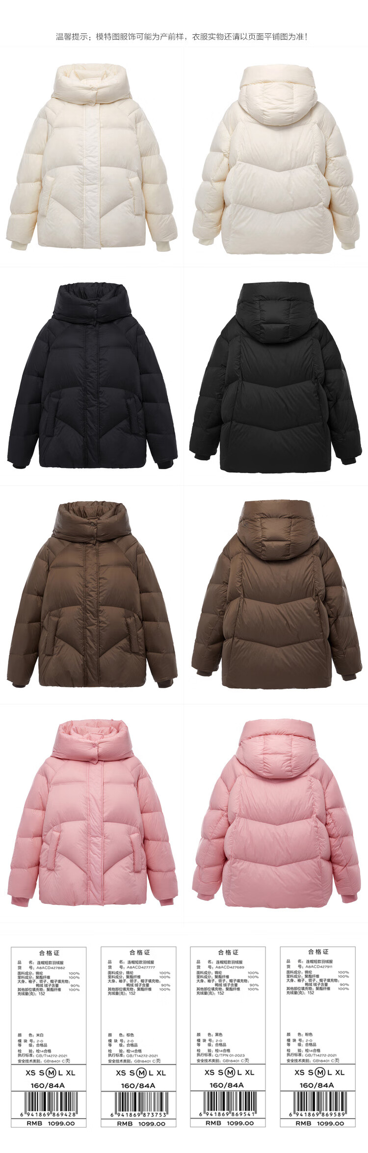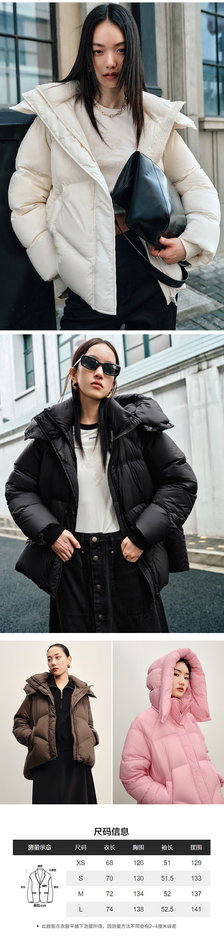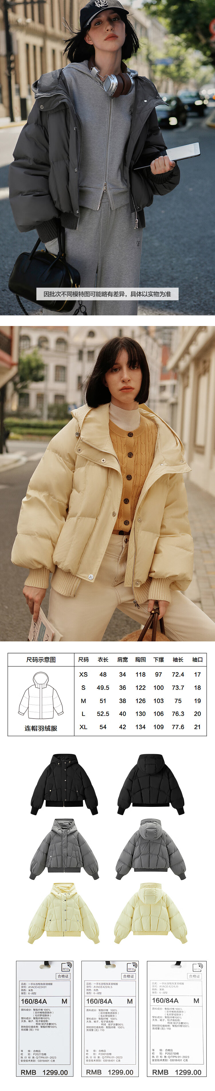 太平鸟女装轻羽绒合集反季清仓白鸭绒羽绒服简约时尚短款中长款 黑色拼接短款羽绒服 S
