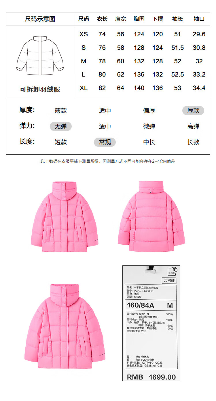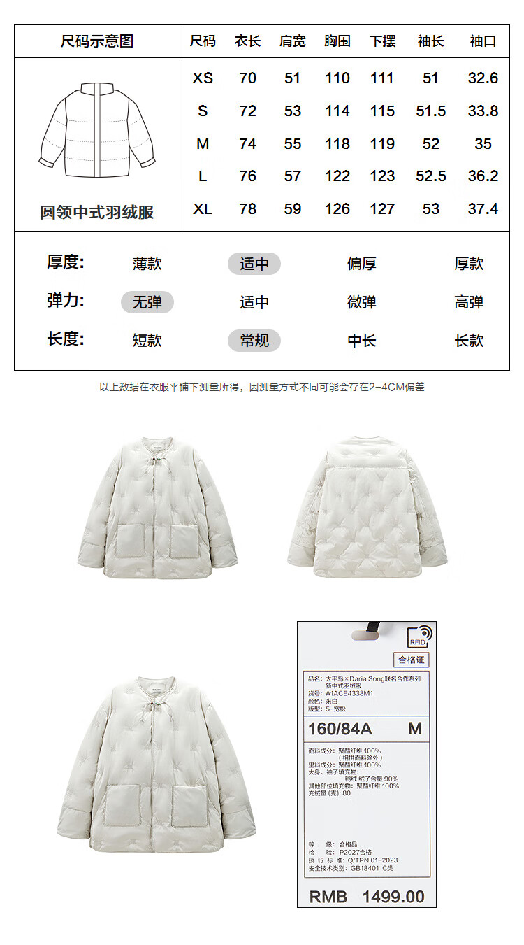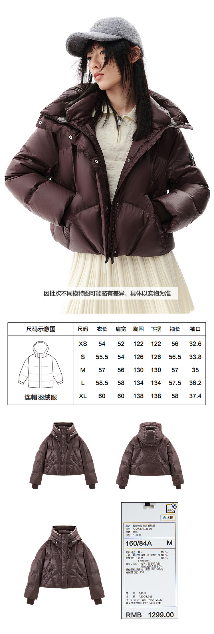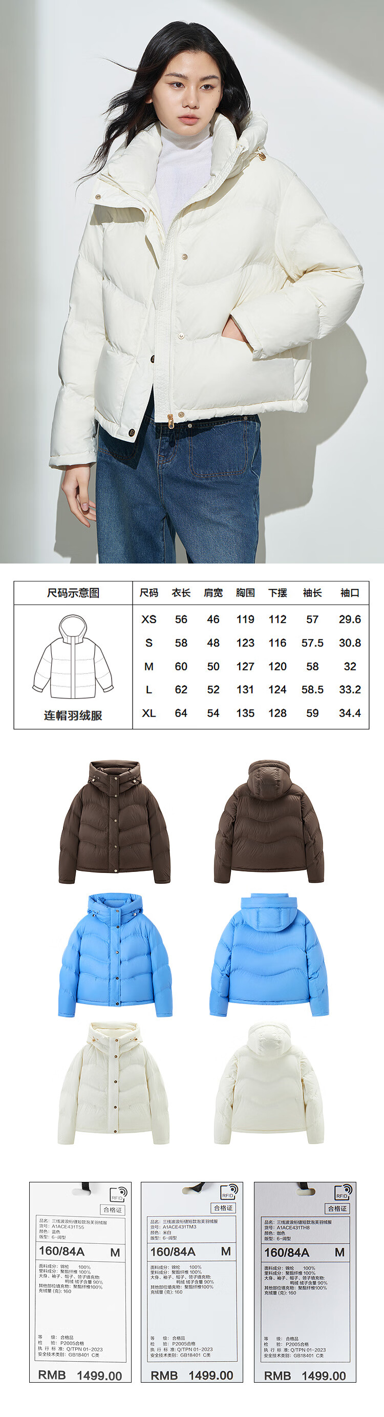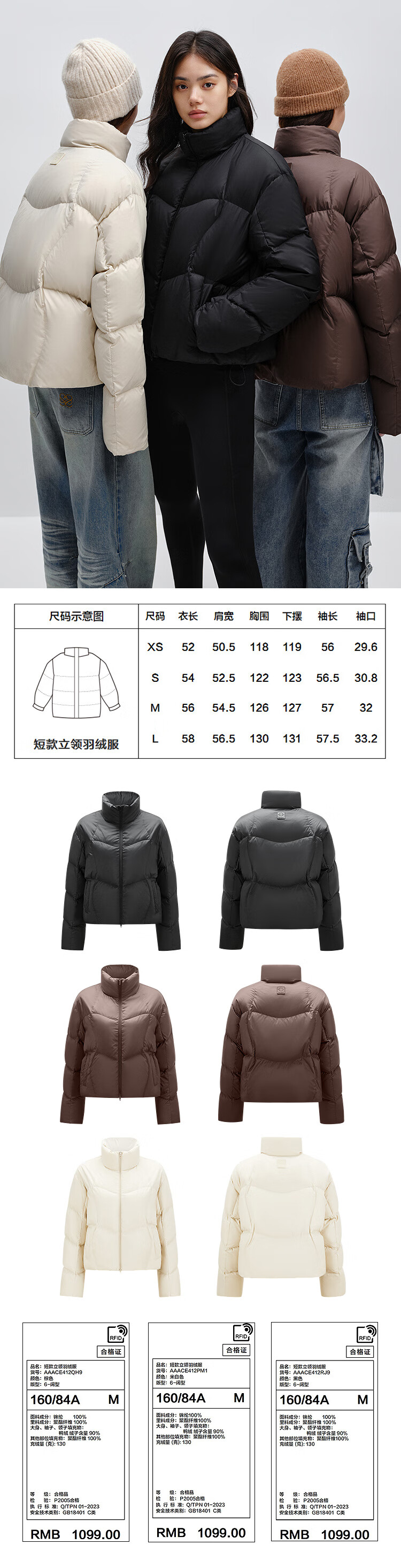 太平鸟女装轻羽绒合集反季清仓白鸭绒羽绒服简约时尚短款中长款 黑色拼接短款羽绒服 S