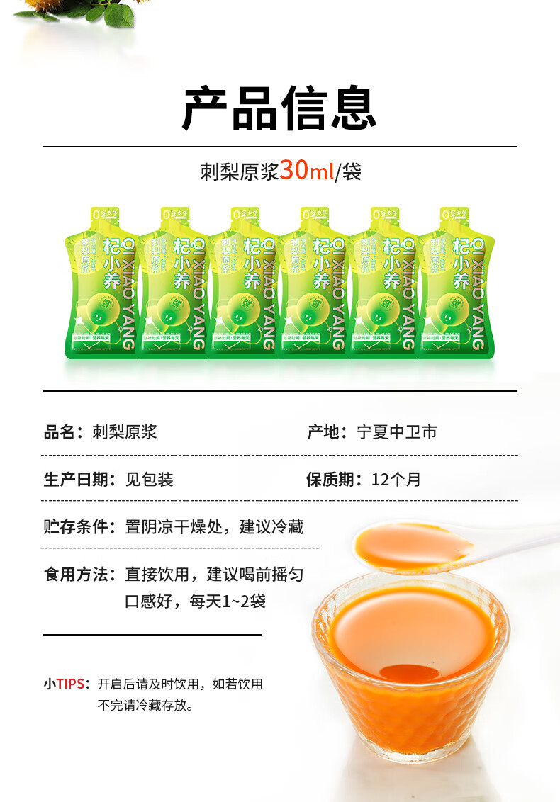 宁安堡刺梨原液高维C刺梨原汁饮品不添加便携独立包装 刺梨原浆30ml*20袋