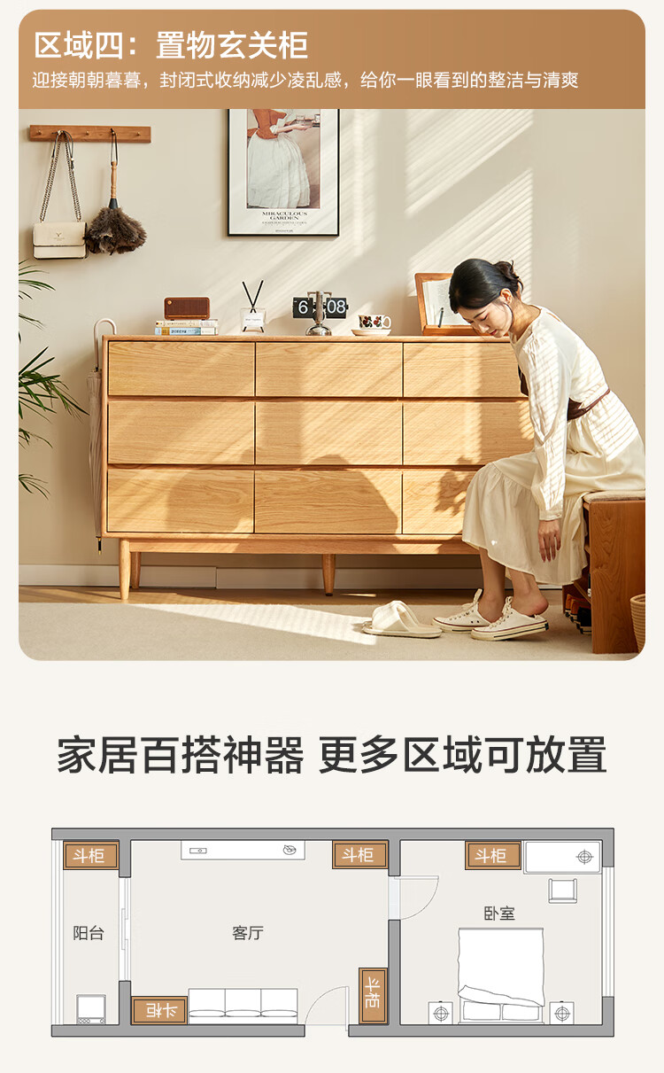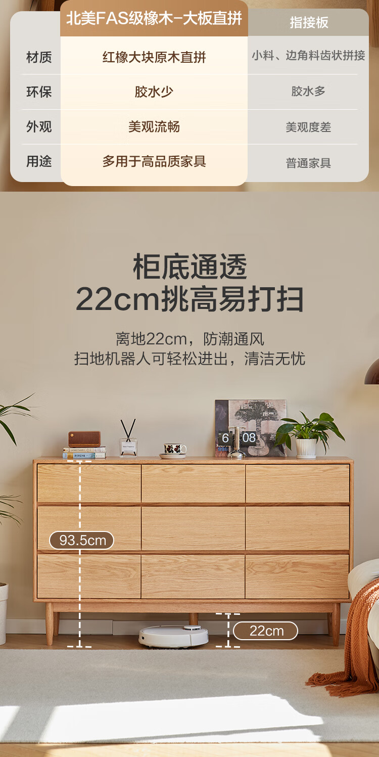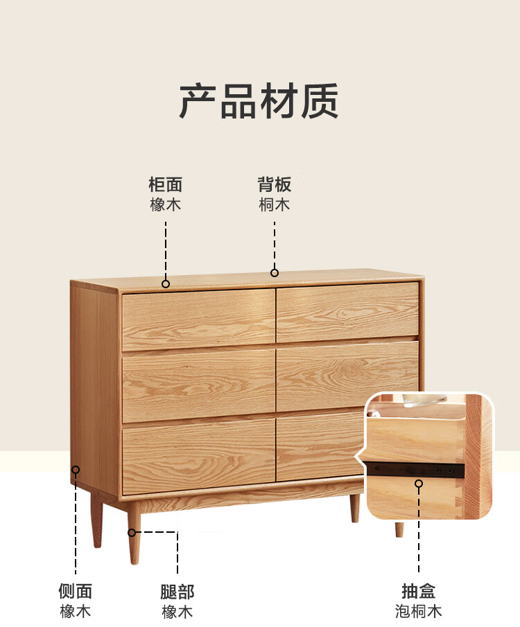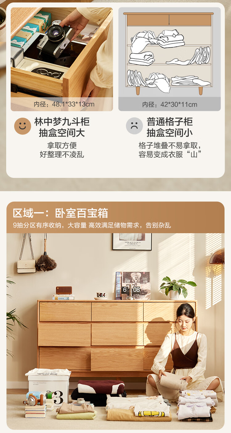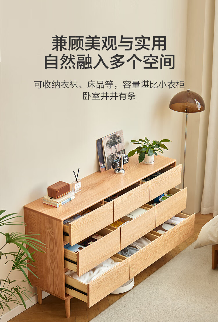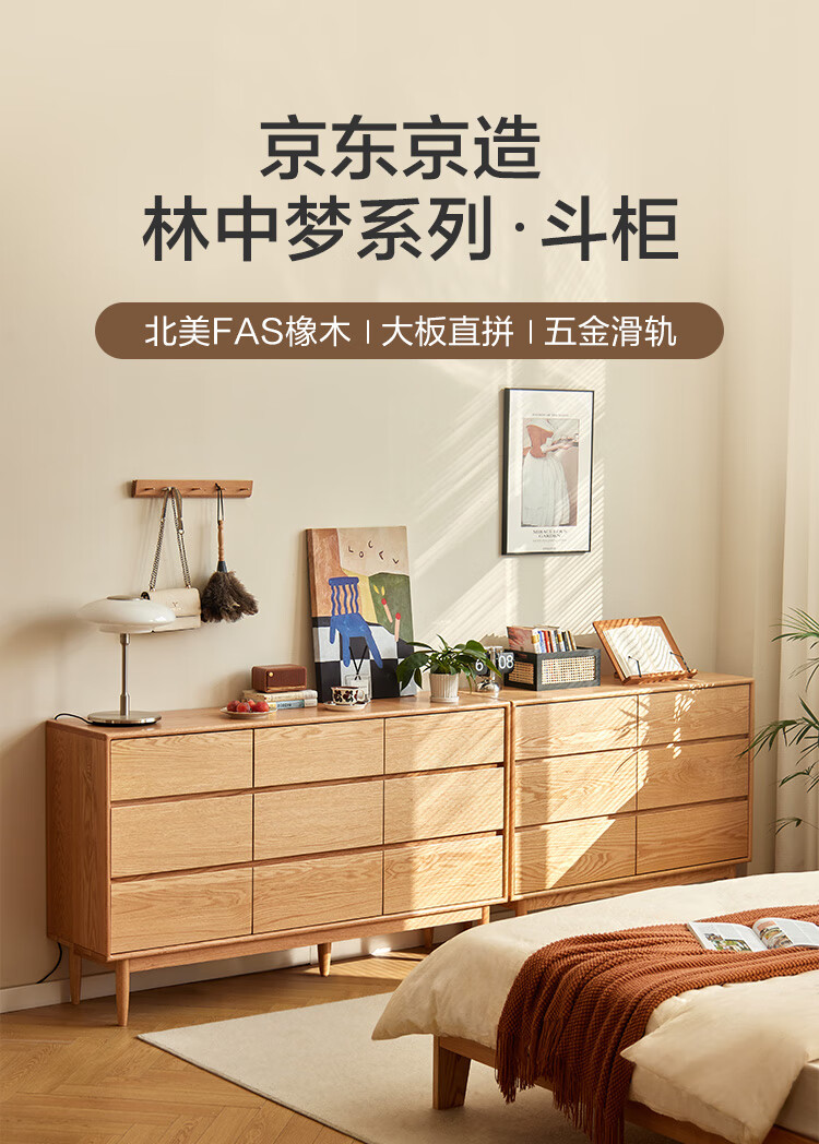 京东京造家居林中梦实木斗柜 北美FAS橡木优质五金滑轨 卧室收纳柜9斗柜