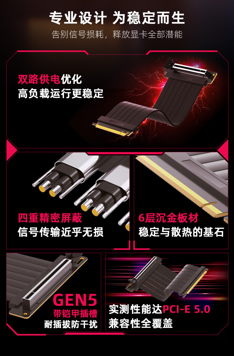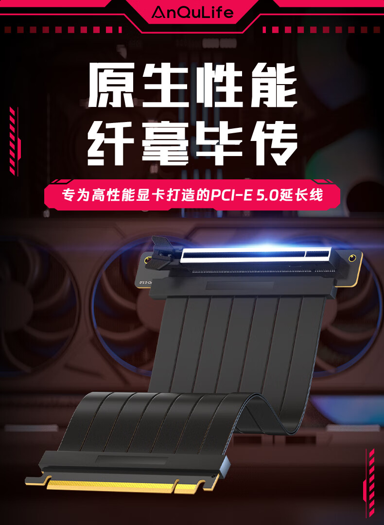 ANQULIFE显卡延长线PCIe5.0 X16显卡竖装转接线90度20厘米双层可弯发烧级全速无衰减支持5060/5090 AQ-A502