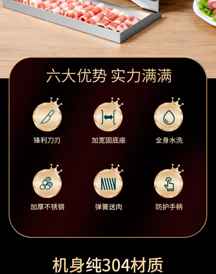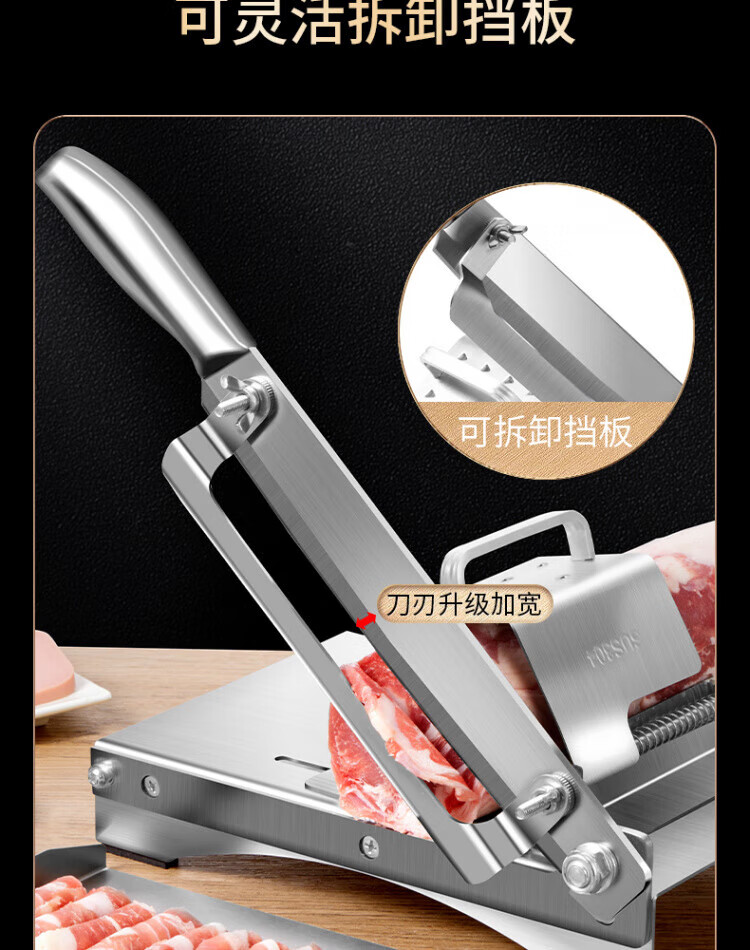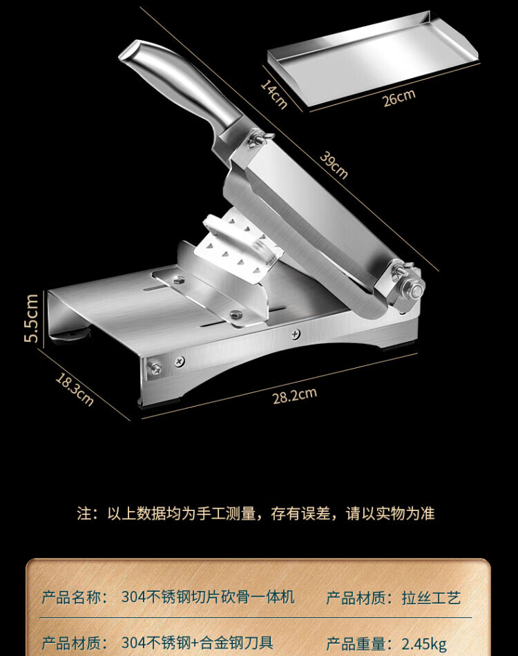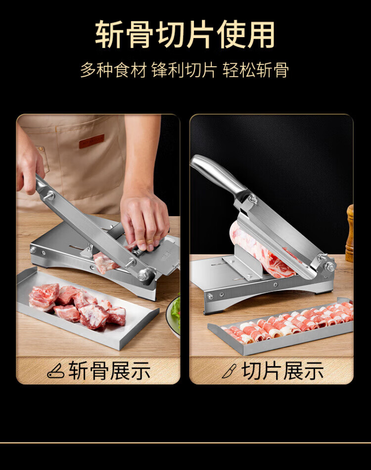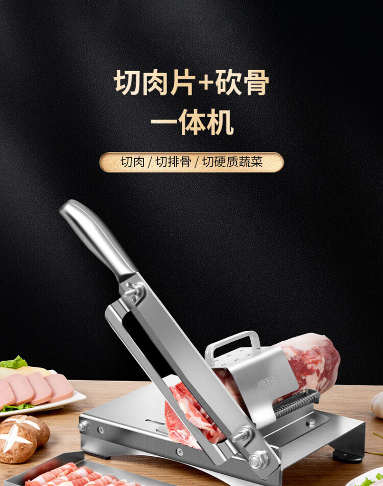 WCZ德国切羊肉卷机切片机家用多功能切肉卷机切骨机牛羊肉切卷机刨肉 加厚304不锈钢切骨/切片两用+接料盘