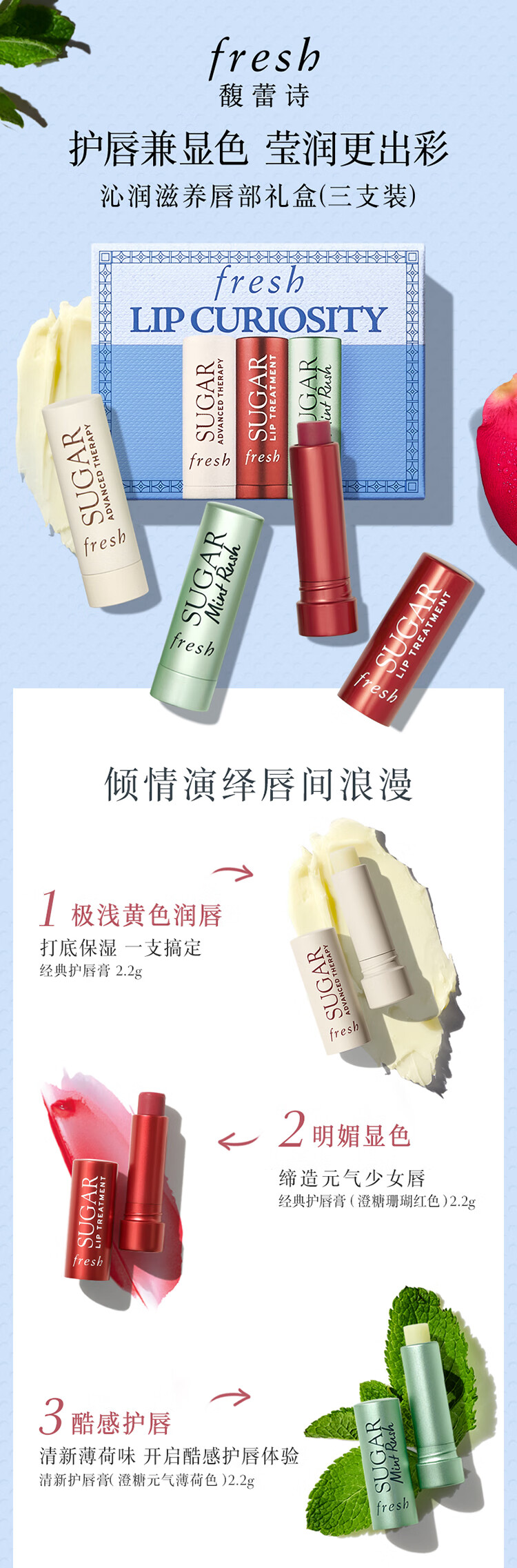 Fresh馥蕾诗沁润滋养唇部礼盒(2.2g*3)润唇膏 生日礼物送女友男友