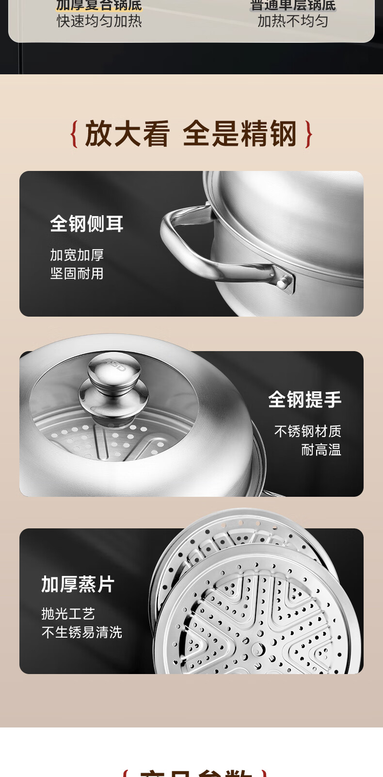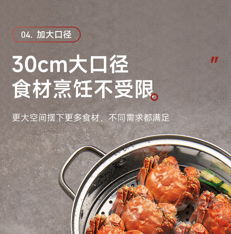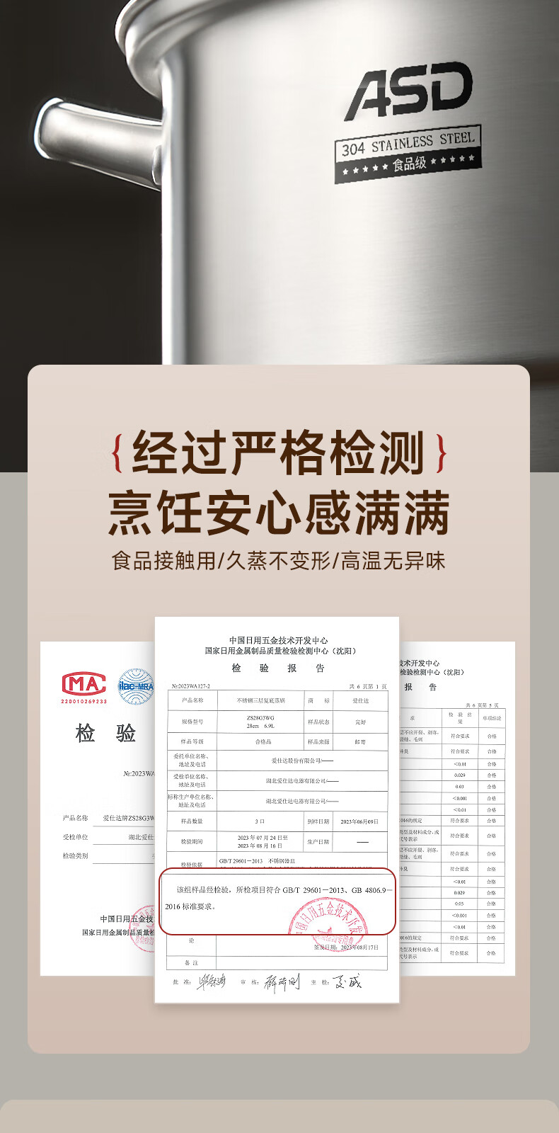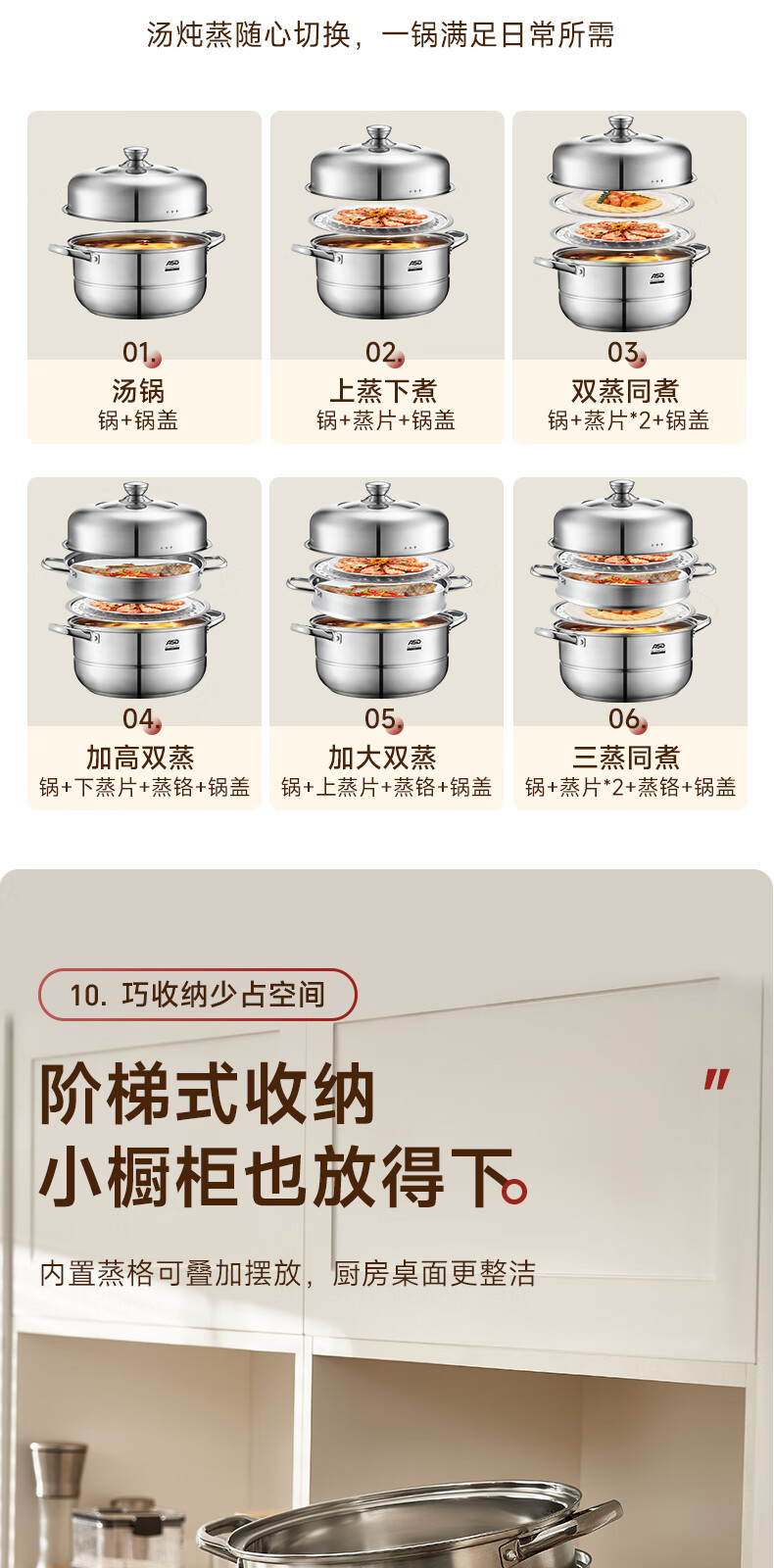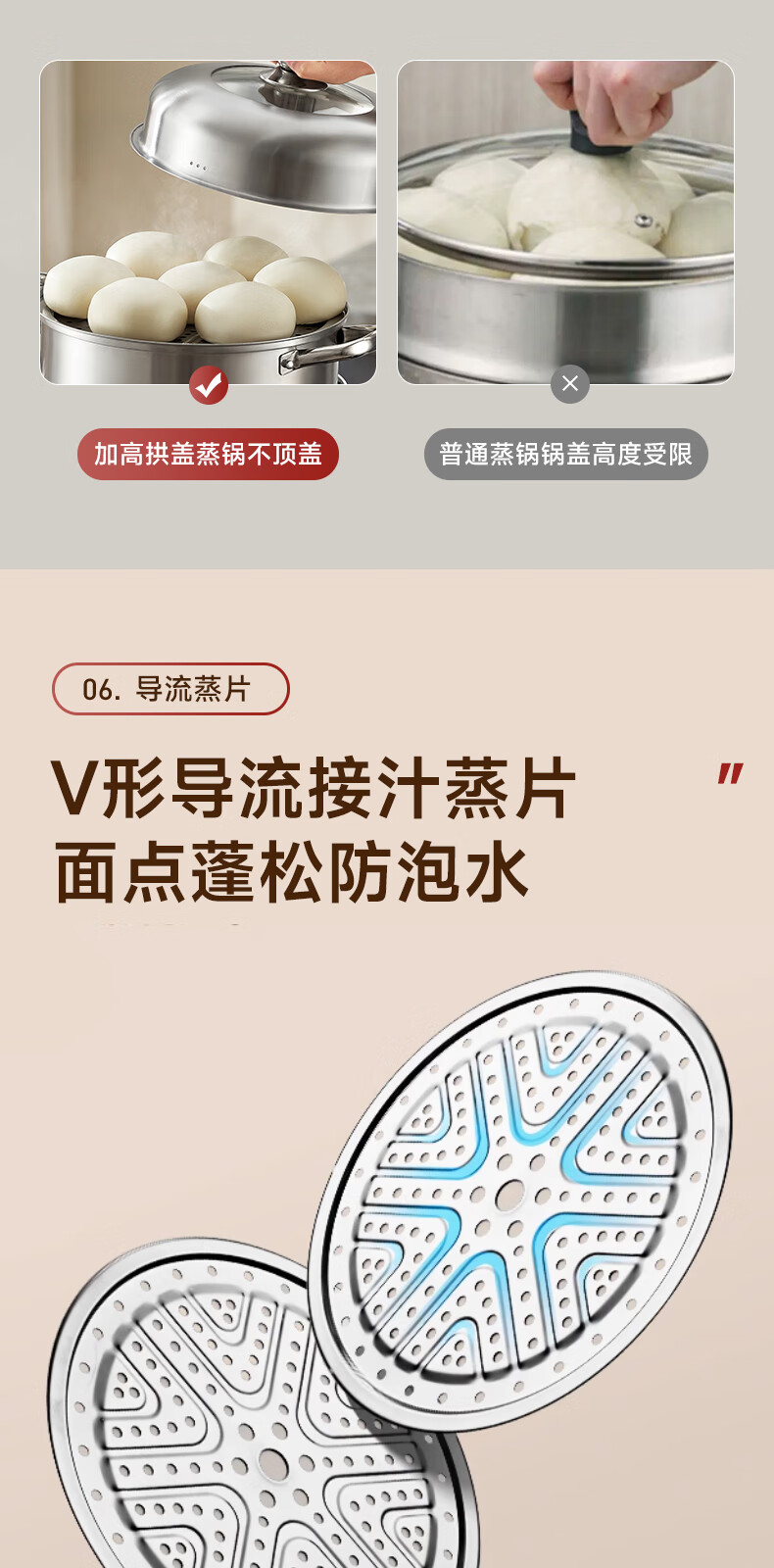 爱仕达(ASD)蒸锅304不锈钢三层汤锅蒸煮一体 家用复底28CM大容量高拱盖蒸笼G3
