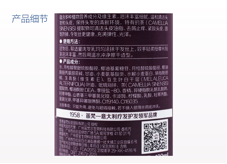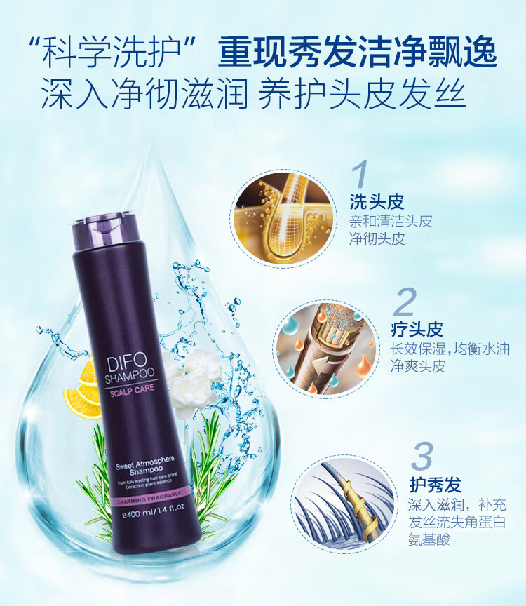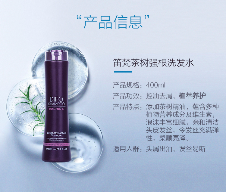 笛梵(DIFO)控油去屑止痒洗发水留香持久香氛洗发乳茶树强根400ml热门商品17