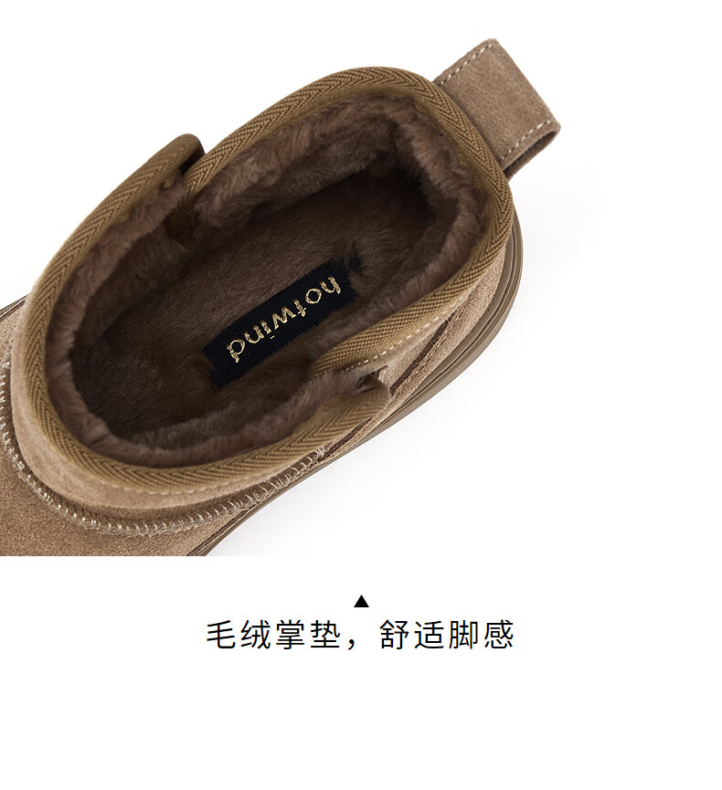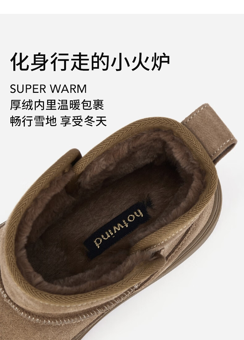 热风(Hotwind)男鞋2025年冬季新款男士时尚靴子休闲雪地靴套筒百搭短靴棉鞋 08杏色 38