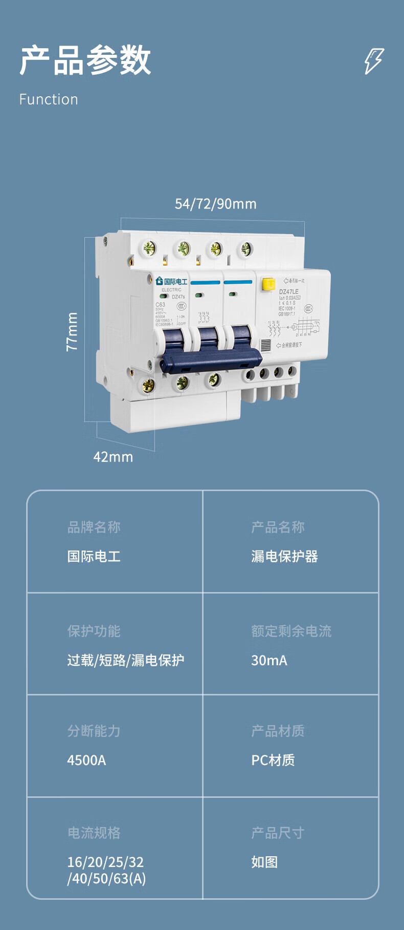 国际电工空气开关家用1P2匹16A40A63a电闸三相空开总闸带断路器短路保护器 1P16A