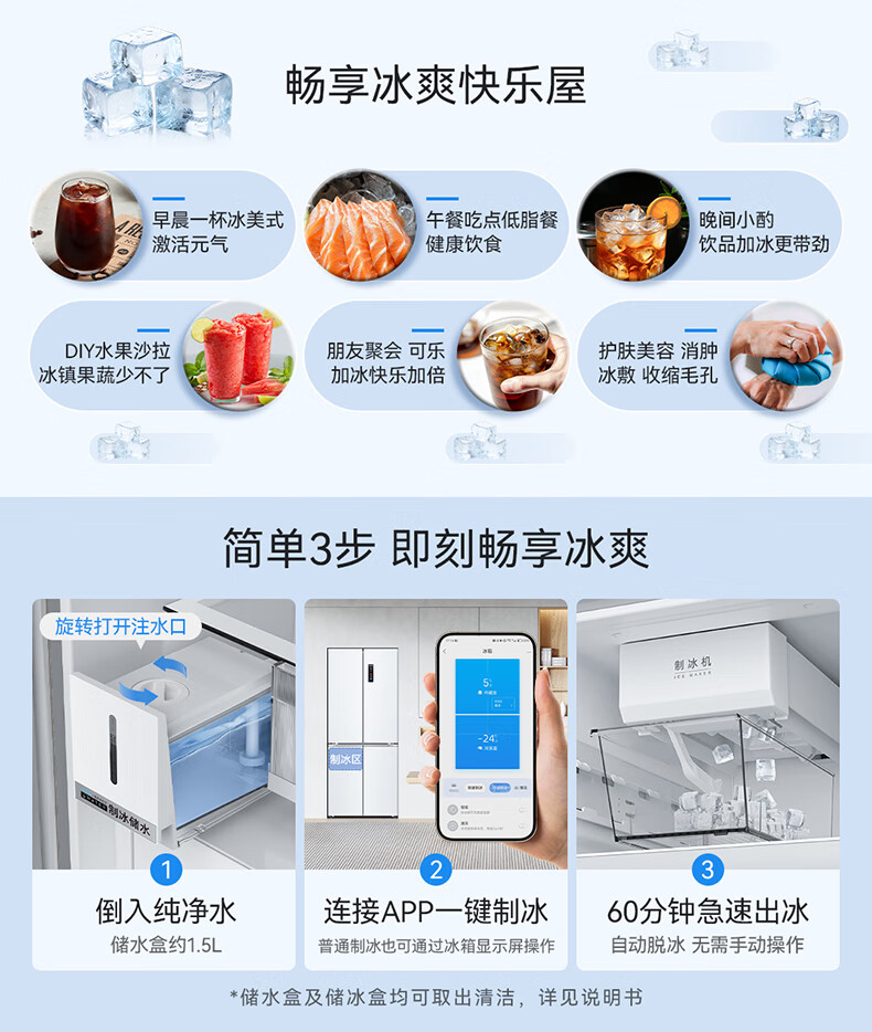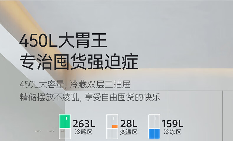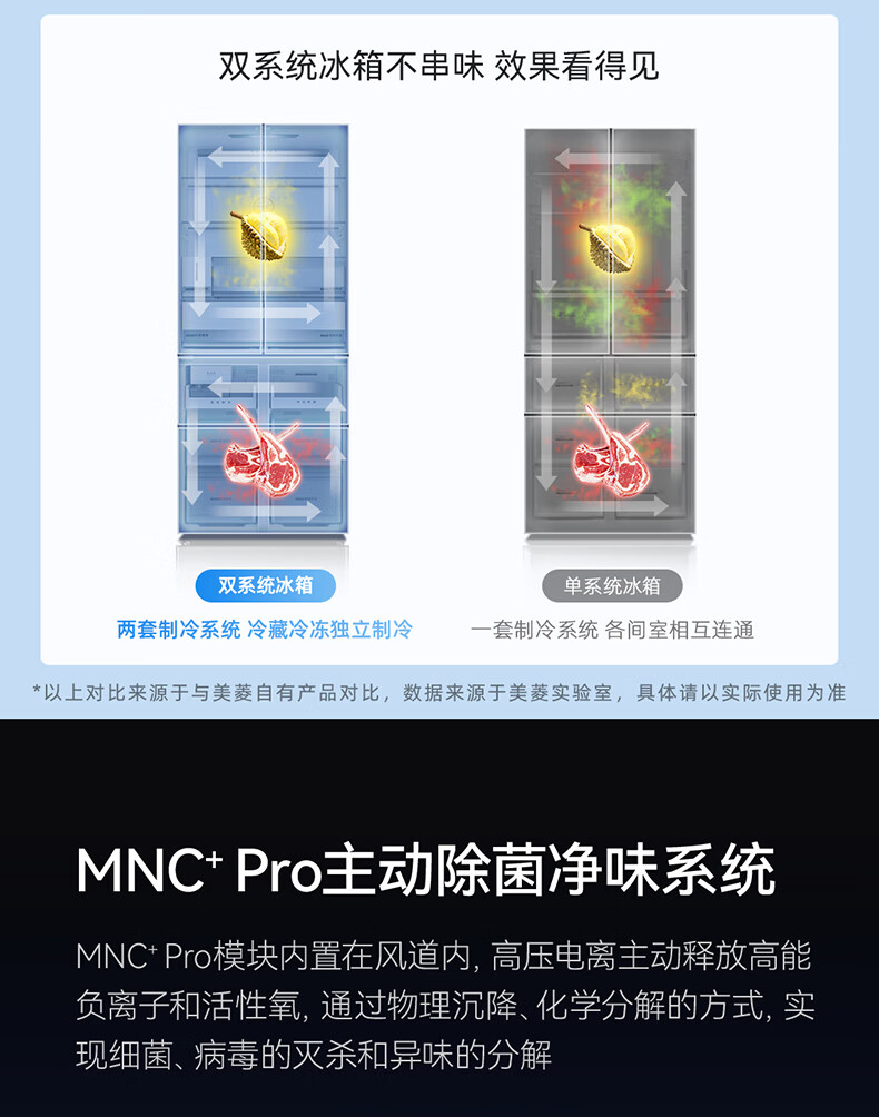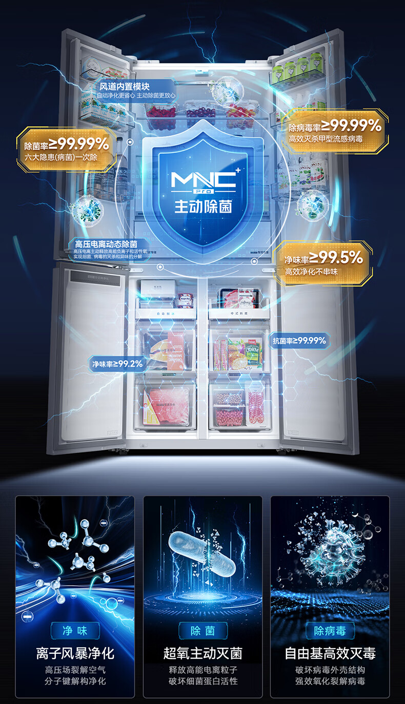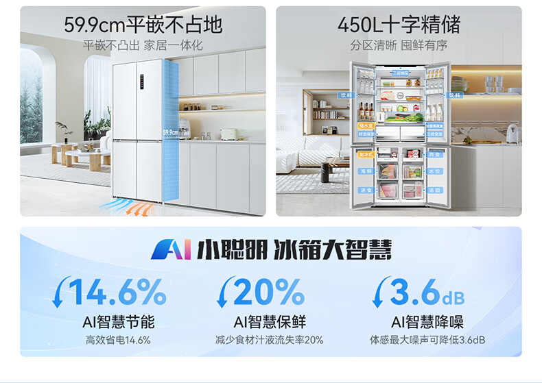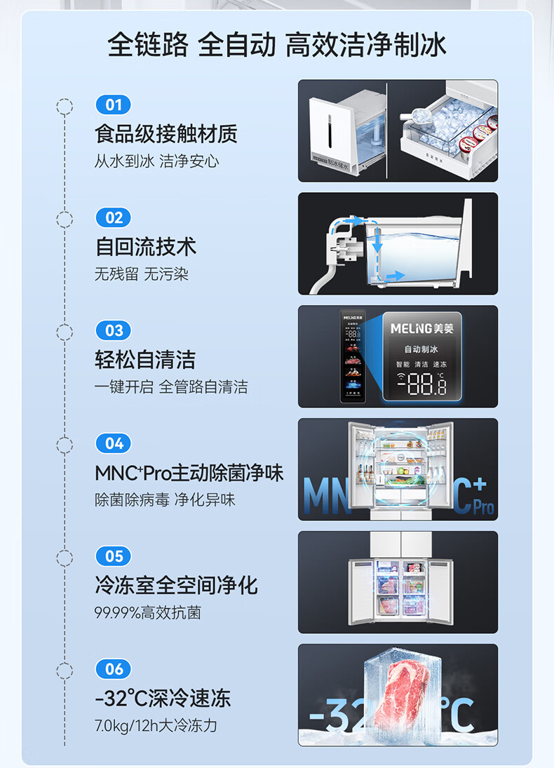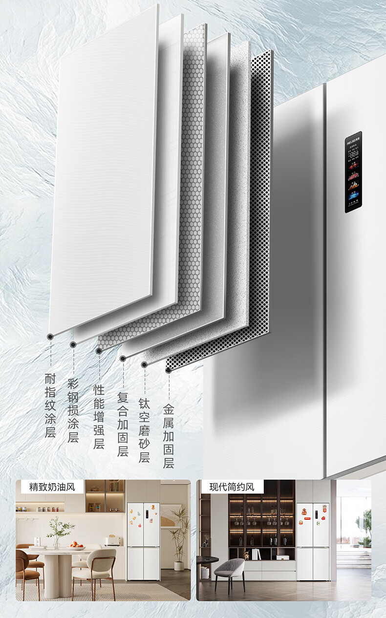 美菱(MeiLing)大白鲸450升自动制冰十字四开门冰箱双系统超薄零嵌入主动除菌底部散热BCD-450WSPU9CIZX国家补贴