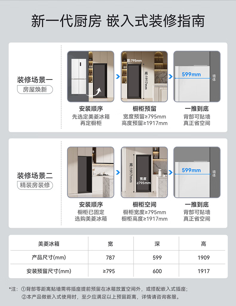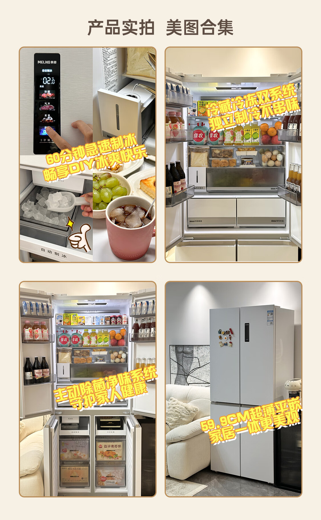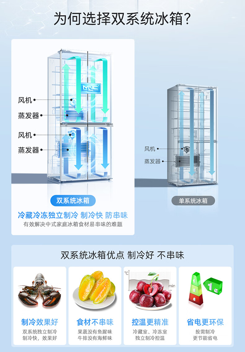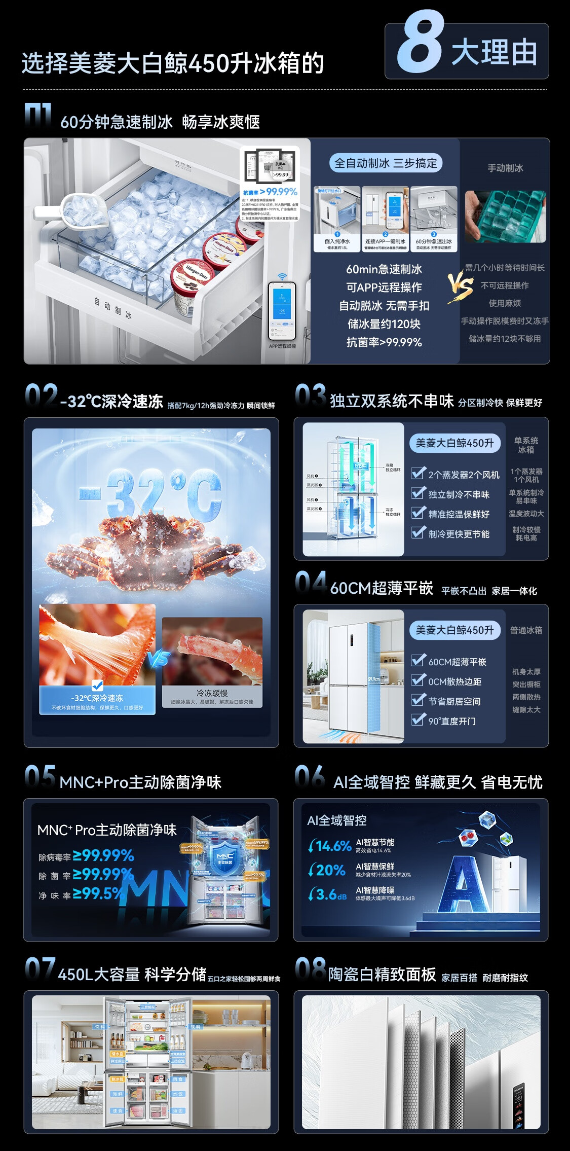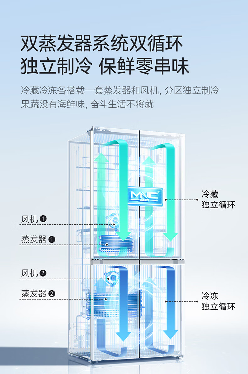 美菱(MeiLing)大白鲸450升自动制冰十字四开门冰箱双系统超薄零嵌入主动除菌底部散热BCD-450WSPU9CIZX国家补贴