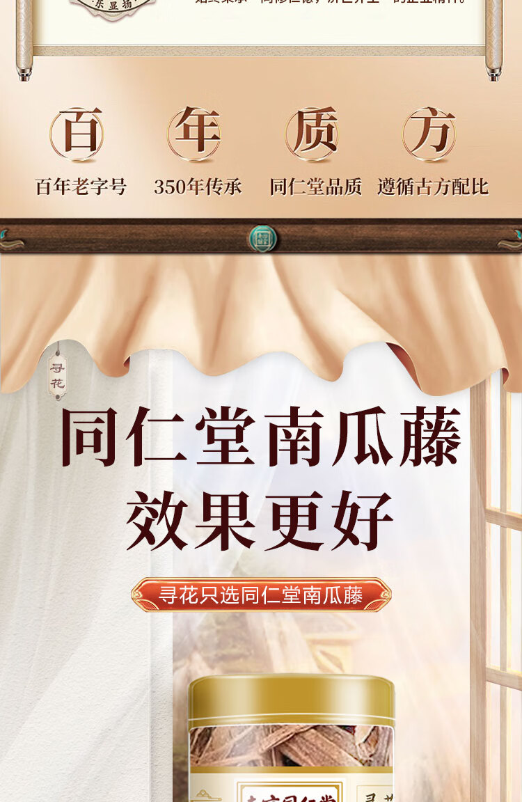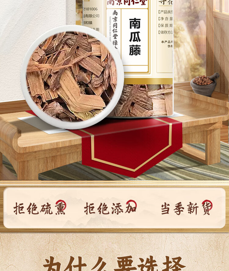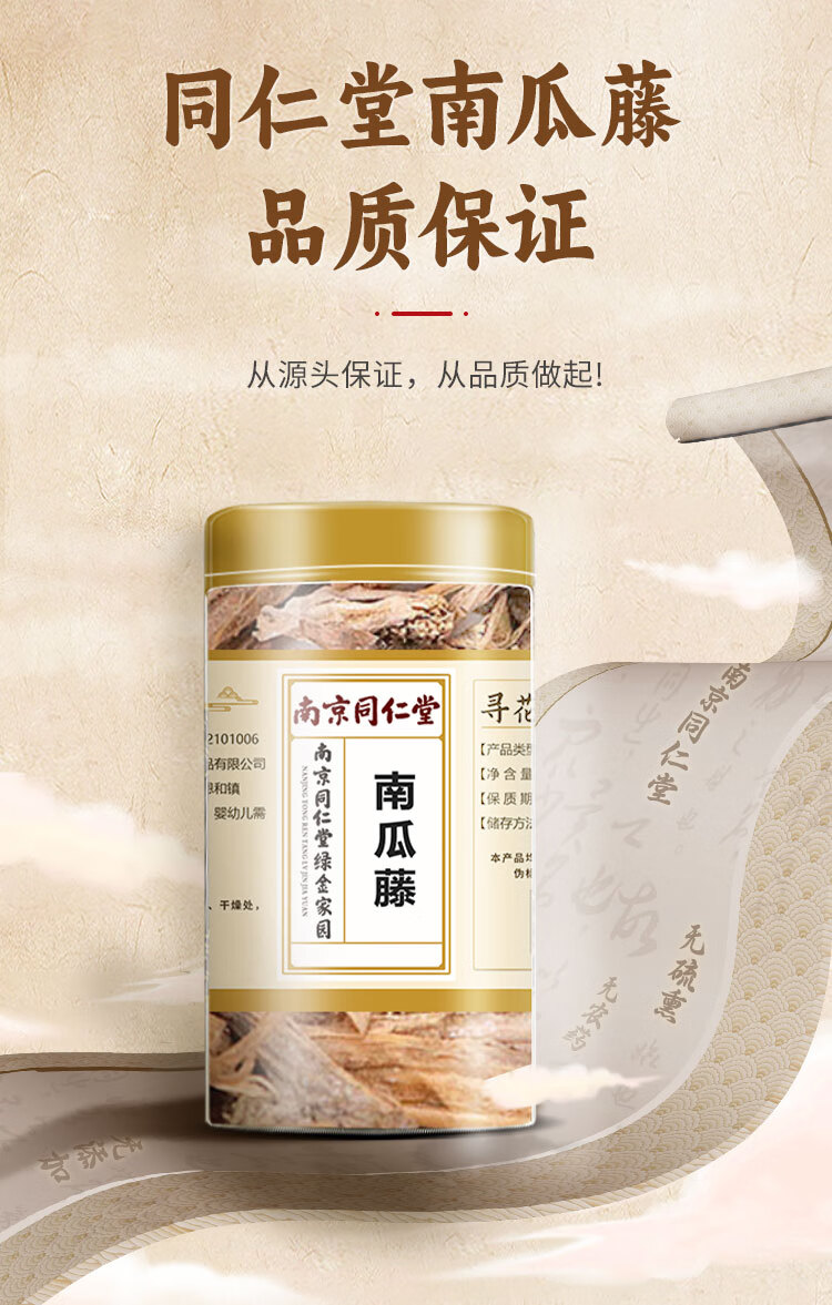 同仁堂胖|东|来大药房品质 南瓜藤野生特级中药材正品 140g新鲜干货煲汤 买3送1 精选无硫4瓶装