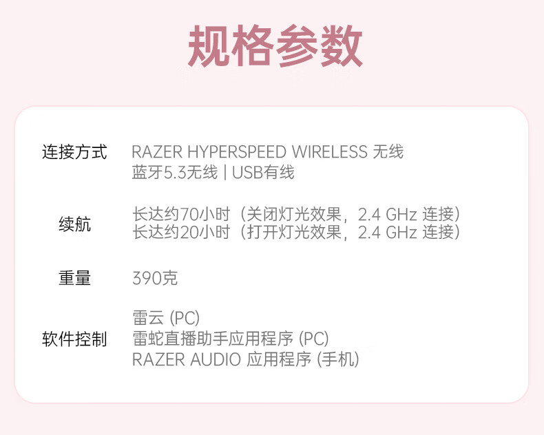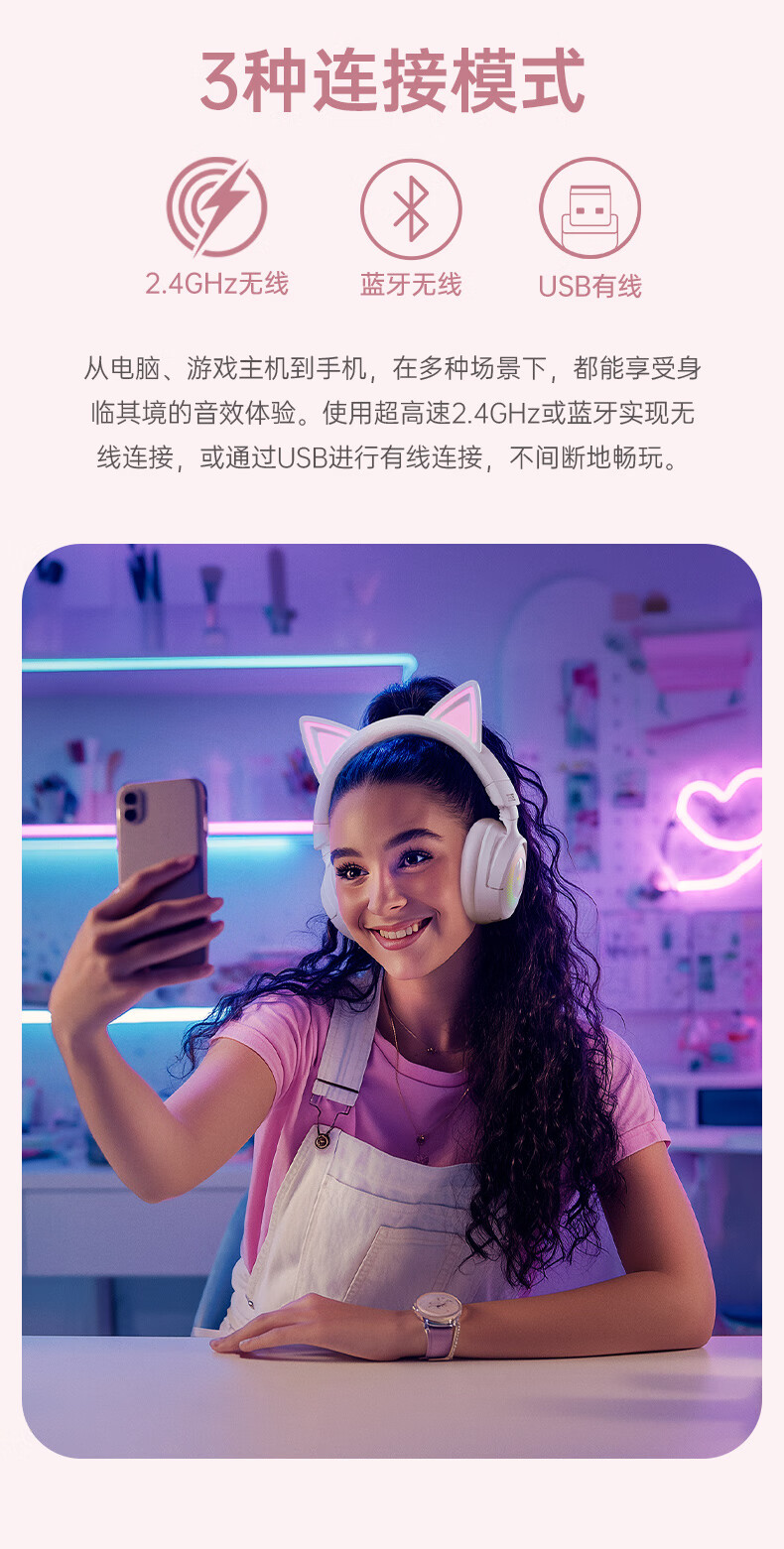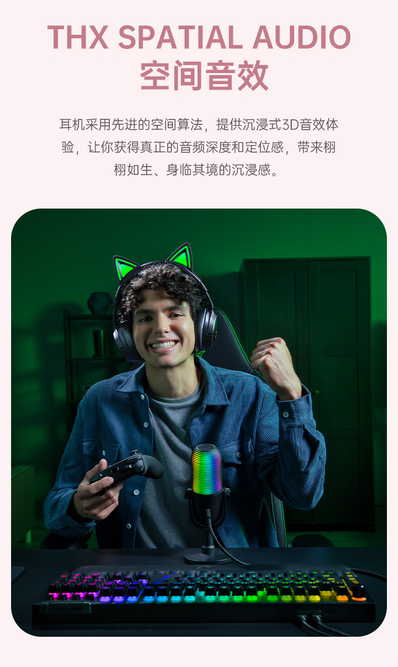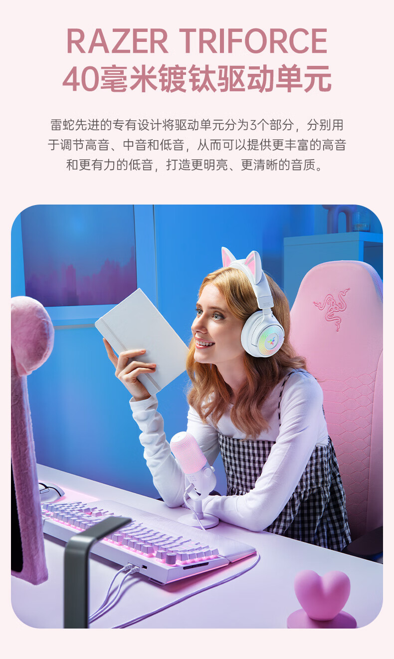 雷蛇(Razer)北海巨妖萌猫专业版V3 头戴式电竞游戏耳机 直播网红猫耳RGB灯效 2.4G/有线/蓝牙三模 三角洲 白色
