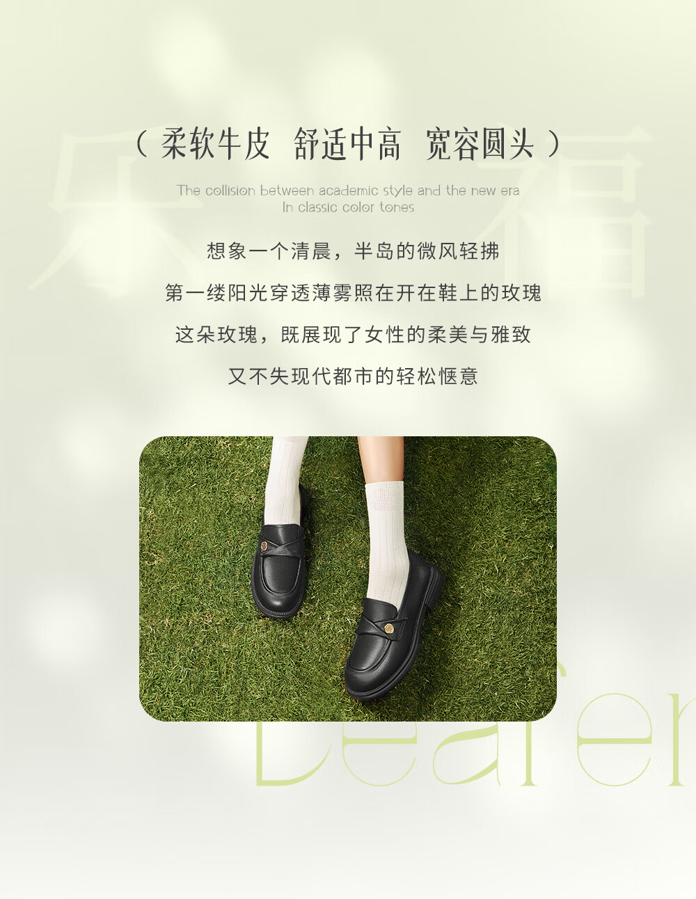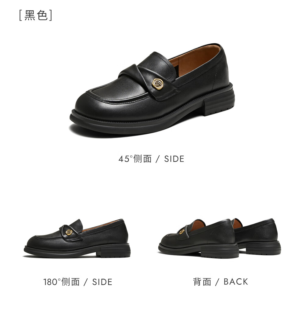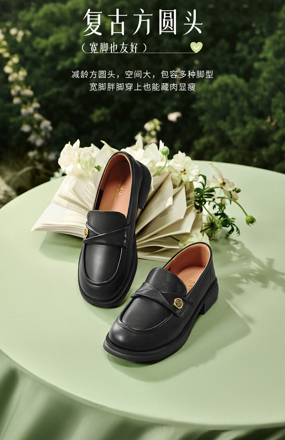 他她半岛玫瑰英伦风乐福鞋女鞋山茶花小皮鞋7WX22CA4黑色 38