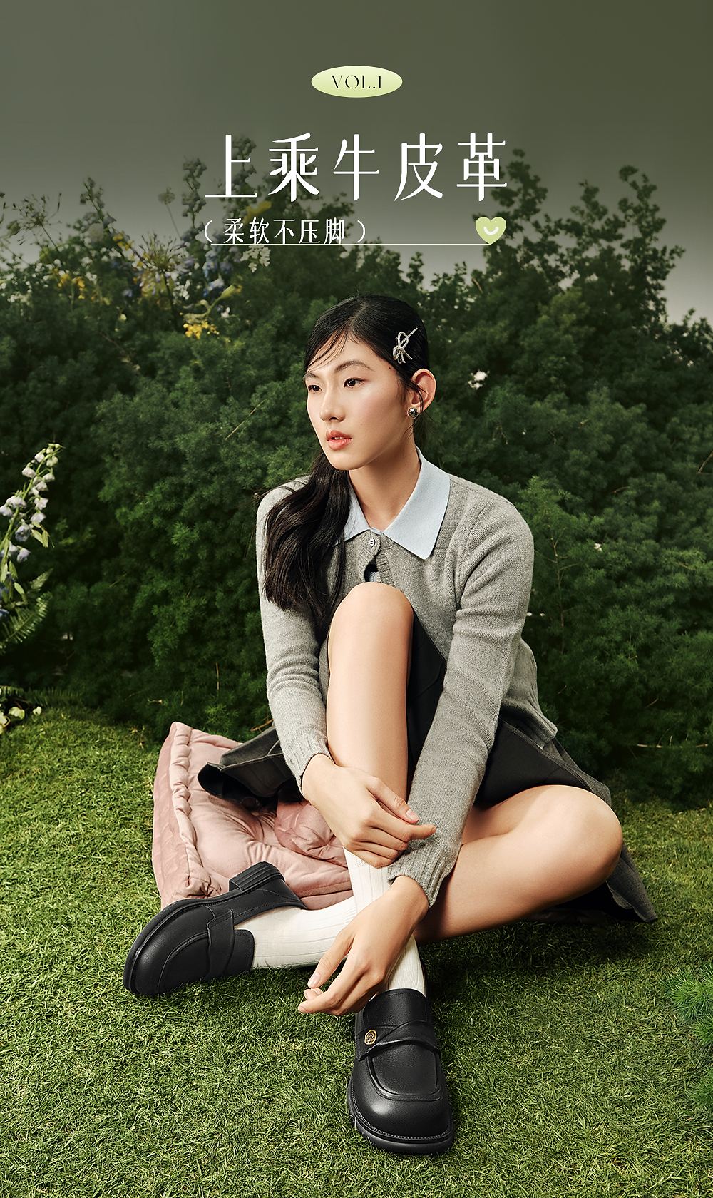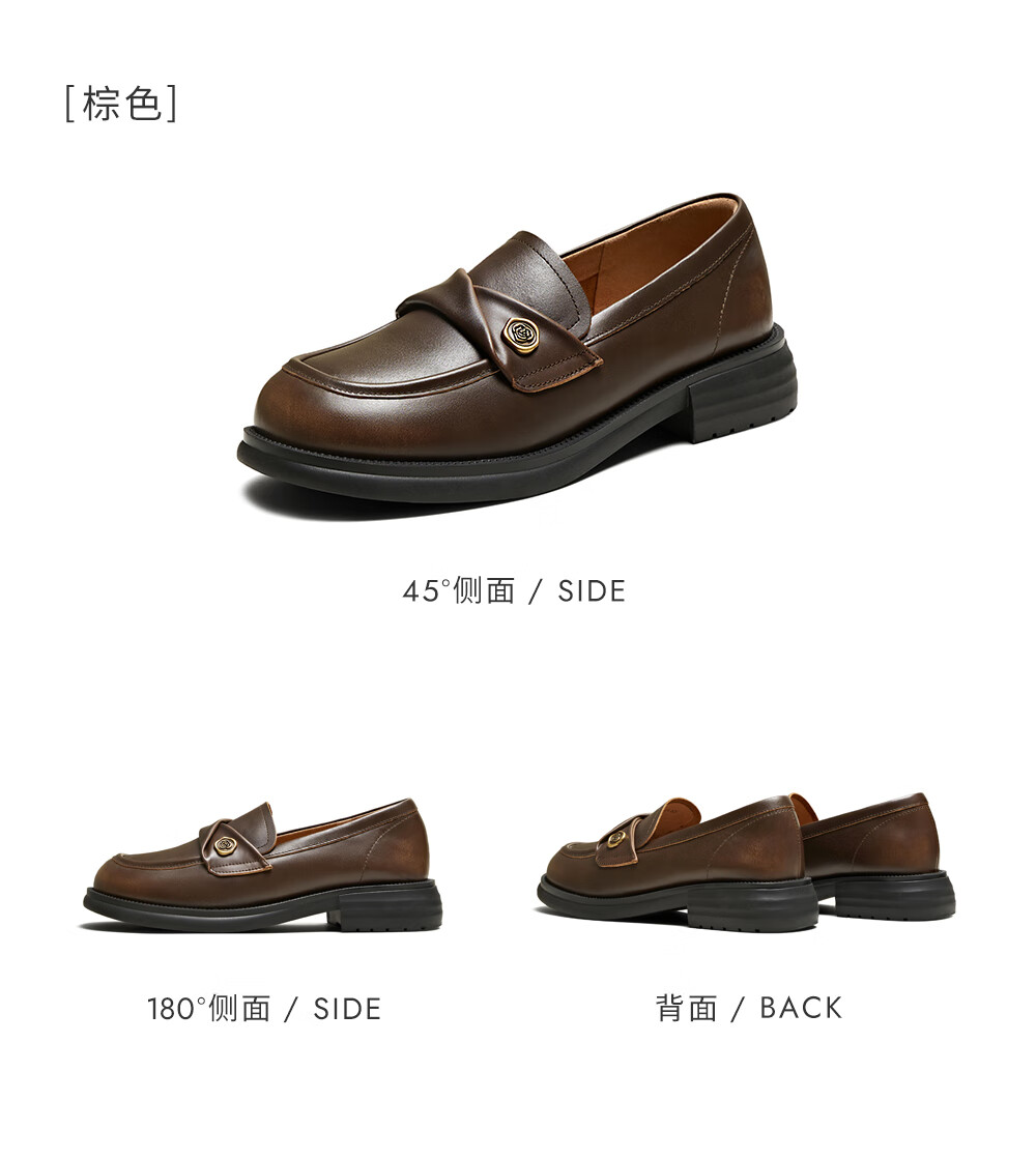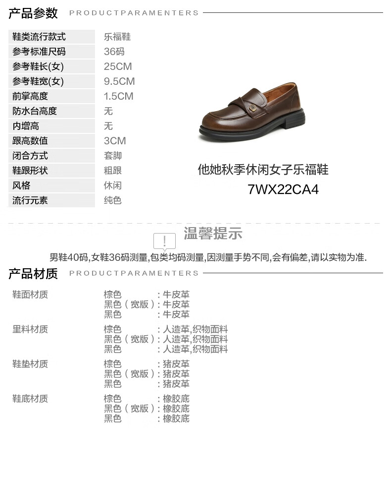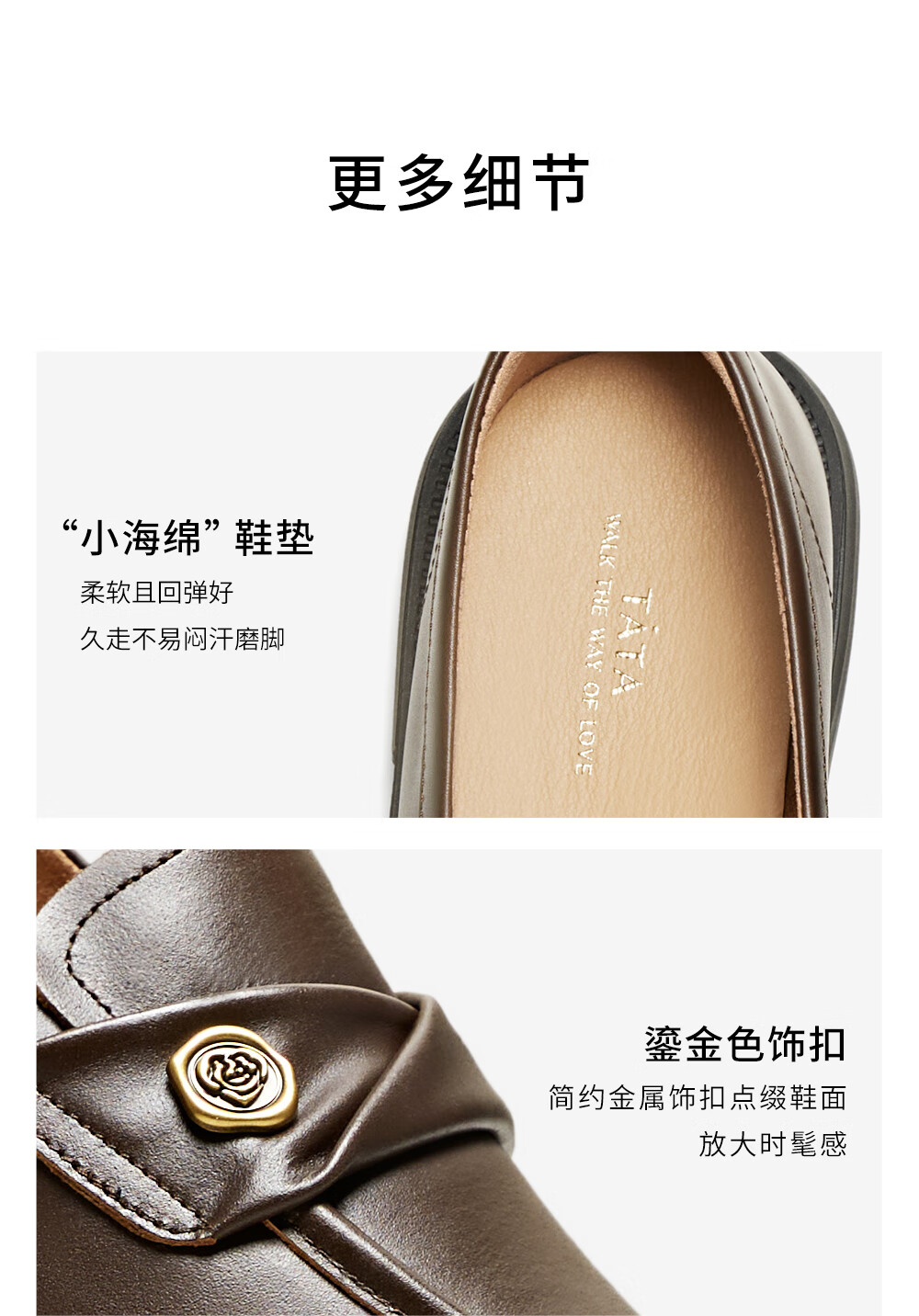 他她半岛玫瑰英伦风乐福鞋女鞋山茶花小皮鞋7WX22CA4黑色 38
