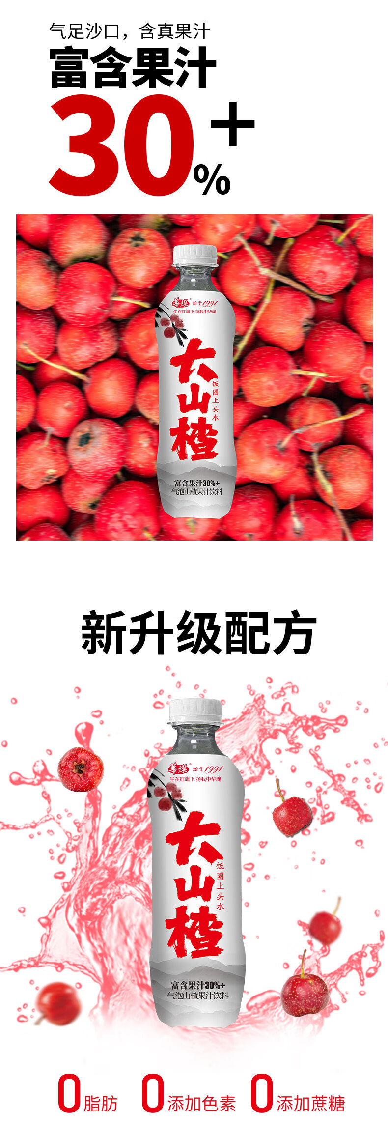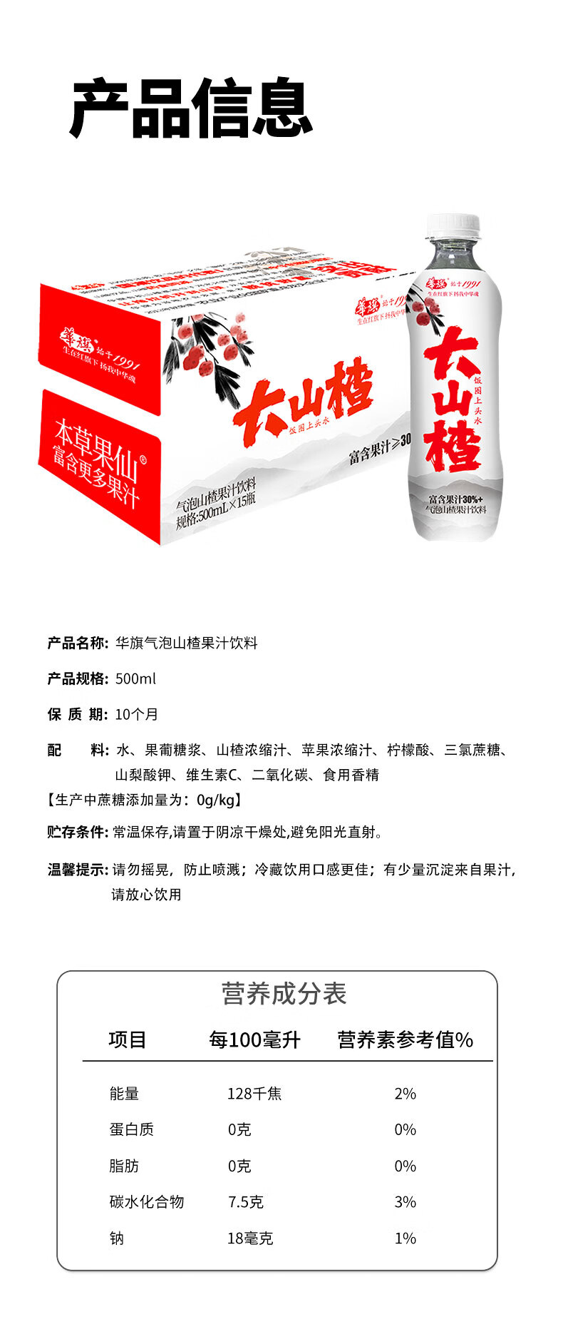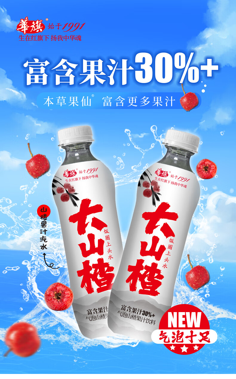 华旗大山楂 气泡山楂果汁饮料 富含果汁≥30% 气泡十足 口感酷爽 500ml*4瓶