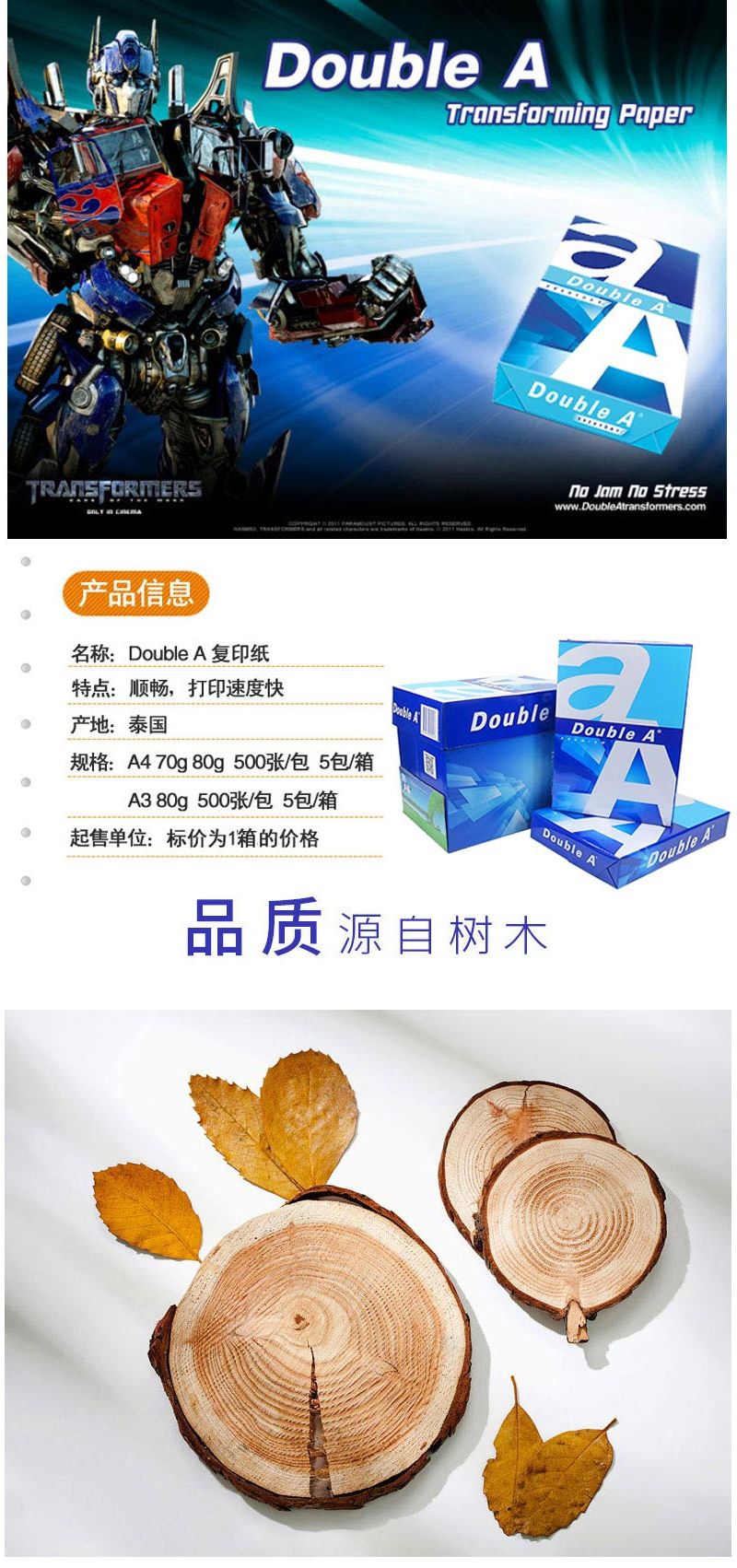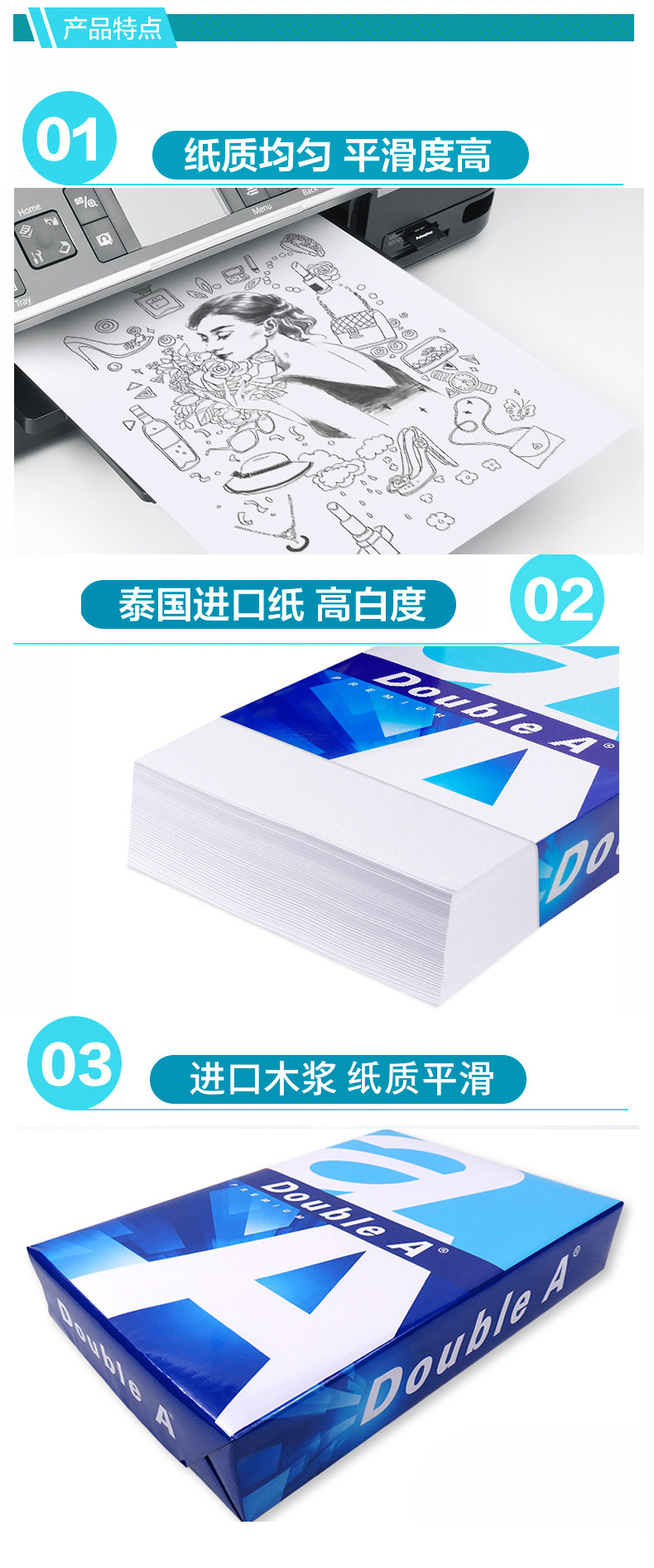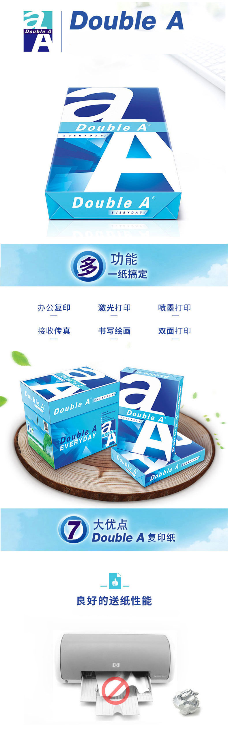 Double A 达伯埃复印纸学生办公用品打印纸可双面打印整箱批发多省免邮 A4 80克 整箱(5包)