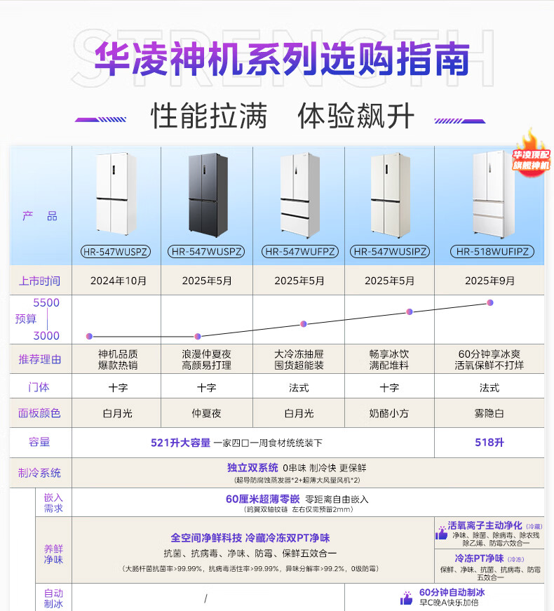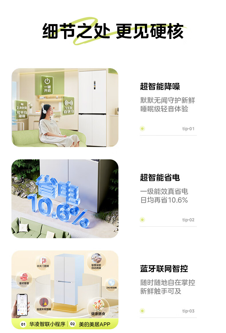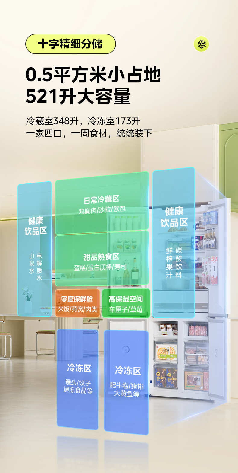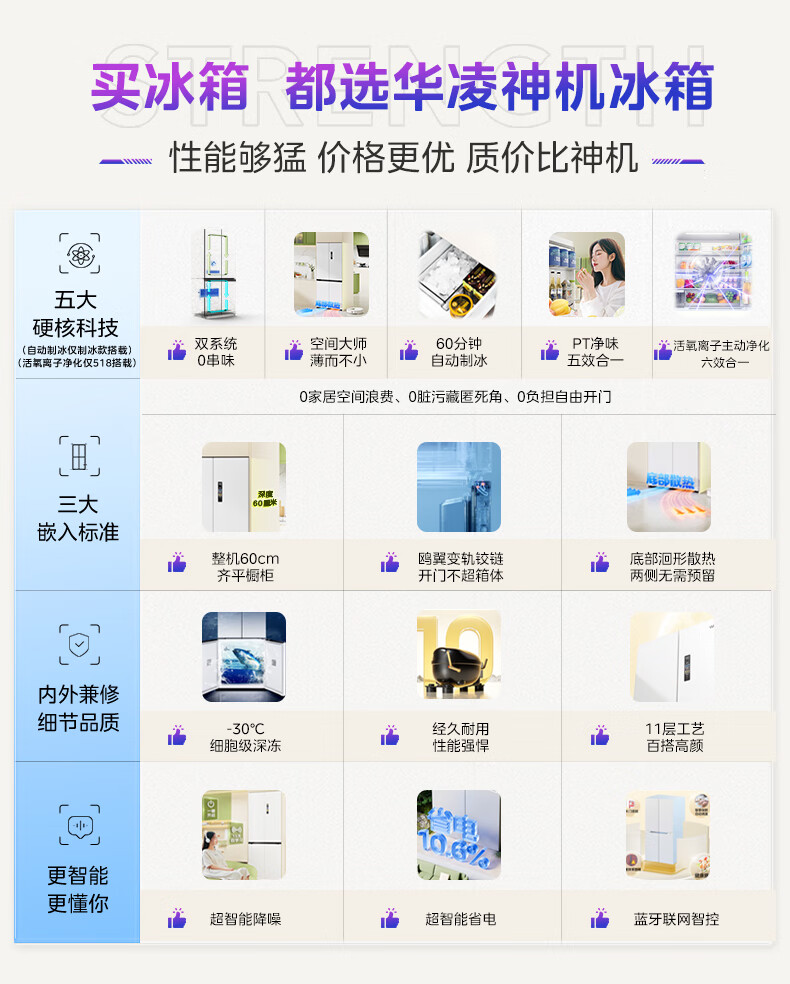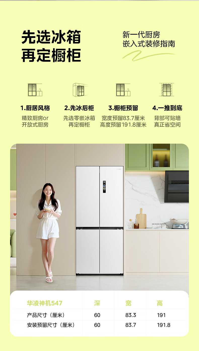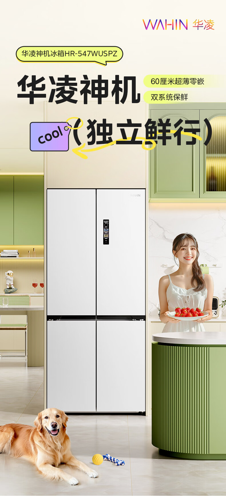 华凌神机547美的出品双系统双循环超薄零嵌入十字对开门四门冰箱家电国家补贴20%一级能效HR-547WUSPZ