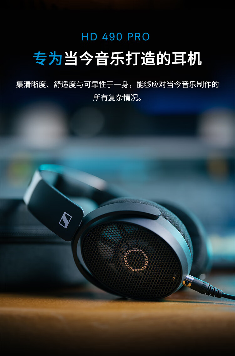 森海塞尔HD490ProPLUS/HD400pro监听耳机专业录音棚开放式有线生日礼开学礼物礼品头戴耳机 HD490 PRO【黑色】