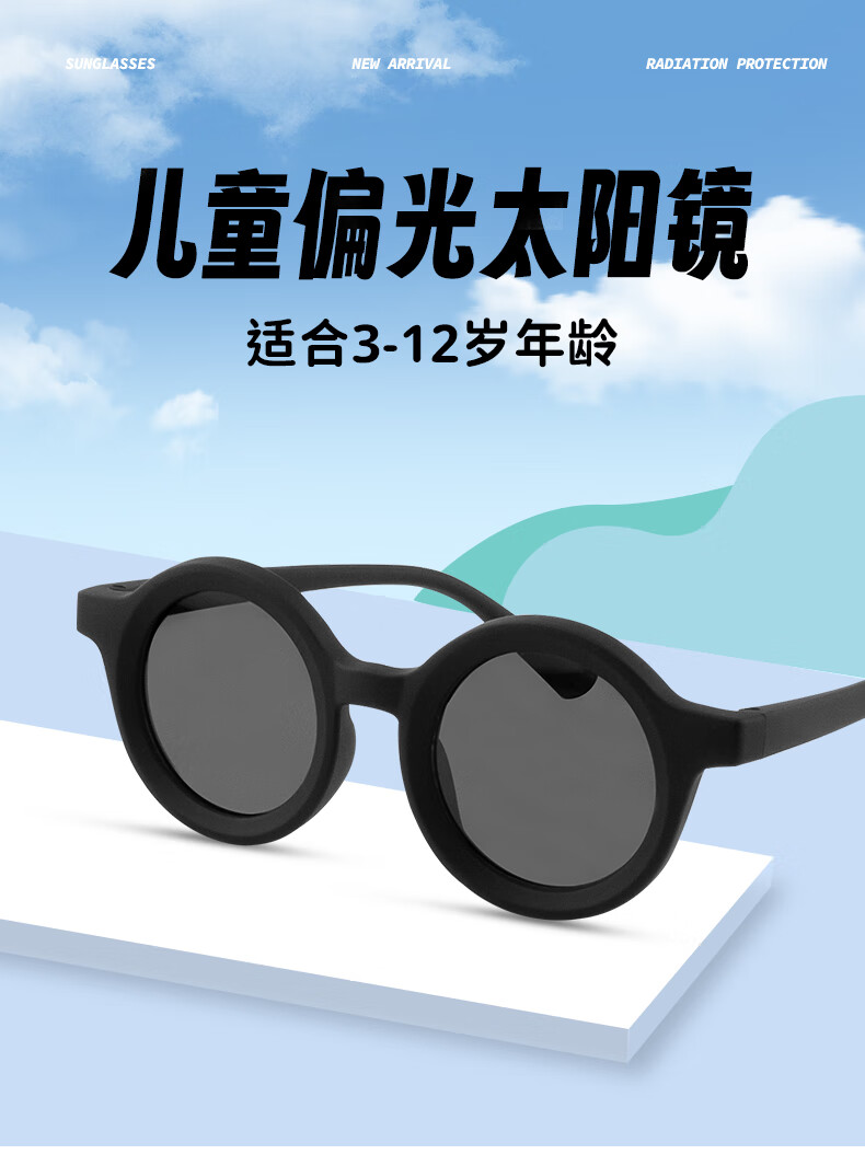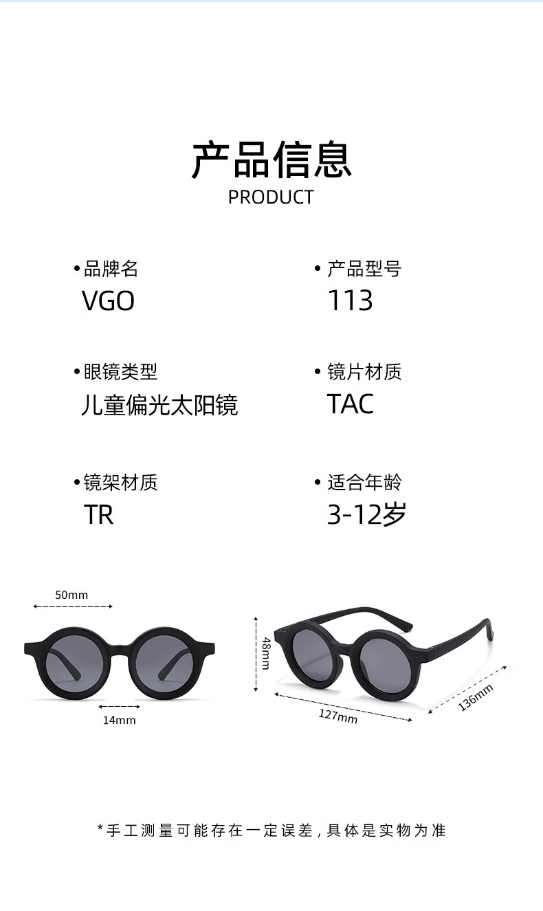VGO儿童墨镜太阳镜男女童偏光眼镜时尚潮流113 黑色