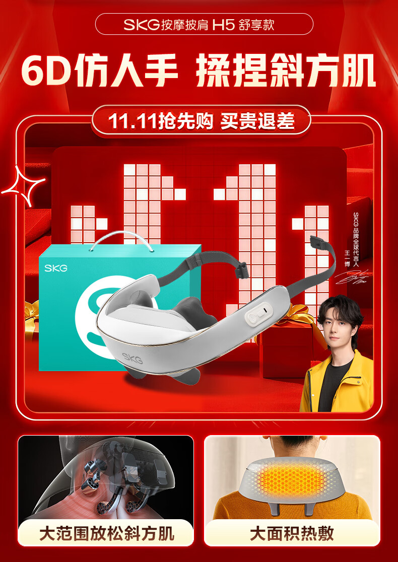 SKG颈椎按摩器颈部披肩H5肩颈斜方肌腰背部小腿脖子热敷按摩仪 中秋国庆节礼物送父母长辈礼品 【一机多用】按摩披肩H5舒享款