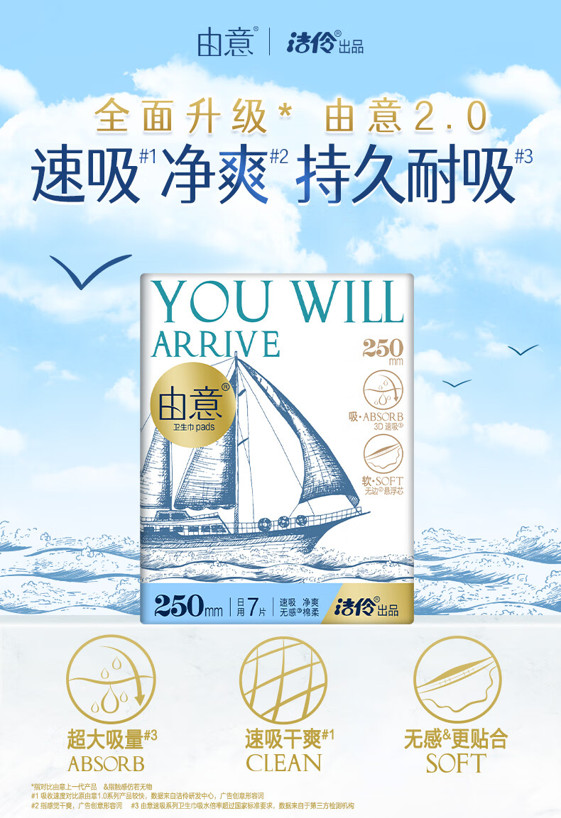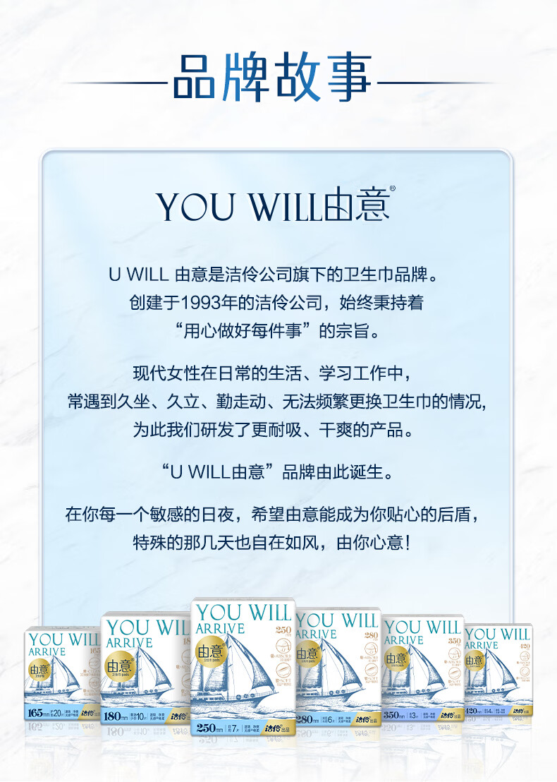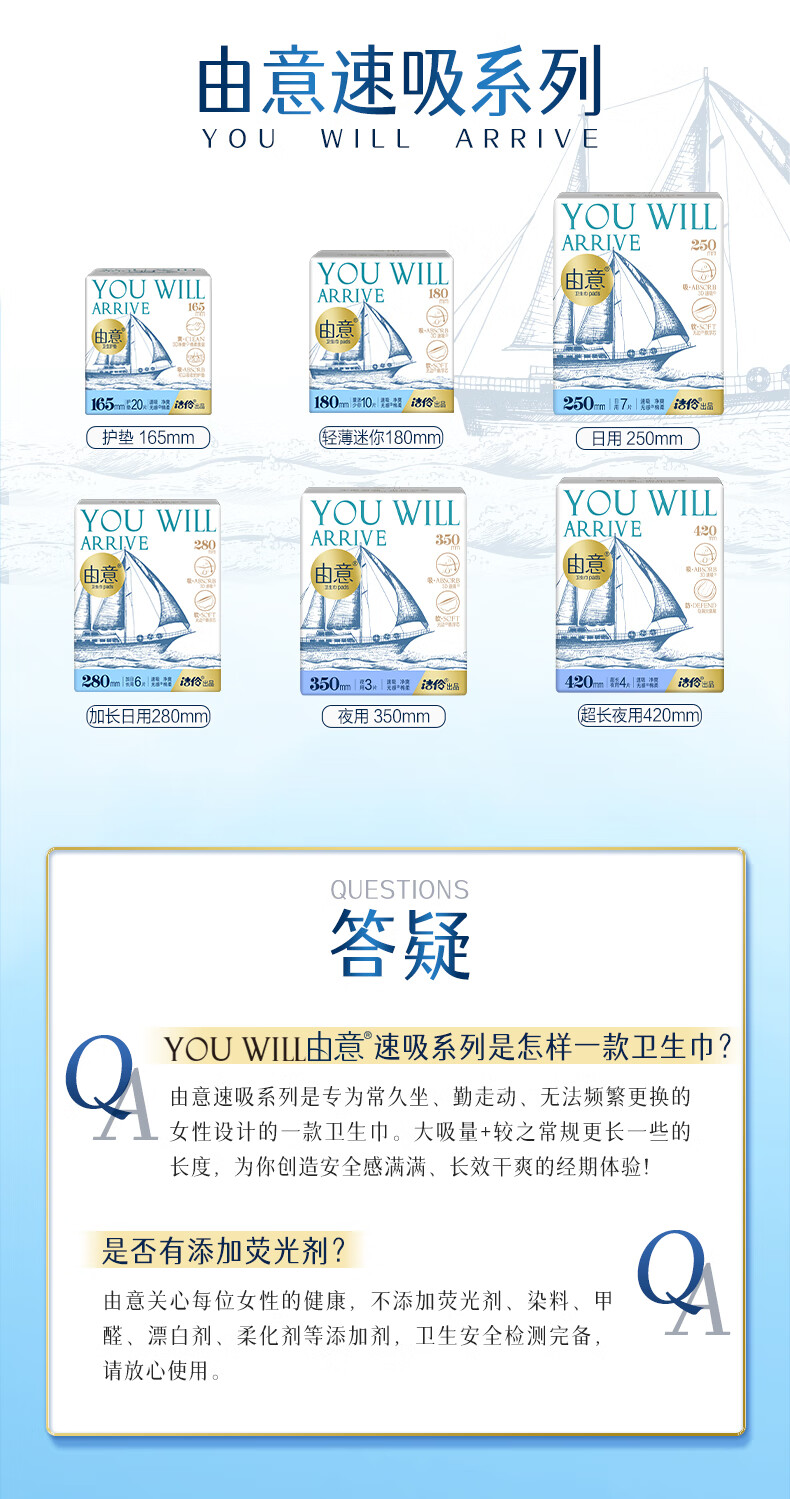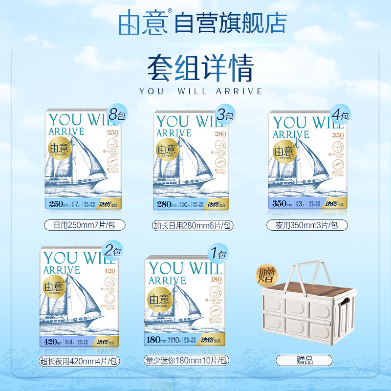 由意卫生巾薄款日夜整箱18包104片赠露营箱 京东自营