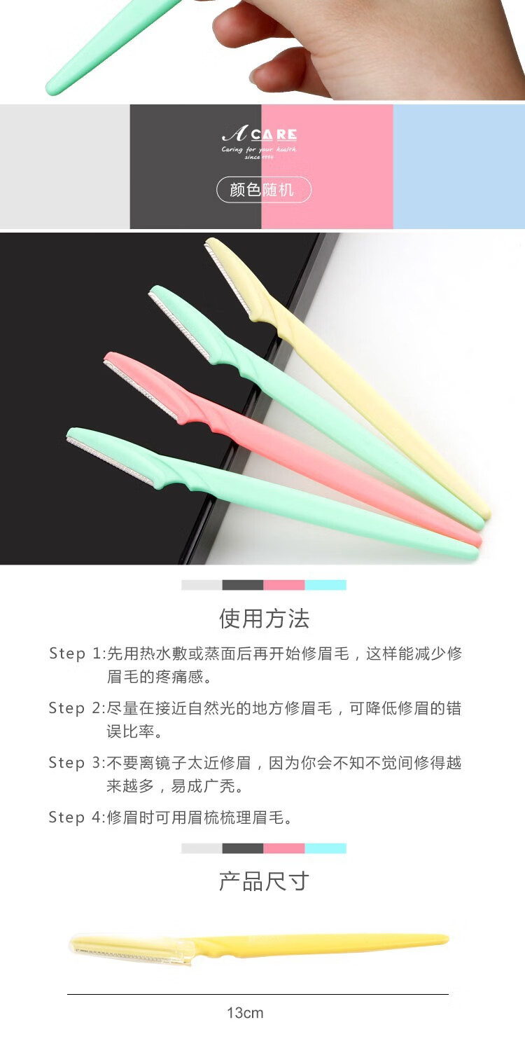阿嚓热(ACARE)修眉刀C1vaq001-易上手眉毛刀剃眉刀初学者男女士美容院用新手工 局部修眉刀3支(颜色随机)