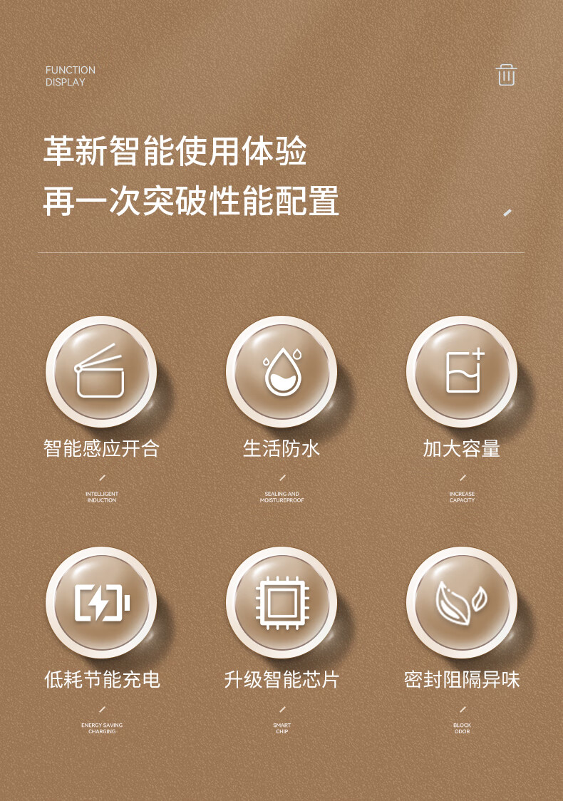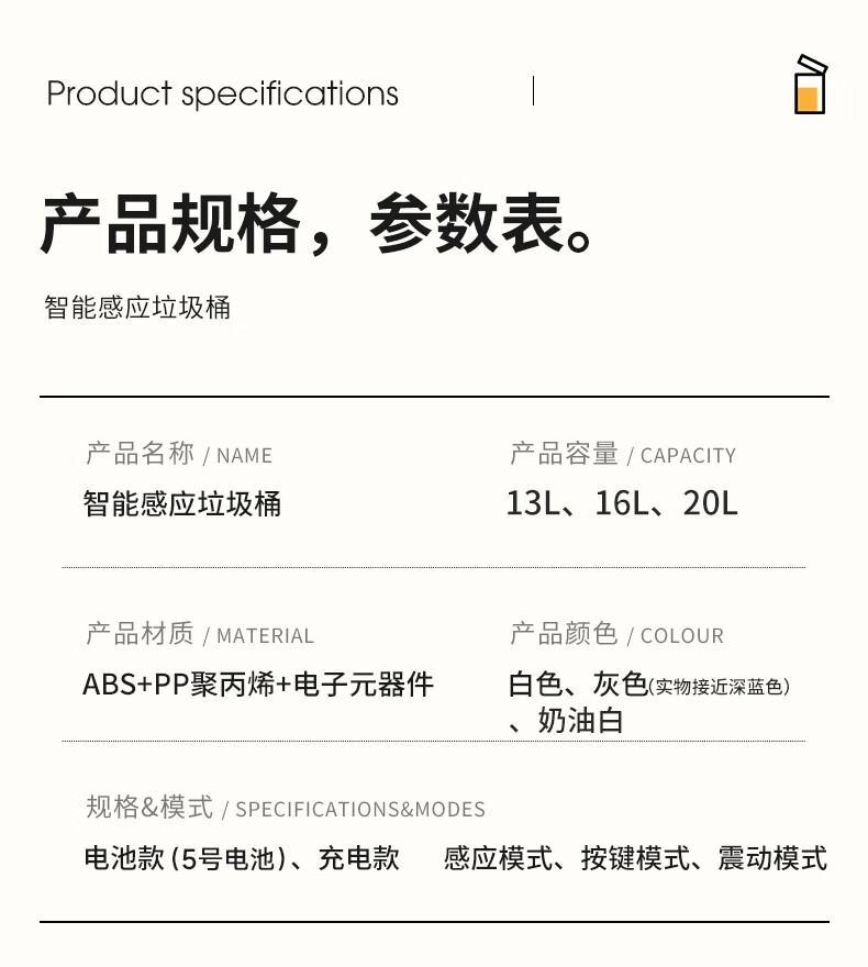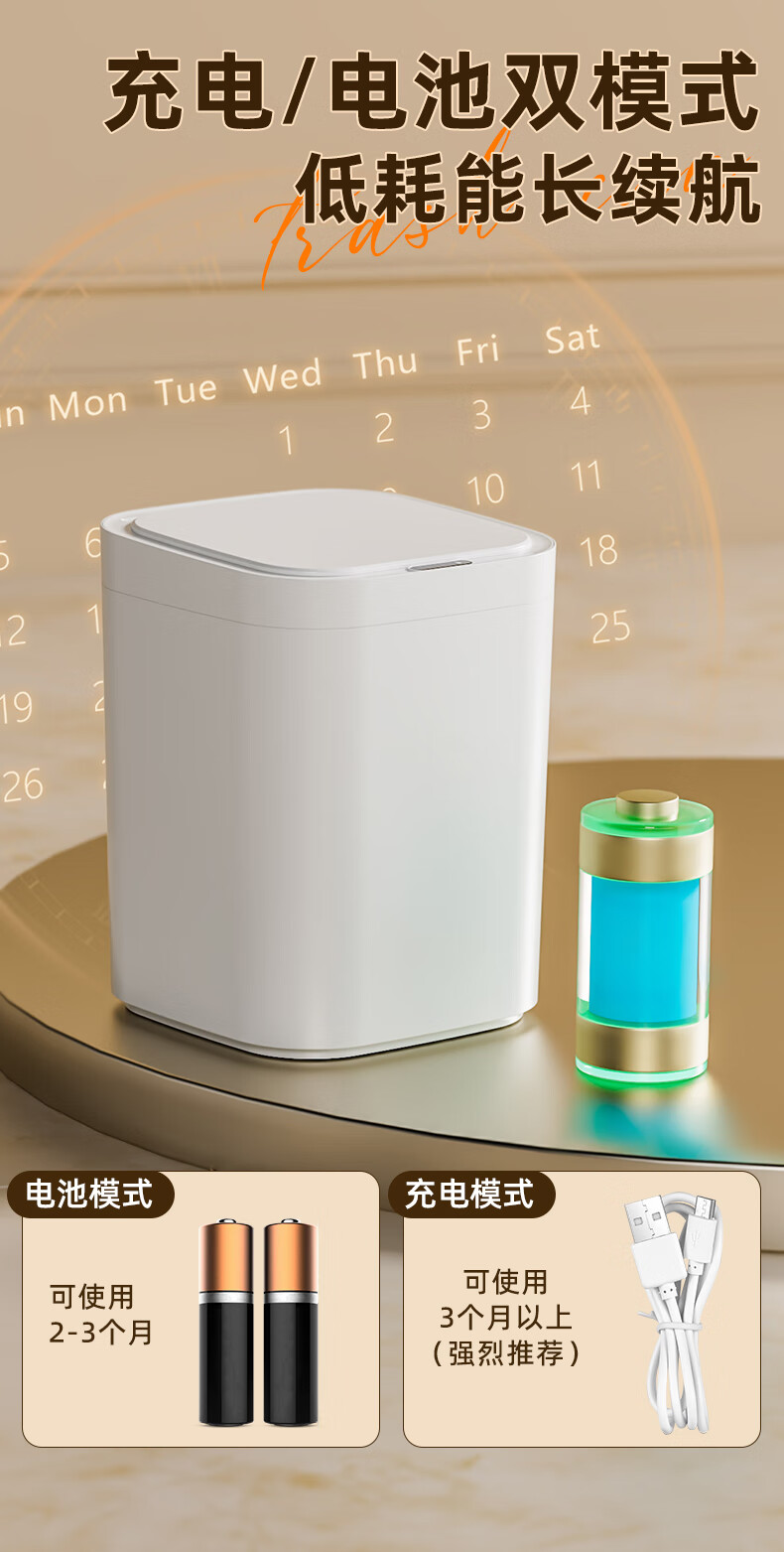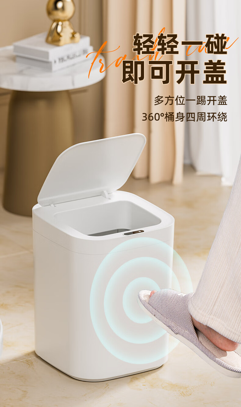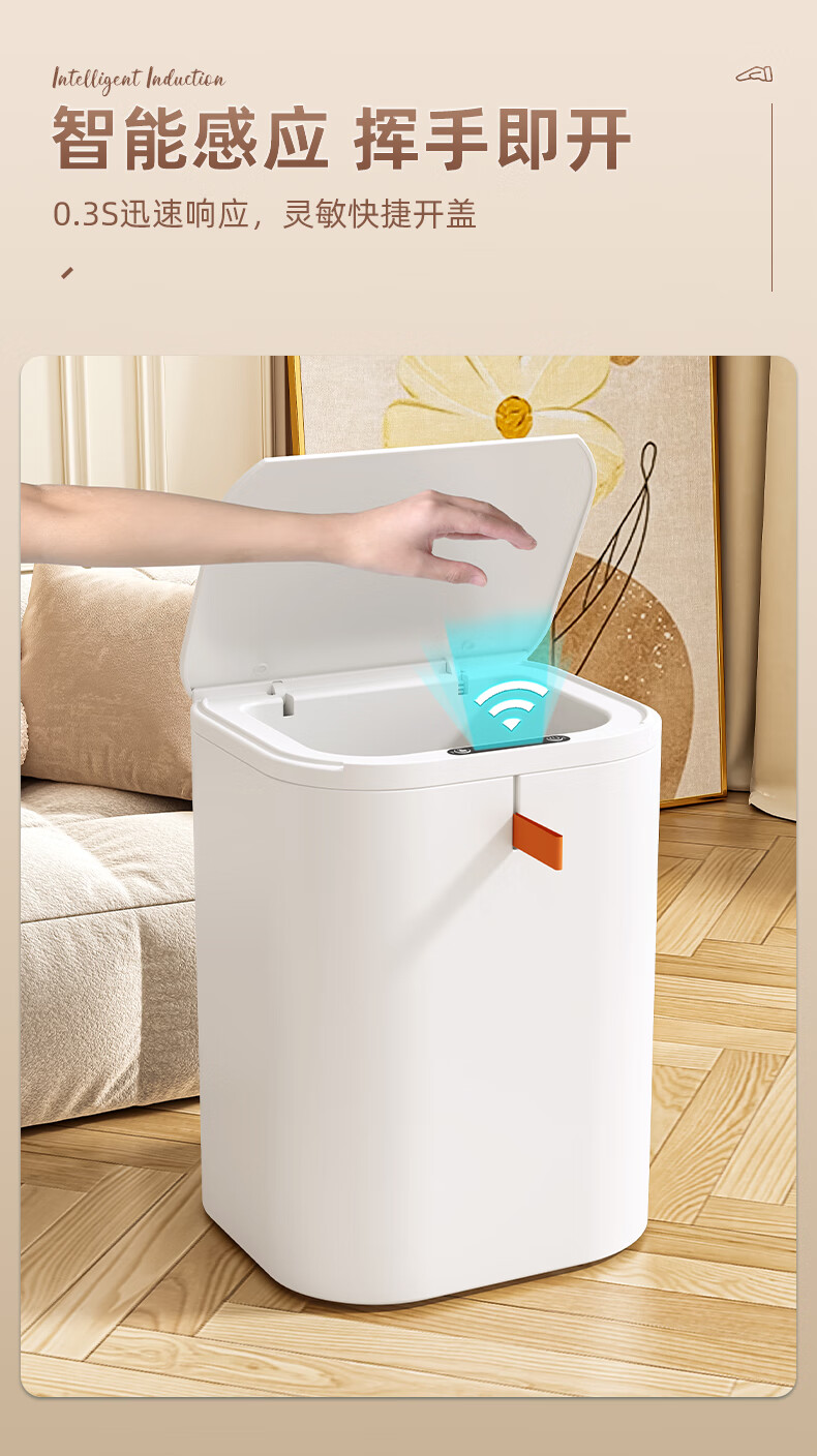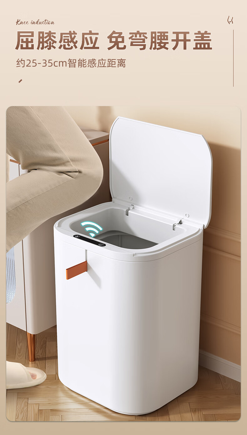 AILUKI日本高端智能垃圾桶新款带盖子感应式家用客厅轻奢厕所厨房化妆室 充电款-13L白色