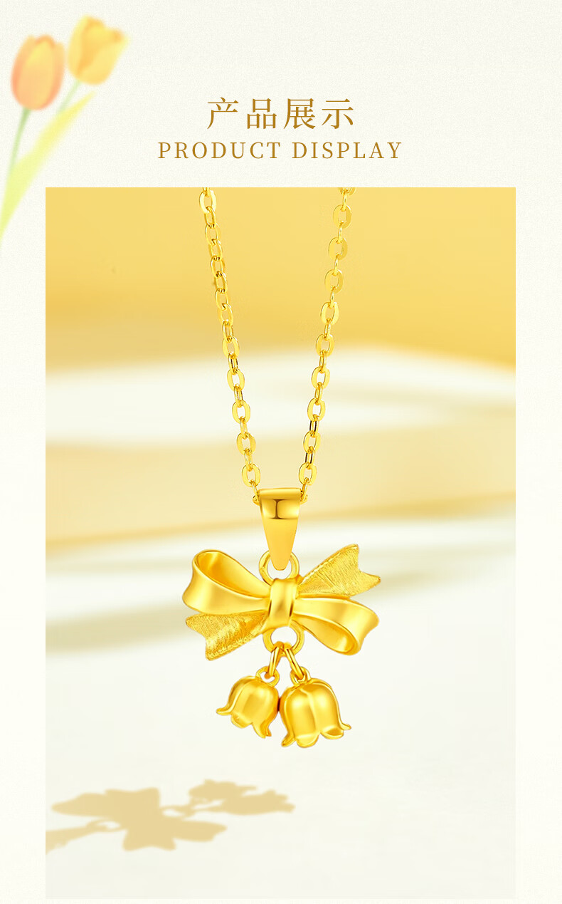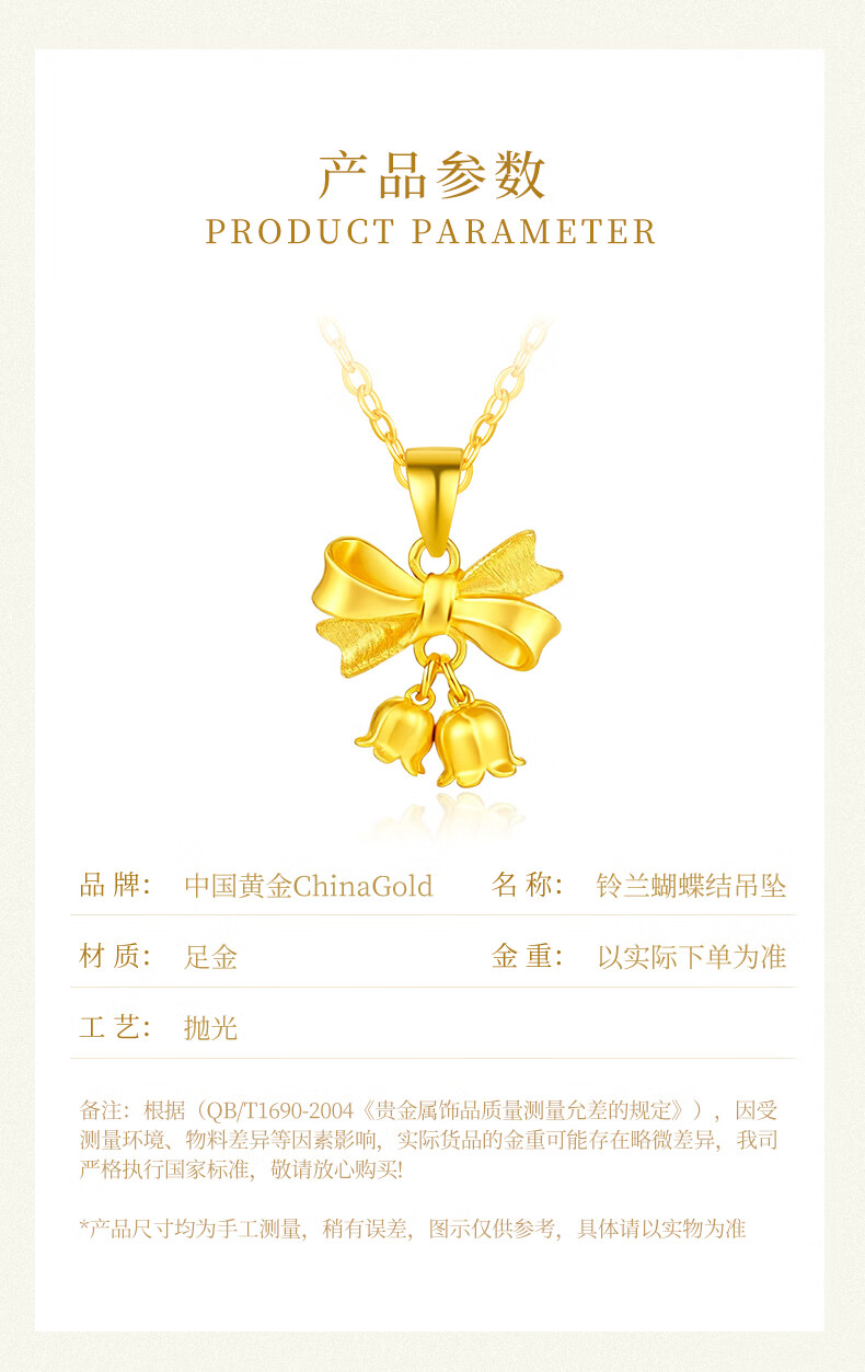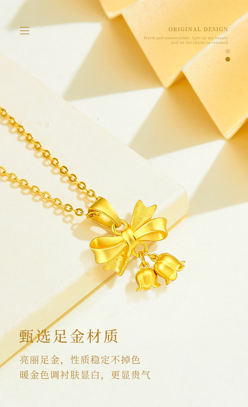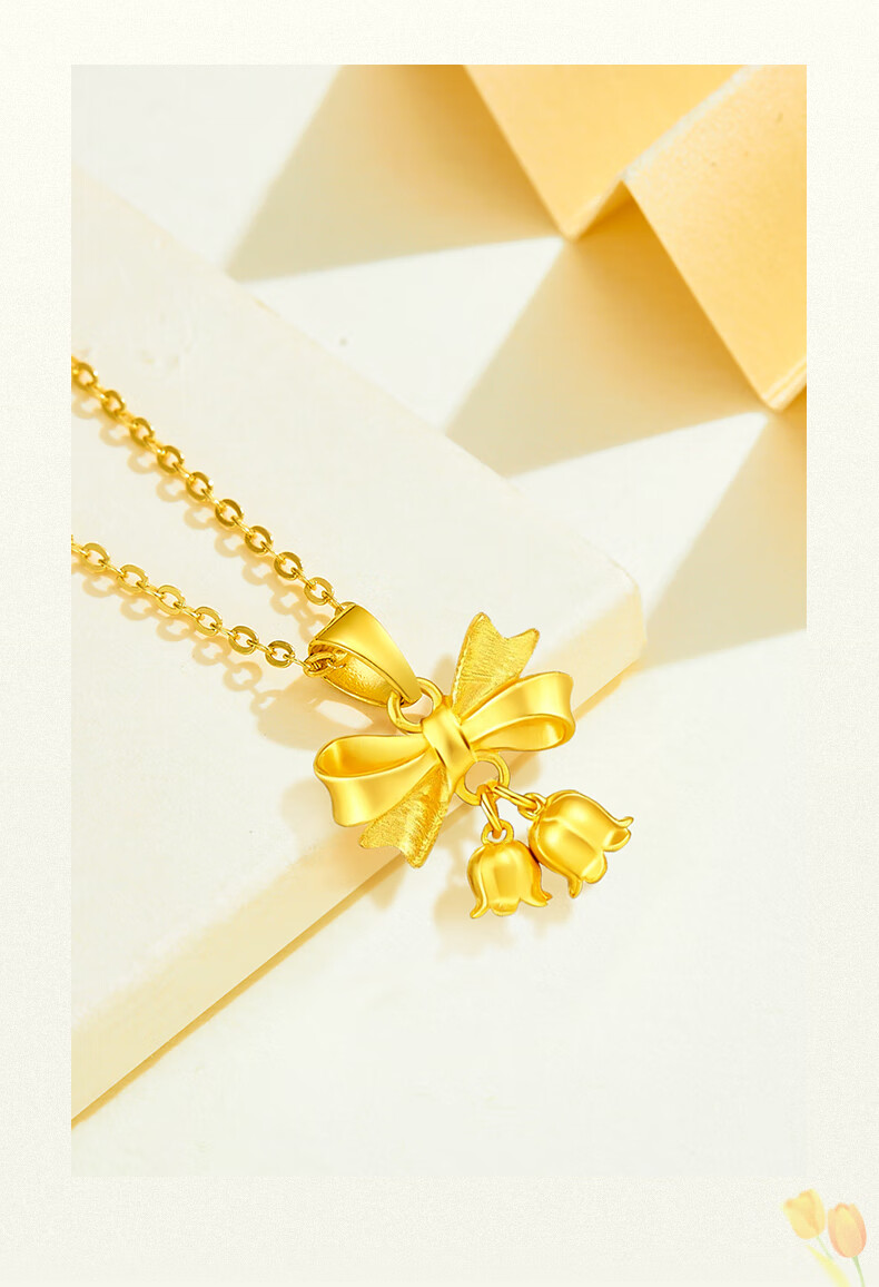 中国黄金(CHINA GOLD)足金铃兰花蝴蝶结吊坠女2025新款在逃公主生日礼物马年本命年礼物 足金铃兰花蝴蝶结吊坠 约2.1g【赠银链】