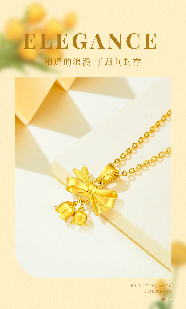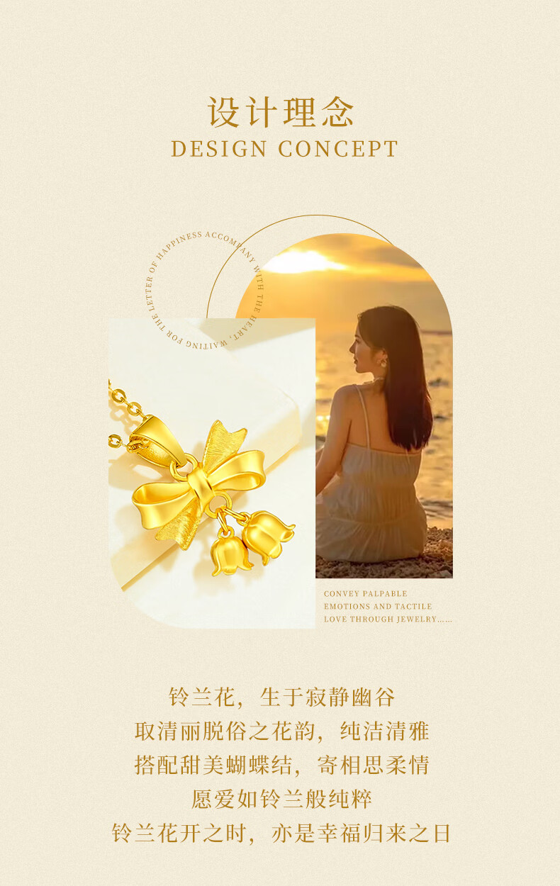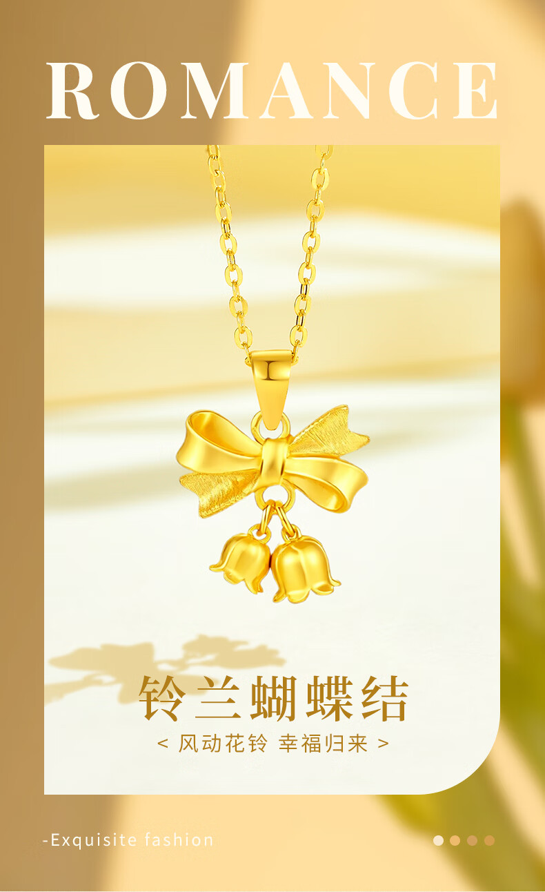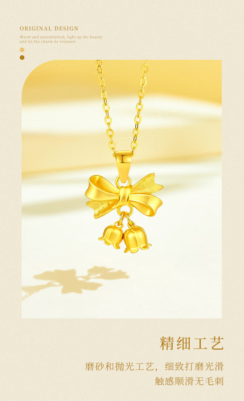 中国黄金(CHINA GOLD)足金铃兰花蝴蝶结吊坠女2025新款在逃公主生日礼物马年本命年礼物 足金铃兰花蝴蝶结吊坠 约2.1g【赠银链】