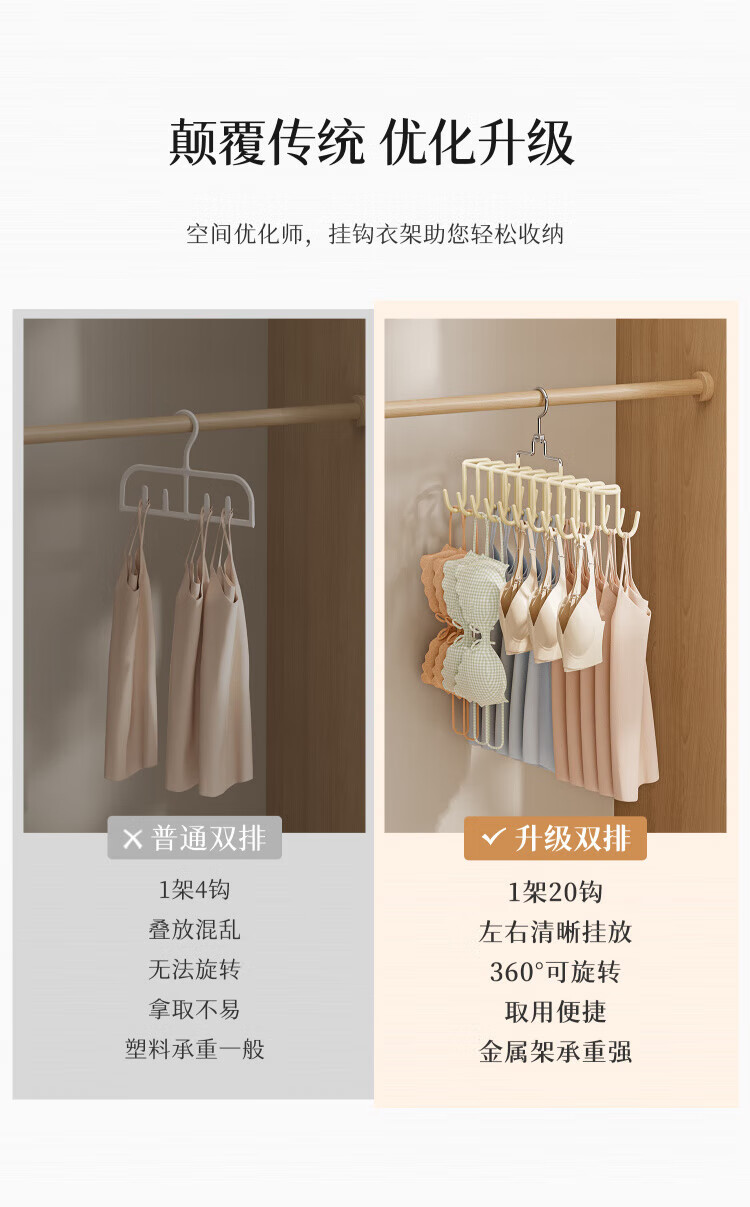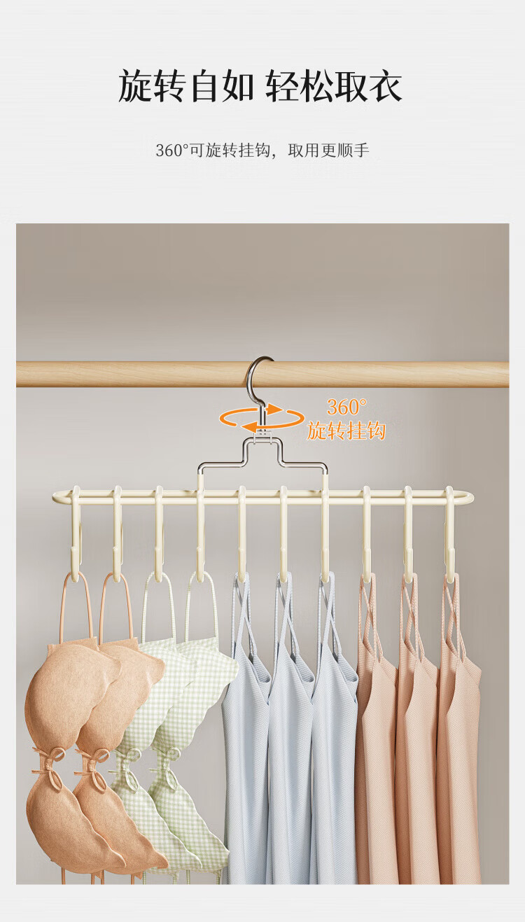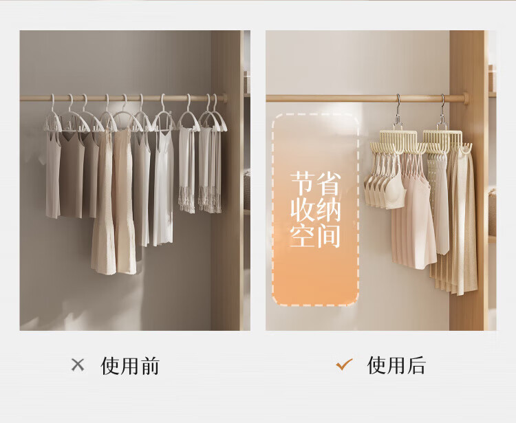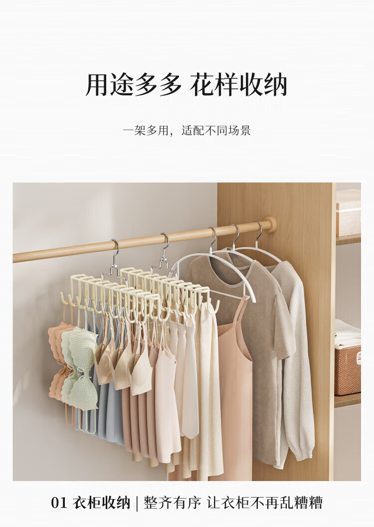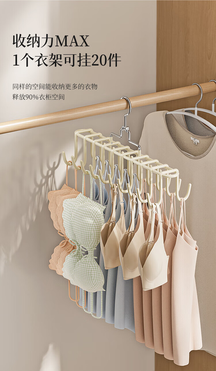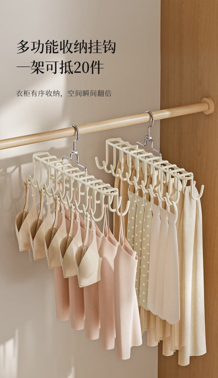 WCZ德国吊带内衣挂钩波浪衣架多功能挂架背心收纳神器家用宿舍防滑晾 奶油杏-20钩