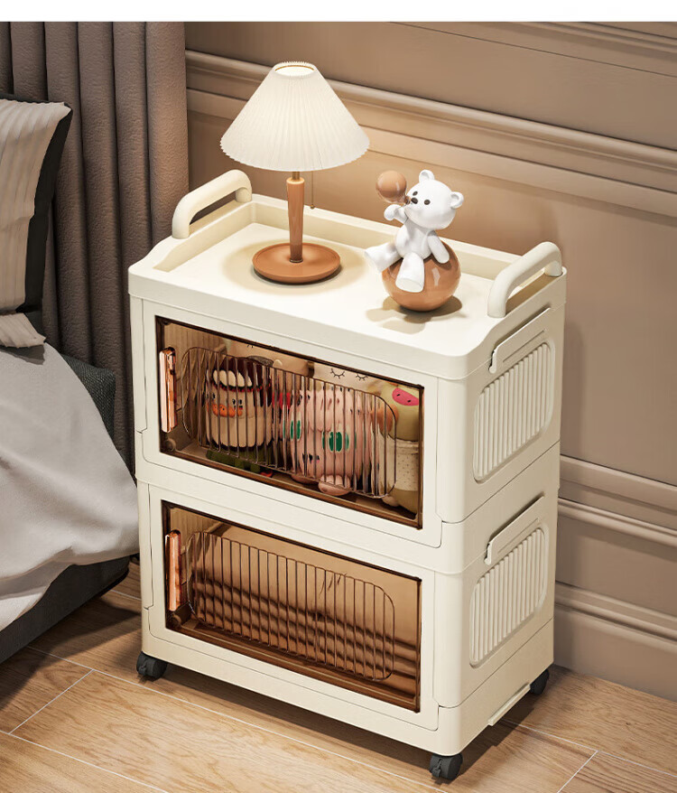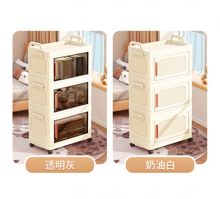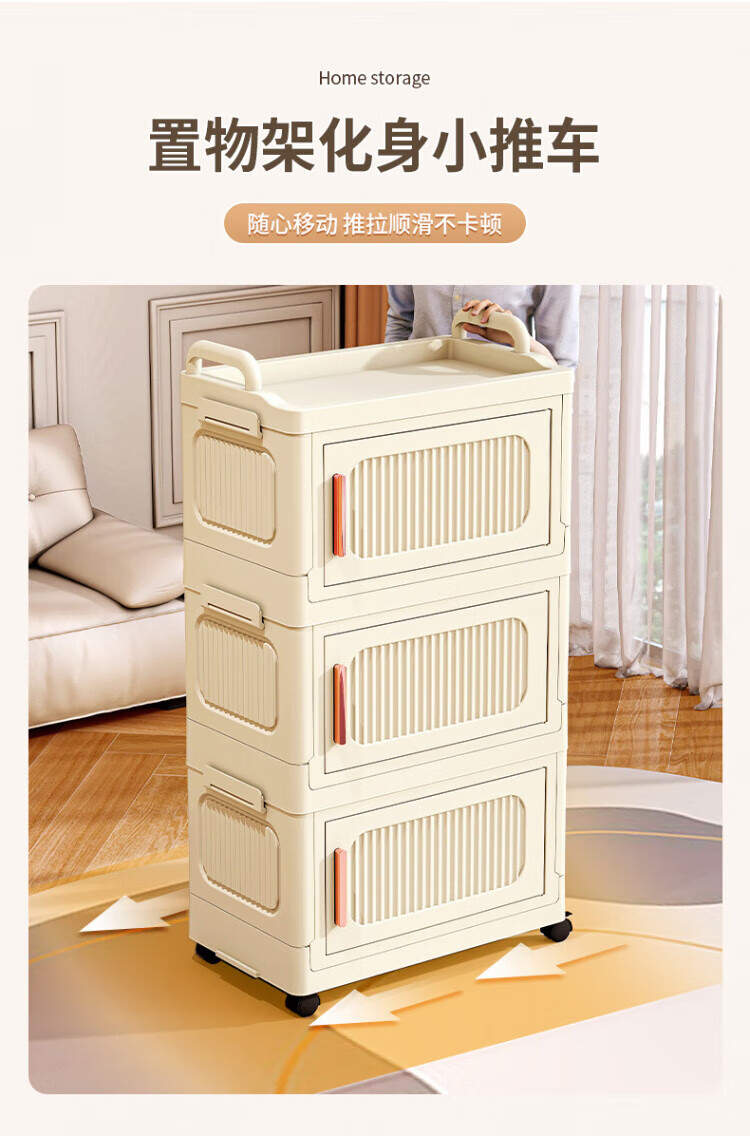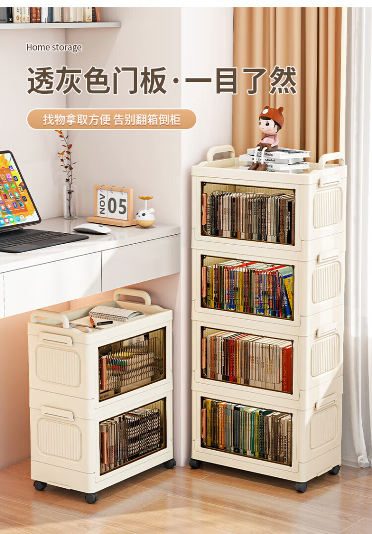 WCZ德国书包置物架可移动小推车书本收纳神器家用多层桌下放包储物架 37宽奶油色-升级万向轮/可折叠拆卸 2层