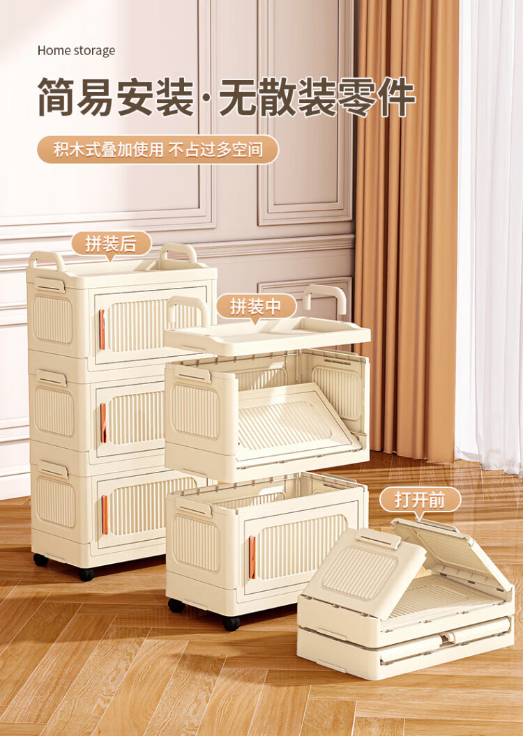 WCZ德国折叠衣服收纳箱家用衣柜收纳整理箱大容量超大塑料玩具衣物储 中号-实色面板 36*27*21.5cm 收纳箱 1个