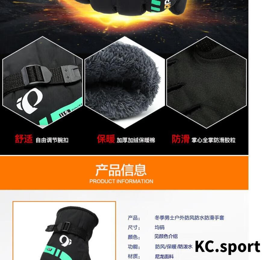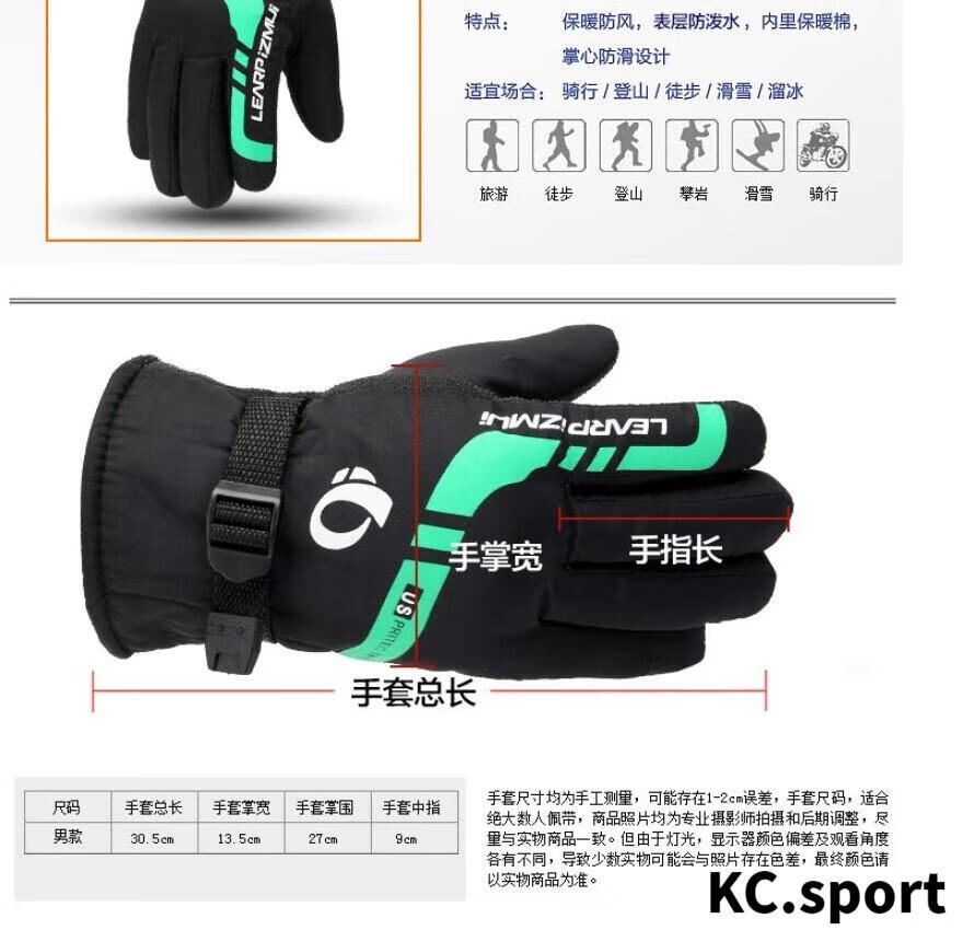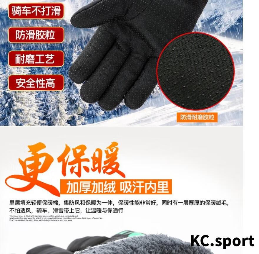 山头林村冬季男加绒加厚保暖手套冬天滑雪电动车摩托车骑行防风防寒棉手套 蓝色款