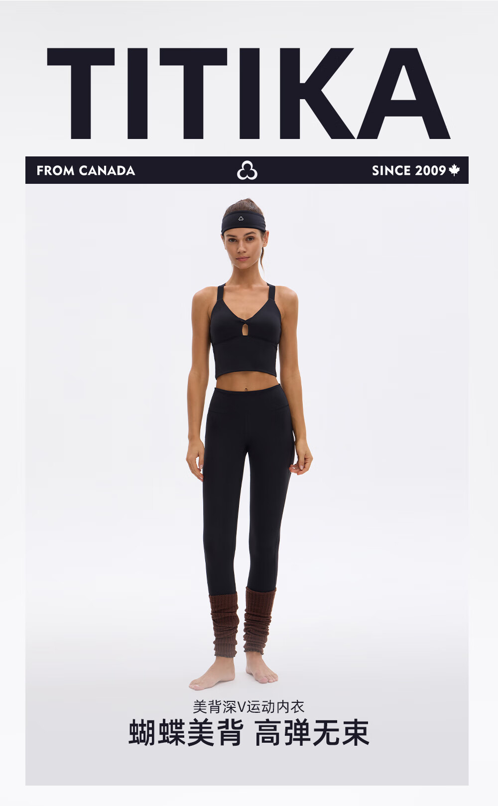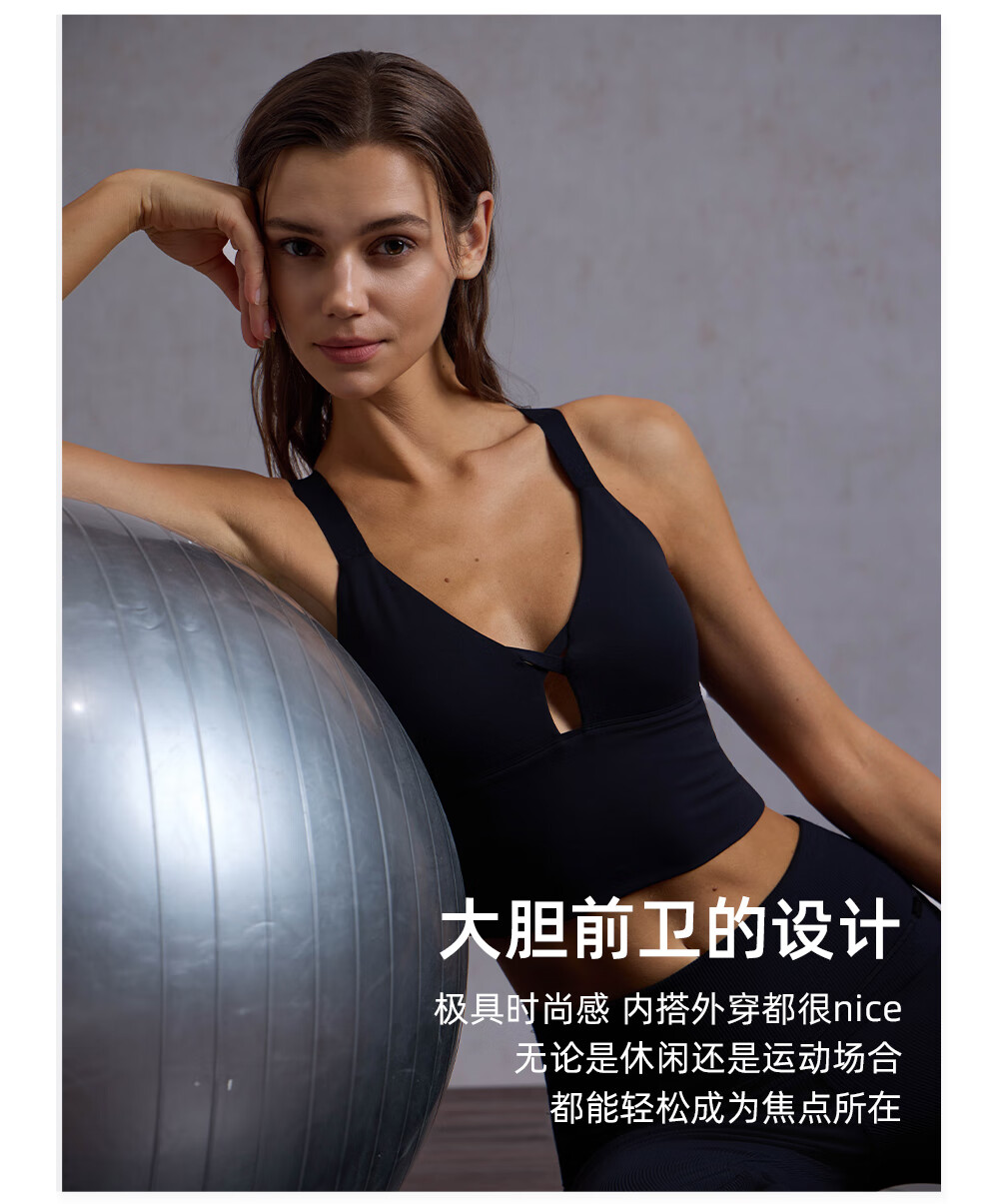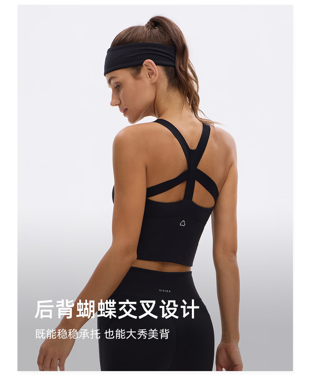 TITIKA ACTIVE美背深V运动内衣瑜伽跑步中高强度带胸垫背心可外穿54B11213 黑色 XL